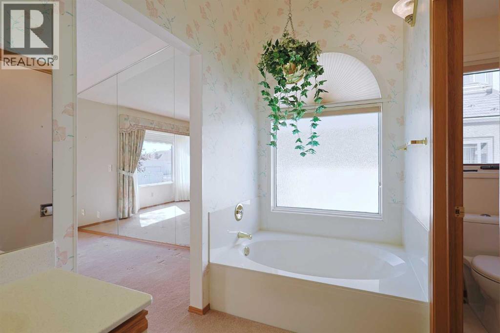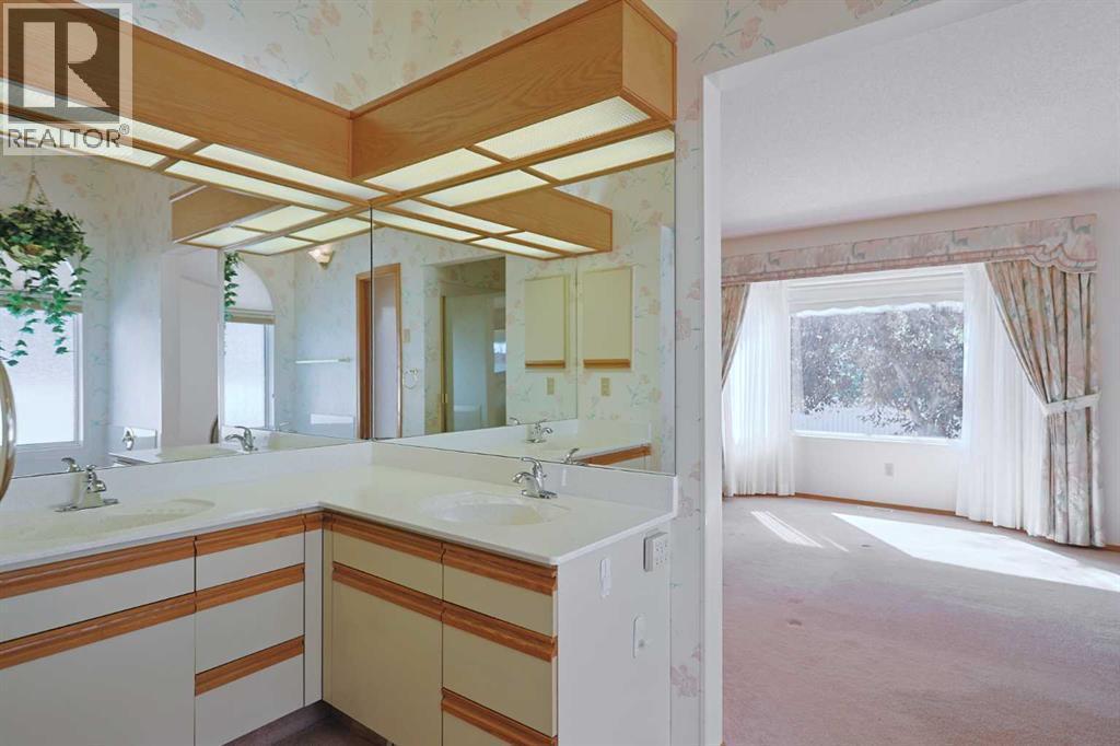 Steps to a park & walking distance to the Edgemont Superstore shopping complex is this wonderful former showhome in the highly-desirable golf course community of the Hamptons. Offering a total of 4 bedrooms & 3 full baths, this fully finished bungalow enjoys soaring vaulted ceilings & central air, heated oversized 2 car garage, beautiful hardwood floors, South backyard & a host of improvements including new roof, stucco exterior & the polyB pipes replaced with PEX. Available for quick possession, this fantastic estate home has a sensational floorplan bathed in natural light, & features a sunny living room with floor-to-ceiling windows, open to the large dining room which will easily fit your family dinners. The bright eat-in kitchen & nook – complemented by a big bay window & cork floors, has loads of cabinet space, built-in desk, walk-in pantry & the appliances include a cooktop stove & new (2025) built-in convection oven. Main floor has 2 spacious bedrooms & 2 full bathrooms; the owners’ retreat has a huge walk-in closet, bay window & ensuite with soaker tub, separate shower & double vanities. Lower level is finished with 2 more bedrooms, another full bath & rec room with wet bar, gas fireplace & built-in bookcases. There’s also plenty of additional space for storage or future development. Main floor laundry complete with built-in cabinets & Whirlpool washer & dryer. Other extras include Hunter Douglas blinds, low-flow/dual-flush toilets, natural gas line for your BBQ on the deck, central vacuum system & storage shed in the South backyard with maintenance-free vinyl fencing, deck (with new vinyl decking in 2023) & patio. Roof/eaves/downspouts are brand new in 2025 & new stucco exterior in 2024. Located on this terrific corner lot only a few short minutes walk to bus stops & the Hamptons Park tennis courts, quick commute to the Hamptons School & neighbourhood shopping, & easy access to area recreational amenities, University of Calgary & hospitals, downtown & so mu ch more! (id:6769)