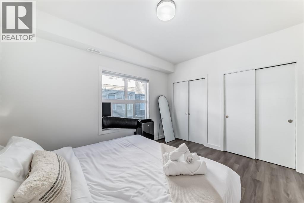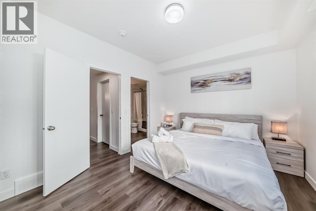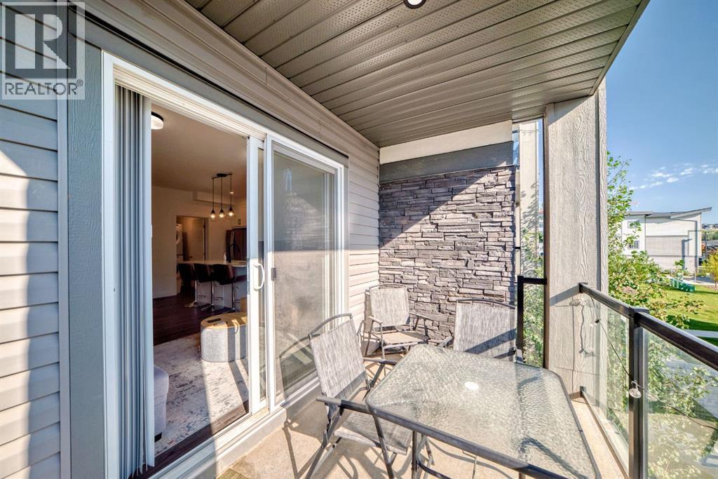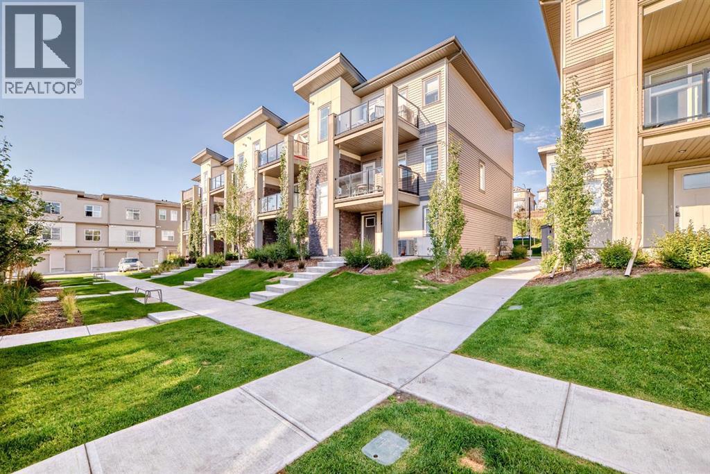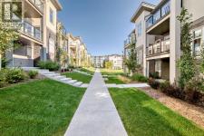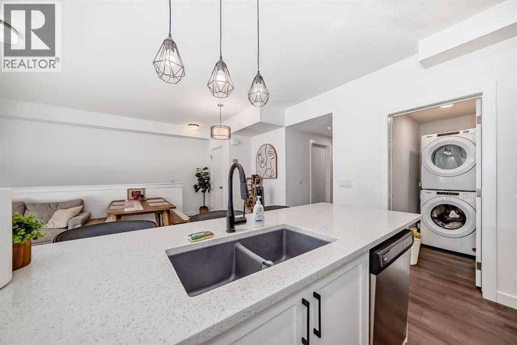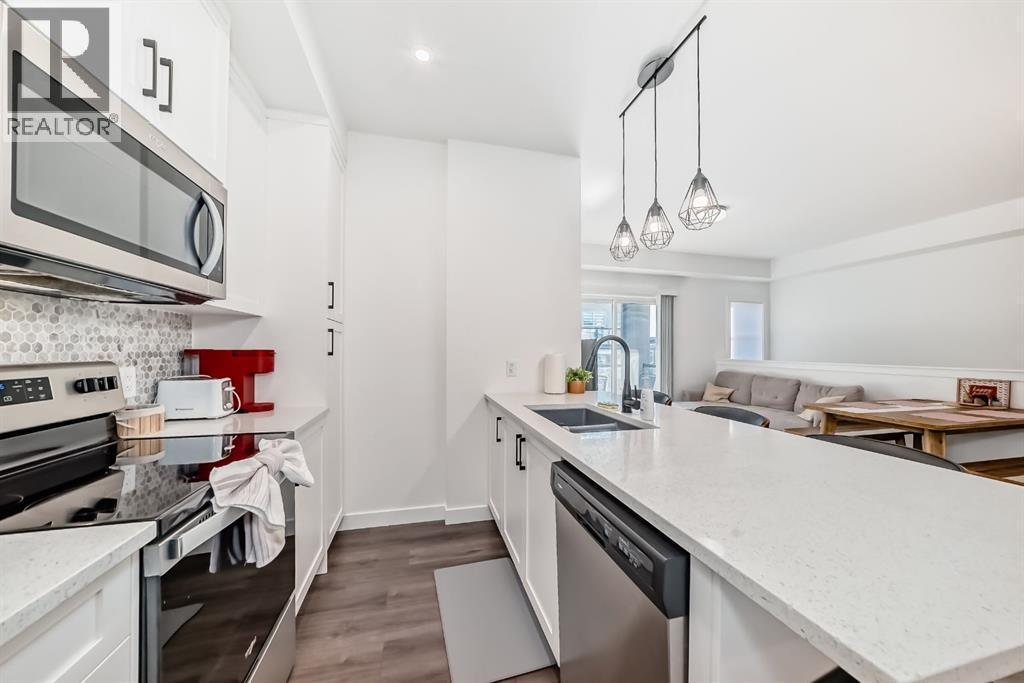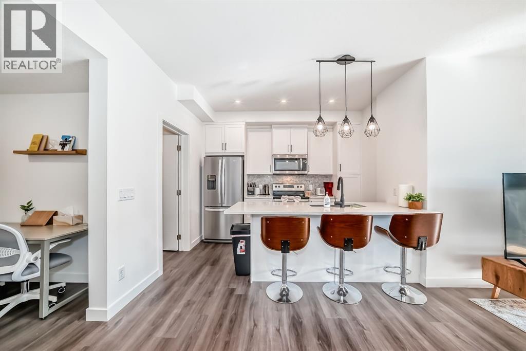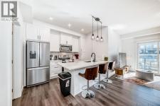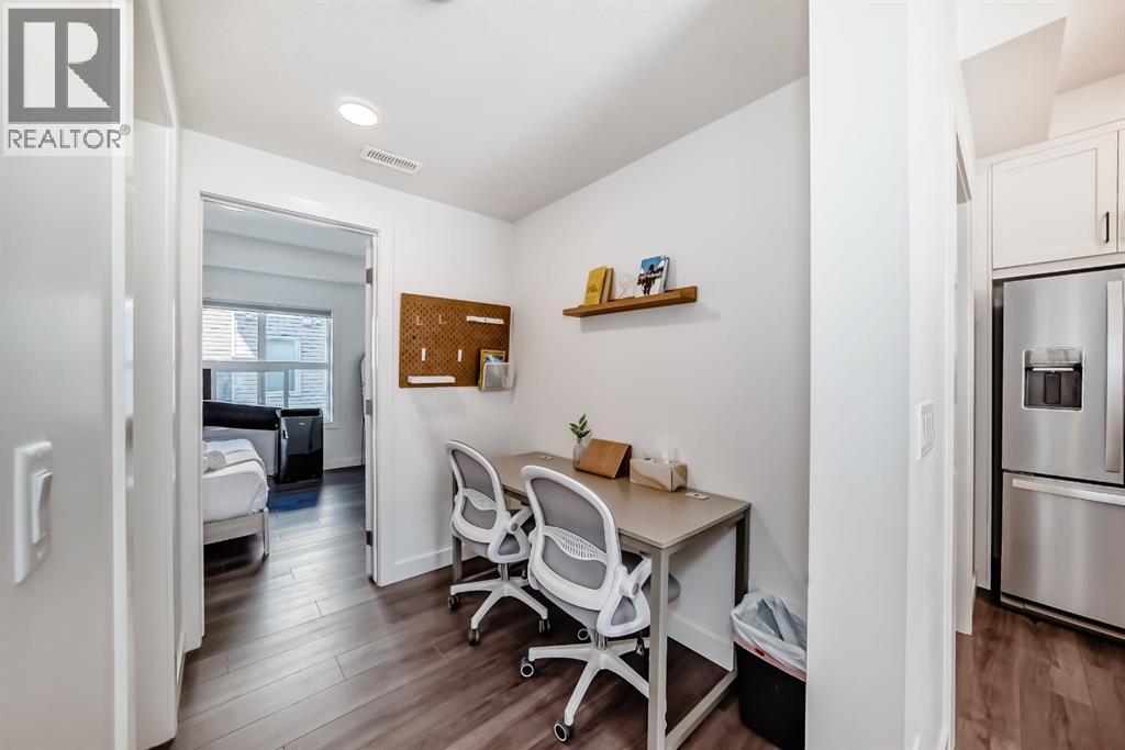 Welcome to functional urban living! This unique STACKED TOWNHOUSE WITH ONE BEDROOM + DEN AND SINGLE CAR GARAGE in the much sought after community of Springbank is exactly what you have been looking for. Walking in from the from entrance you are greeted with a spacious front patio. Entering the unit you are ushered into the Den and Mud room area. The single attached garage is accessed from this level. There's a coat closet and the mechanical/utility room on this level. Walk up a few steps and you are in a spacious living room area that flows into the dining and kitchen with pantry at the top of the stairs as you come up. Upgraded finishings include quartz countertops and kitchen backsplash, upgraded shaker cabinets and handles, sink, lighting fixtures, door handles and Refrigerator. Laundry room is tucked away by the kitchen. Going into the Primary bedroom there's a computer area/workspace to the right and a spacious 4pc ensuite bath to the left. The primary bedroom boasts of space and ample-size closet all along the room wall. From the living room you walk out to a big balcony with privacy walls and a beautiful view of the area. Vinyl plank is the flooring all through the unit except for the stairs. This unit is located in a complex across the street from ASPEN LANDING. Easy access to 85th St SW and 17 Ave SW, transit systems and established amenities in the area. You can't afford to miss this one! Call for your private viewing. (id:6769)
