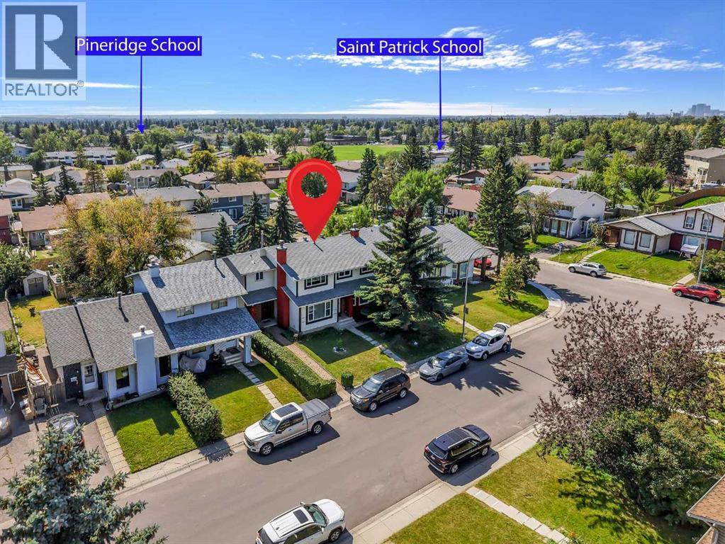 VERY WELL KEPT | QUIET CUL-DE-SAC | FULLY FINISHED | OVERSIZED LOT | OVERSIZED DOUBLE GARAGE WITH 10’ CEILINGS | PAVED BACK LANE | SOUTH BACKYARD Nestled on a quiet cul-de-sac in the heart of Pineridge, this semi-detached home combines thoughtful updates with family comfort and investor appeal. A welcoming front pathway leads inside to a spacious living room featuring an oversized window that fills the space with natural light and a cozy brick surround wood burning fireplace, perfect for gathering together on cool winter evenings. Updated flooring and a neutral colour palette create a move-in ready backdrop throughout the main level. The bright eat-in kitchen offers white cabinetry, a stainless steel fridge with water and ice dispenser and a large window overlooking the sunny backyard. An adjacent dining room sets the stage for family meals and entertaining with sliding patio doors extending the space onto an enclosed deck for barbeques and relaxed weekends. A tucked away powder room is conveniently located as you head downstairs. Upstairs, 3 spacious bedrooms provide restful retreats filled with natural light, complemented by a 4-piece bathroom. The fully finished basement expands your living space with a large rec room ideal for movies, game nights or a home gym, plus a built-in desk area for work, study or creative projects. Ample storage keeps everything organized. Outdoors, a south-facing backyard offers room to play, garden and gather around a firepit on summer nights. Garden beds and grassy space make it both functional and inviting for families. A pathway leads to the oversized detached garage with 10’ ceilings and access to the paved back lane. Location is unmatched with Pineridge School, Saint Patrick School and Clarence Sansom School all within walking distance, along with transit, Village Square Leisure Centre, shops, and restaurants. Sundridge Mall and the C-Train station are just a quick drive, ensuring excellent convenience and accessibility. This wel l-cared-for home is an outstanding opportunity for families seeking space and community or investors looking for a property with strong long-term appeal. (id:6769)