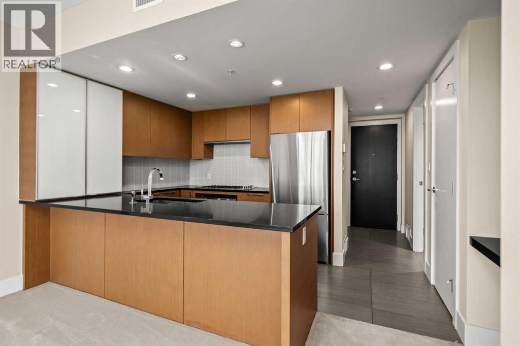 Welcome to BELTLINE living at its best. This 1 BEDROOM PLUS DEN home combines a modern layout with thoughtful upgrades, CITY VIEWS, and access to full building amenities—ideal for first-time buyers, professionals, or investors. A PRIVATE FOYER sets a welcoming tone and enhances privacy. The ENCLOSED DEN offers valuable flexibility as a home office, study, or storage space, while the TECH DESK provides a dedicated spot for working from home or catching up on emails. The open concept design connects a modern KITCHEN with the central dining and living areas. Featuring a PENINSULA WITH EATING BAR, STONE COUNTERTOPS, NEW FRIDGE, STAINLESS STEEL APPLIANCES, GAS COOKTOP AND OVEN, and a GARBURATOR, the kitchen is equally functional and stylish. LARGE PATIO SLIDERS extend the living room onto A GENEROUS BALCONY with SWEEPING DOWNTOWN VIEWS—an inviting space to relax or entertain. The primary bedroom also enjoys direct access to the balcony, filling the room with natural light and cityscape views. A WALKTHROUGH CLOSET leads to a 4-PIECE BATHROOM, creating a convenient cheater ensuite design. Additional features include IN-SUITE LAUNDRY, CENTRAL AIR CONDITIONING, FRESH PAINT, and recently cleaned carpet. Parking is easy with a TITLED STALL ideally located on P1. Residents of this sought-after building enjoy access to EXTENSIVE AMENITIES: two guest suites, an OWNERS’ LOUNGE, FITNESS CENTRE, YOGA STUDIO, STEAM ROOM, ZEN COURTYARD, BIKE STORAGE, guest parking, and a FULL-TIME CONCIERGE (no more lost packages!). Located just steps to the Sunalta LRT Station, the 11th Avenue Co-op, restaurants, coffee shops, and downtown pathways, this home offers unmatched connectivity and urban lifestyle convenience. Whether you are looking for a comfortable place to call home or a reliable investment property, this Beltline condo delivers the perfect balance of function, style, and location. (id:6769)