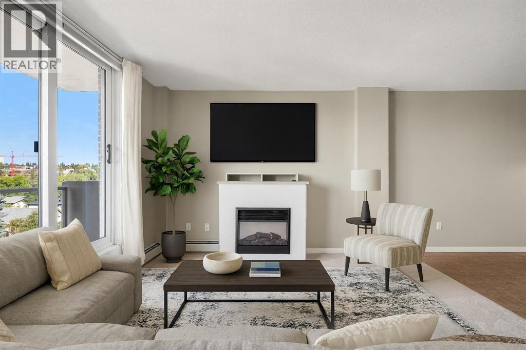 KENSINGTON IS ON SALE! Highly upgraded + move-in ready west facing condo perched on the 6th floor. You will gravitate towards the open concept floor plan, big windows, natural light + brand new plush carpet installed just last month. A contemporary kitchen awaits: granite counters, tile backsplash, stainless steel appliances, breakfast bar plus new fixtures/faucet/microwave + dishwasher. Start the evening in the dining nook and then migrate over to the expansive living area with a bottle of wine. Cozy up to the fireplace while watching your favourite show, feet up and appreciating the complete privacy offered. When weekends call, step out to the patio, fire up the BBQ and enjoy the sunset views! When it's time to retreat, you will love the size of the primary bedroom [and its windows] - showcasing a sliding dual door closet along with built-in cabinets to house your entire wardrobe. Steps outside you will find a stylish bathroom with wall mount fixtures, medicine cabinet + jetted soaker tub. Rounding out the full list of perks are Hunter Douglas blackout blinds, in-suite laundry, a designated parking stall + oversized storage locker. You will certainly appreciate the onsite fitness area and bike room. Close to coffee shops, boutiques, restaurants, lounges, grocery, C-Train, SAIT while being mere minutes into the downtown office core. An opportunity meant for discerning buyers - this unit needs absolutely nothing but you! (id:6769)