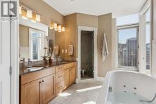 ***Seller is willing to pay 6-months of condo fees for a quick possession***Not your typical condo—this 28th-floor penthouse at Five West is a rare retreat for those who appreciate timeless quality, warm, earthy finishes, and a lifestyle that blends elegance with ease. Offering nearly 1,456 sq. ft. of thoughtfully designed living space, plus three private terraces totalling 665 sq. ft., this home is ideal for those seeking to downsize without sacrificing comfort, style, or space.Step inside and be greeted by rich hardwood floors that flow through the main living areas, 8-foot solid-core doors that echo quality, and plush wool carpeting in the bedrooms for a touch of softness underfoot. The southwest-facing living room fills with natural light, highlighting panoramic views from the Bow River to the city skyline and the Rockies beyond. A gas fireplace invites cozy evenings, quiet reflection, or intimate gatherings with friends and family.The chef’s kitchen is as functional as it is beautiful, featuring Canadian-made Kitchen Craft shaker cabinetry with soft-close hardware and roll-out drawers, granite countertops, a slate backsplash, wall oven, electric cooktop, and a 2022 KitchenAid dishwasher. Whether preparing a weekday meal or hosting a small dinner party, this kitchen blends practicality with enduring elegance.The southeast-facing primary suite is a haven in itself, offering a king-sized layout, a walk-in closet customized by California Closets, a second illuminated closet, and a private terrace to enjoy serene mornings. The spa-inspired ensuite elevates everyday living with dual sinks, a walk-in shower, a freestanding jetted tub, and a private water closet—perfect for unwinding after a busy day.Additional conveniences include two-zone heating and cooling, a dedicated laundry room with 2024 washer and dryer, and a secure 4’ x 10’ storage locker. Residents of Five West enjoy exceptional amenities, including concierge service, an elegant owners’ lounge with b illiards, an outdoor terrace, and an underground carwash bay.Outside, the location is unmatched—steps from Bow River pathways, Prince’s Island Park, and Calgary’s finest dining, shopping, and cultural attractions. This penthouse offers a rare opportunity to embrace a lock-and-leave lifestyle without compromising on elegance, space, or comfort. It is a home where timeless finishes, thoughtful design, and breathtaking views combine to create not just a place to live, but a place to love. For those seeking a home that marries ease of living with warmth, beauty, and sophistication, this penthouse at Five West is a true city retreat—a rare gem in the heart of Calgary with a strong reserve fund and an unparalleled lifestyle waiting to be enjoyed. (id:6769)