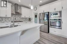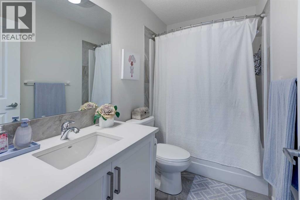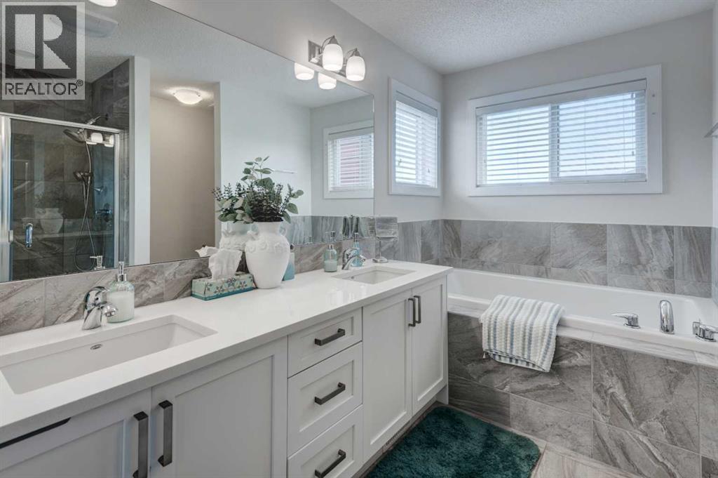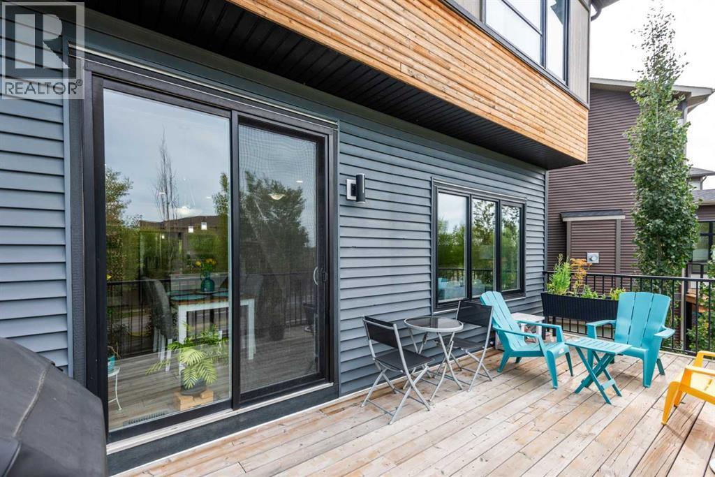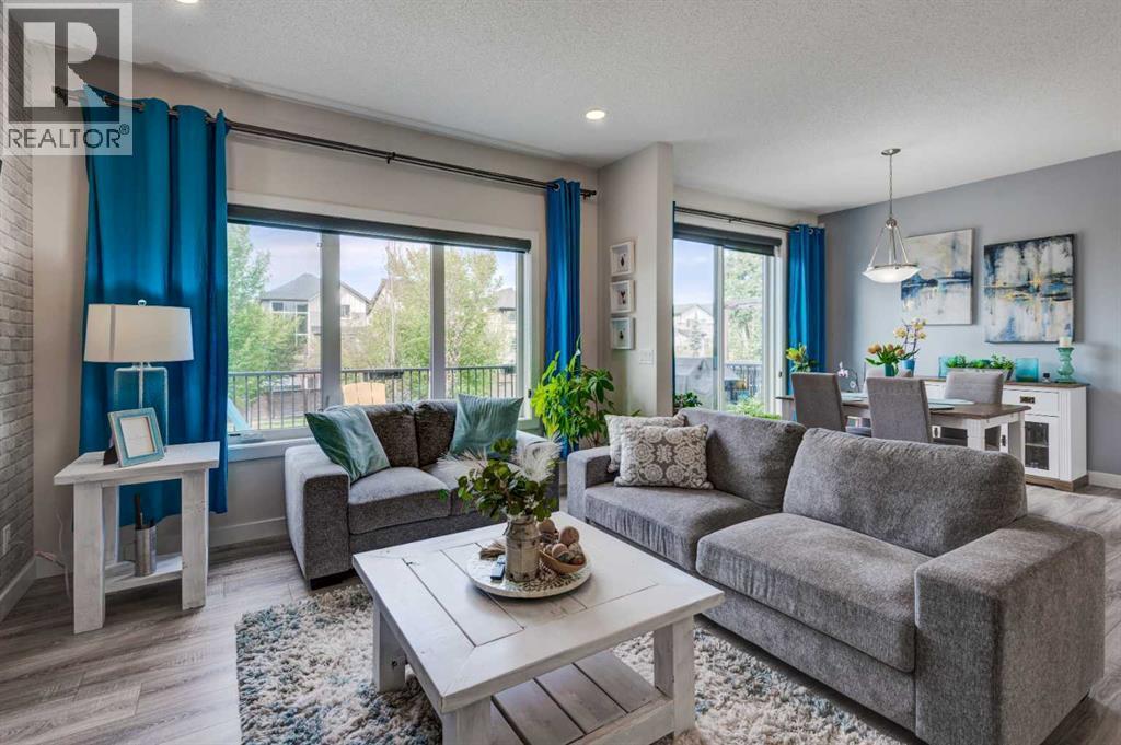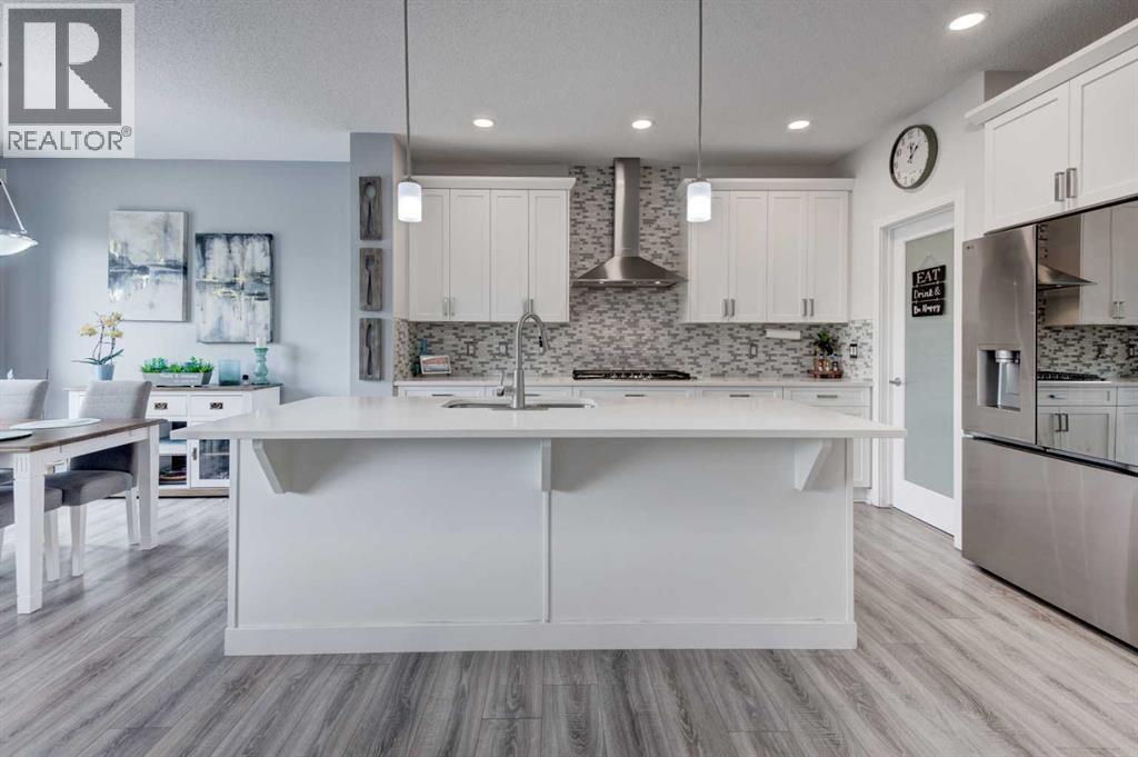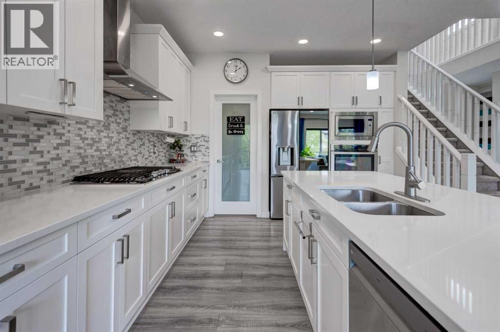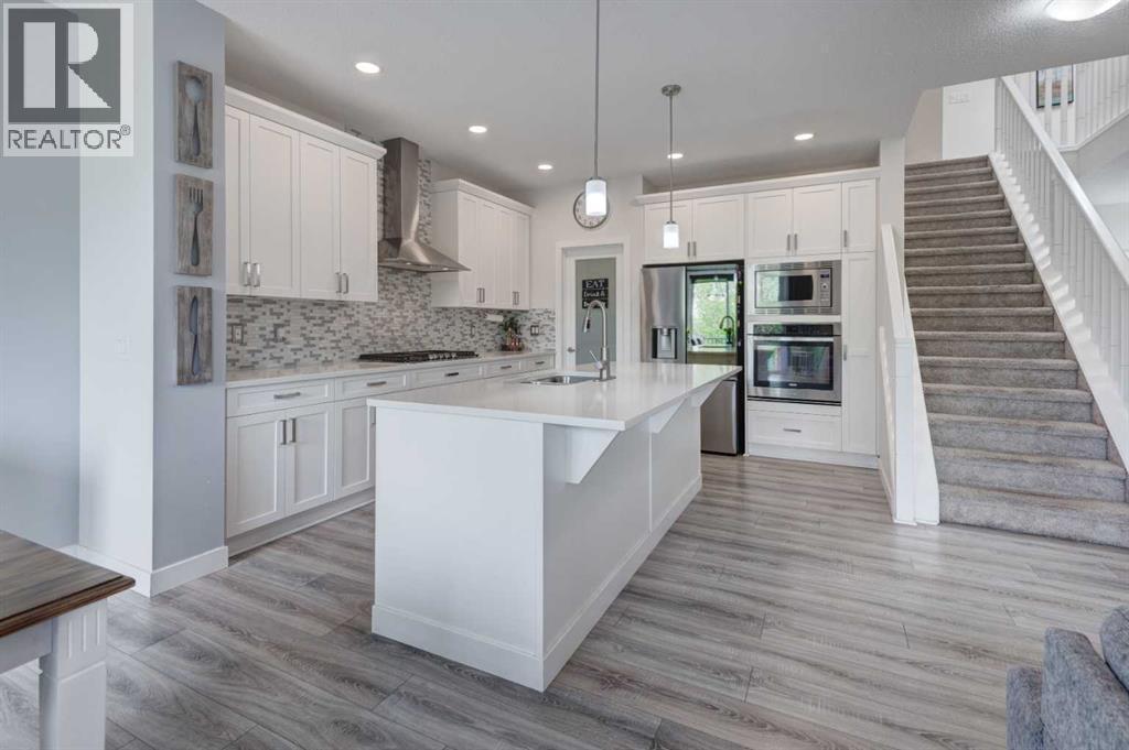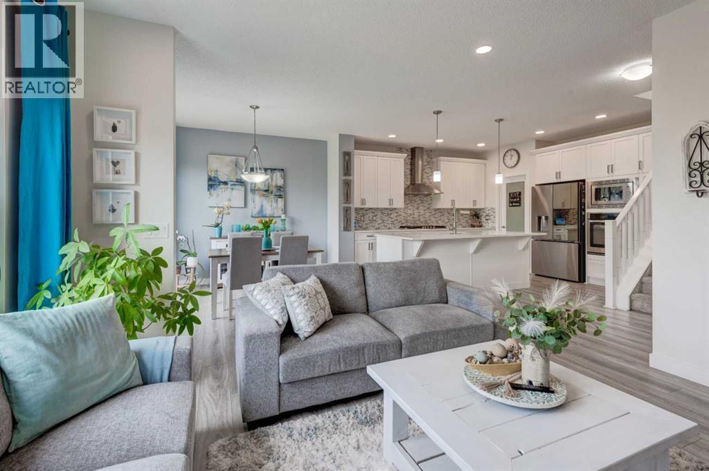 Welcome to this stunning home, nestled on a quiet street in the highly sought-after community of Walden. Beautifully maintained and impeccably kept, it offers almost 2,200 square feet of above-grade living space, complemented by an additional 821 square feet in the fully developed walkout basement. Your introduction to this residence begins with an expansive tiled front foyer that sets the tone for the thoughtful design throughout. Natural light floods every corner thanks to an abundance of large windows, creating a bright and airy atmosphere. The dream kitchen is a true showpiece, featuring crisp white cabinetry with crown moldings, quartz countertops, a large island, upgraded stainless steel appliances including a built-in oven and microwave, gas range and Insta-view Craft fridge. A walk-through pantry and mudroom add convenience, while the family-sized dining nook with patio doors opens to a full-width deck, perfect for entertaining. The main floor family room boasts a full wall of windows that enhance the open-concept design, making this home ideal for gatherings. Upstairs, the appeal continues with a massive central bonus room featuring vaulted ceilings, pot lighting, a built-in study nook, and two skylights that keep the space bright. The primary suite easily accommodates a king-sized bedroom set and offers a spa-inspired ensuite with quartz countertops, dual sinks, and a double-wide tile-skirted soaker tub. The walk-in closet includes built-ins for effortless organization. Bedrooms 2 and 3 are both oversized and feature walk-in closets, while the laundry room with tile floors and storage completes the upper level. The fully developed walkout basement adds even more space with 9’ ceilings, luxury vinyl plank flooring, a large recreation room, a spacious fourth bedroom, and a full bathroom. Outside, enjoy the west-facing backyard with a full-width covered patio, the perfect spot for relaxation and outdoor living. This turnkey property offers elegance, function, and comfort in one of Calgary’s most desirable communities—a true must-see! (id:6769)