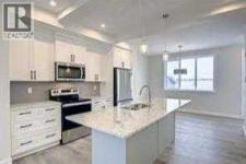 END UNIT, SIDE ENTRY TO BASEMENT. THIS HOME IS UNDER CONSTRUCTION, APPROX.60 DAYS TO COMPLETION. DOUBLE DETACHED GARAGE, DECK, FENCED AND LANDSCAPED, NO CONDO FEES. PICTURES ARE OF SAME MODEL, NOT SUBJECT PROPERTY. Welcome to the "St. Andrews" townhome, by Award winning, Master Builder, Douglas Homes Ltd. From the front covered porch, the entry opens onto the spacious great room with 9ft ceiling and gleaming hardwood floors throughout the main floor. The aspiring chef will appreciate the well planned "island" kitchen. From the upgraded 42 inch, soft close cabinets, to the gorgeous quartz countertops, everything is within easy reach. The sparkling stainless steel fridge, the glass top, self cleaning electric range, dishwasher, and over the range microwave/hoodfan are all just an arms length from the kitchen sink. Opposite side of the island, provides a convenient pantry, and desk with upper cabinet for all those recipe books you will collect. The spacious dining area features a large picture window looking out upon the back yard with room for the kids to play, with a rear entry door to the deck for those summer bbq's. Here also is a 2pc powder room for your guests convenience, and perhaps the kids hurried need. Upstairs includes 2 good sized secondary bedrooms, a 4pce bathroom with quartz vanity and tile floors, a convenient upstairs laundry, and a spacious primary bedroom with large upsized window and ensuite bath, with walk in shower, with glass front, tile floor and again a quartz vanity. The full basement provides rough in plumbing for a future bath, one window for future bedroom, and enough space remaining for a spacious future family room if you decide your family needs room to spread. All this in the desirable new subdivision Cobblestone Creek, with tennis courts, playgrounds, future school reserve, pathways and numerous green spaces, on the western edge of Airdrie, with wide open country side, and views to the west.Directions: (id:6769)