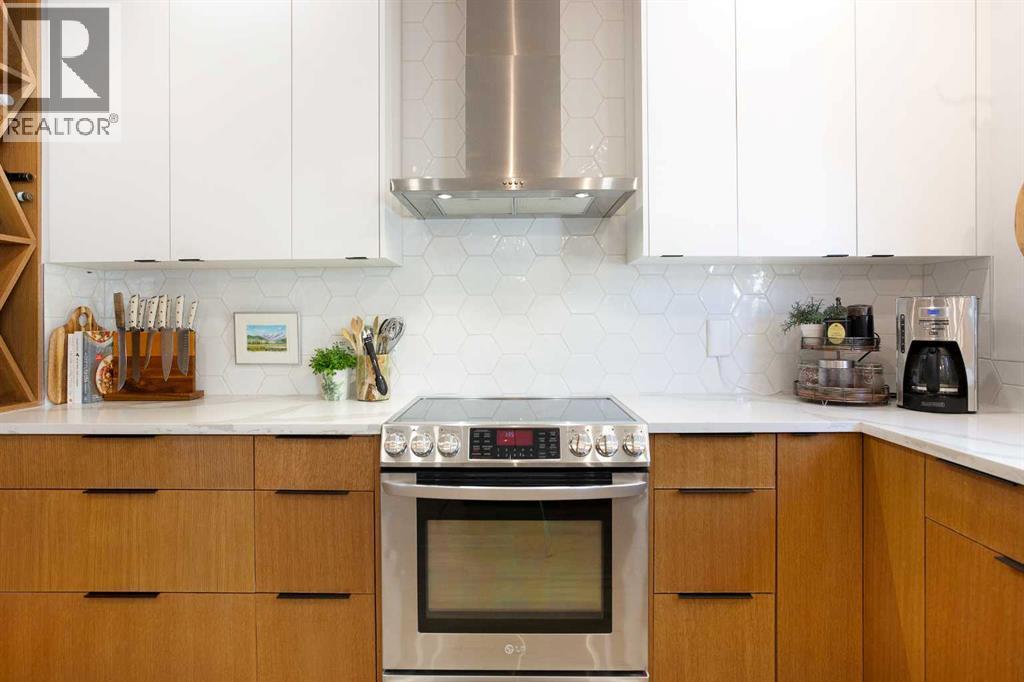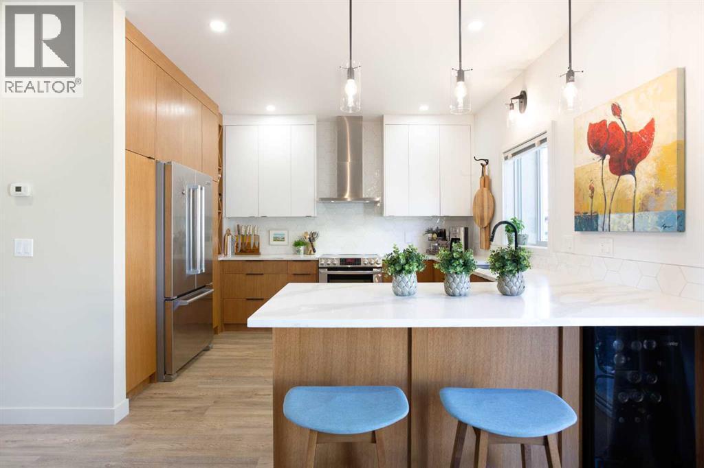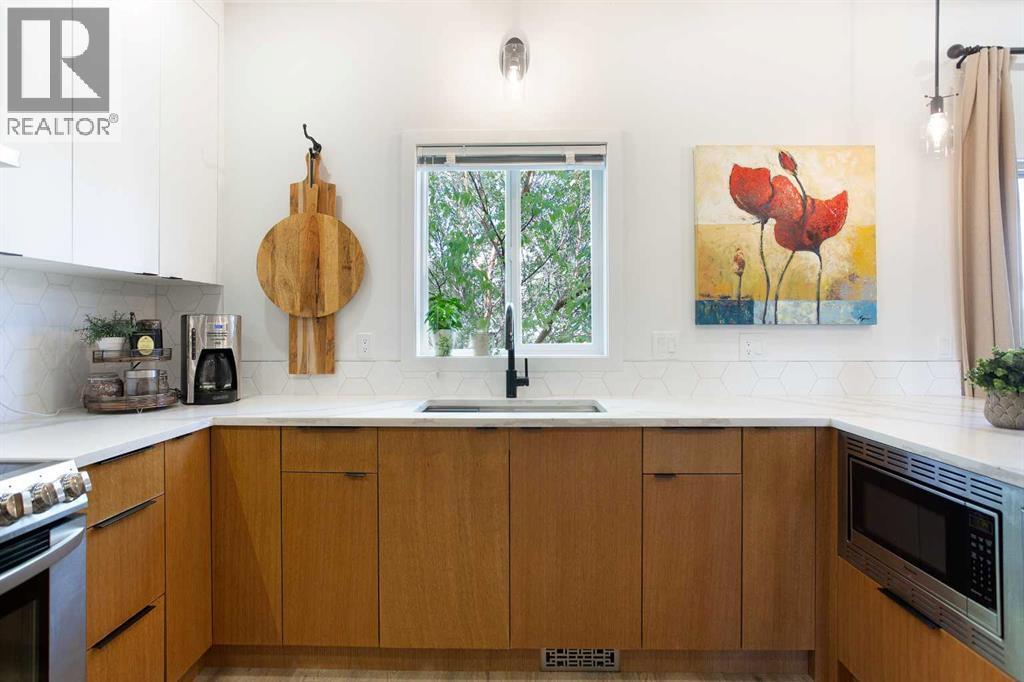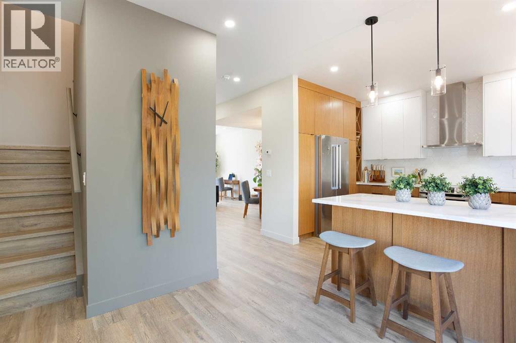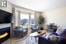 PRICE REDUCED! | NEWLY RENOVATED | MODERN KITCHEN | Welcome home to Fairways Vistas! This spacious and newly renovated townhome offers a thoughtful blend of comfort, style, and modern design. As you step inside, a mid-century style partition offers a sneak peek into a generous living space, where a large bay window welcomes the morning sunshine and a view of the lush courtyard, while in the corner, a gas fireplace offers the promise of cozy autumn evenings. Directly adjacent, a dropped ceiling adds intimacy to the open dining area - or perhaps home office? Continue past the main floor powder room to the heart of this home: a sleek and modern kitchen, where stainless steel appliances and quartz counters are offset by the warmth of striking oak cabinetry. The highly functional layout offers ample counter space, a pantry near the range, and an oversized sink with garburator, making food prep and cooking a breeze. A large, uninterrupted peninsula with a built-in microwave, eating bar, and bar fridge is perfect for entertaining family and friends, and a nearby breakfast nook provides both a perfect spot for folks to gather for those inevitable kitchen parties and access to the large rear deck, where a gas hook-up fuels your grill and mature trees offer shade and privacy.The upper floor is home to two large master suites. The first, larger, suite, has a walk through closet that leads to a large bathroom with a soaker tub, separate shower, and large vanity that could easily be outfitted with dual sinks. A generous flex area is perfect for a cozy book nook, yoga space, or even a nursery. The second suite enjoys a view of the beautiful courtyard. A generous walk-through closet offers custom wood shelving and upgraded organizers and leads to the second full bathroom.Downstairs, a ground-level flex space with direct access to the double garage is perfect for a home gym, hobby area or storage room. A future basement bathroom is already roughed in, so a large laundry/mudroom c ould also be an option. This home offers space you won't find in a new build plus many features you would: new luxury vinyl plank flooring, fresh & modern colour-drenched paint, and stylish new lighting. Additional recent upgrades include a new fiberglass front door, insulated garage door with tinted windows, resurfaced deck and front entry landing, composite steps with aluminum railing, updated roofing and gutters. Enjoy all the perks of modern finishings while benefiting from a great location in an established community, where you can enjoy an active lifestyle with golf, walking paths, and amenities nearby. Book your viewing today! (id:6769)
