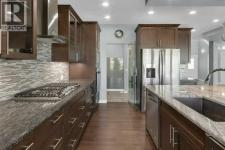 Welcome Home to 490 Sherwood Blvd NWThis stunning two-story walkout backs and sides onto green space, offering breathtaking views of the serene pond just behind the home. Enjoy nature from the comfort of your bright and spacious living space.Park and new school being built across the street. Featuring 3 bedrooms upstairs and a large, sunlit bonus room, this home is designed for both comfort and functionality. The elegant primary suite includes a generous walk-in closet and a luxurious 5-piece ensuite.The open-concept main floor boasts a modern, upgraded kitchen equipped with high-end appliances, including two gas cooktops, two garburators, and two hood fans. A convenient spice kitchen is located just off the main kitchen—perfect for the home chef.Step into the impressive two-story foyer that flows seamlessly into a spacious flex room and great room. Every detail in this home has been thoughtfully upgraded, including:•New exterior with hail-resistant asphalt shingles•3-stage high-efficiency furnace and 16 SEER air conditioning•78-5000K pot lights throughout the home•Upgraded tankless water heater•Frosted glass railings on the front exterior and deck•Remote-powered blinds•Granite countertops throughout •Hardwood flooring •Upgraded 10mm glass railings •Extensive security camera system (includes all 4K TVs)•Epoxy flooring and upgraded overhead garage door•Professionally landscaped yard with fencing•Stunning elegantly tiled landscape style fireplace This exceptional home is move-in ready and must be seen to be fully appreciated.Call today to book your private showing! (id:6769)