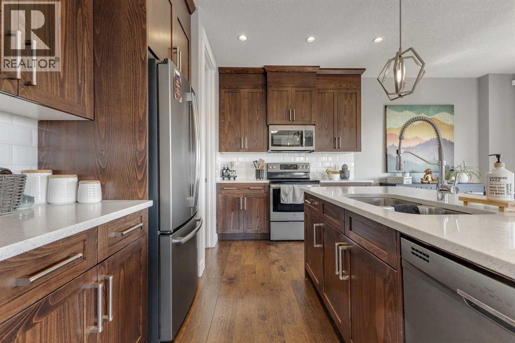 Open house Sunday, October 5th 1:PM TO 4:30 PM. Come view this beautiful, spotless DS - 2 storey home. Original owner has taken immaculate care of their home. The open floor plan invites tons of natural light. The upgrades of the home includes quartz counter tops throughout, 3/4" wide plank engineered hardwood &, stainless steel appliances. The main floor boasts 9 ft. knock down ceiling, coupled with towering 8 ft. doors. Throughout the home is timeless traditional dark cabinetry. The home is painted with neutral colors. What a great kitchen for the cook. The eating area is designed for a large table for the whole family. The main floor also has a large mud room with walk through pantry. There is also a half bath and a living room with a cozy gas fireplace. Moving upstairs the spacious primary bedroom has a walk in closet ((7'.3"x7'.1" ). This bedroom also hosts a 5 piece ensuite with double vanities, a large shower and a separate soaker tub with jets. There is another bathroom (4 piece) and two other bedrooms for the kids, plus a bonus room on this upper level. This floor plan also has an upper floor laundry. This is so convenient on laundry day. Moving down to the lower level/basement is more family space. Fully developed with a family/games room, a 4th bedroom and a full 4 piece bath. Plenty of space for the teens and their friends to visit. Now to the outside. Parking is a double attached garage ( 18'11" x 21'6"). For guests there is front street parking, plus side parking by the home. The side area is great for offering additional street parking and a place for kids to ride bikes and play street hocky. A nice private fenced back yard with a spacious deck. The home/yard backs onto an open green space. Your family is going to love this home and it's amenities! Plus, the Little Bow River runs past the property. Nearby amenities include High River General Hospital, Roya l Canadian Mounted Police Station, High River Fire Department, Schools, Grocery Stores, Cafes, Restaurant's & Parks. Nearby services are Okotoks-Aldersyde nearest bus stops, SB Somerset-Bridlewood C-Train Station. A lovely quiet town living, yet only 49 minutes (68.6 km) to Calgary. A great family home and a great community, a must see. A new real property is available. The owner's wish to sell most of their furniture. The buyer gets first right of refusal to buy the furniture if they are interested. Call your favorite realtor to view this beauty. (id:6769)