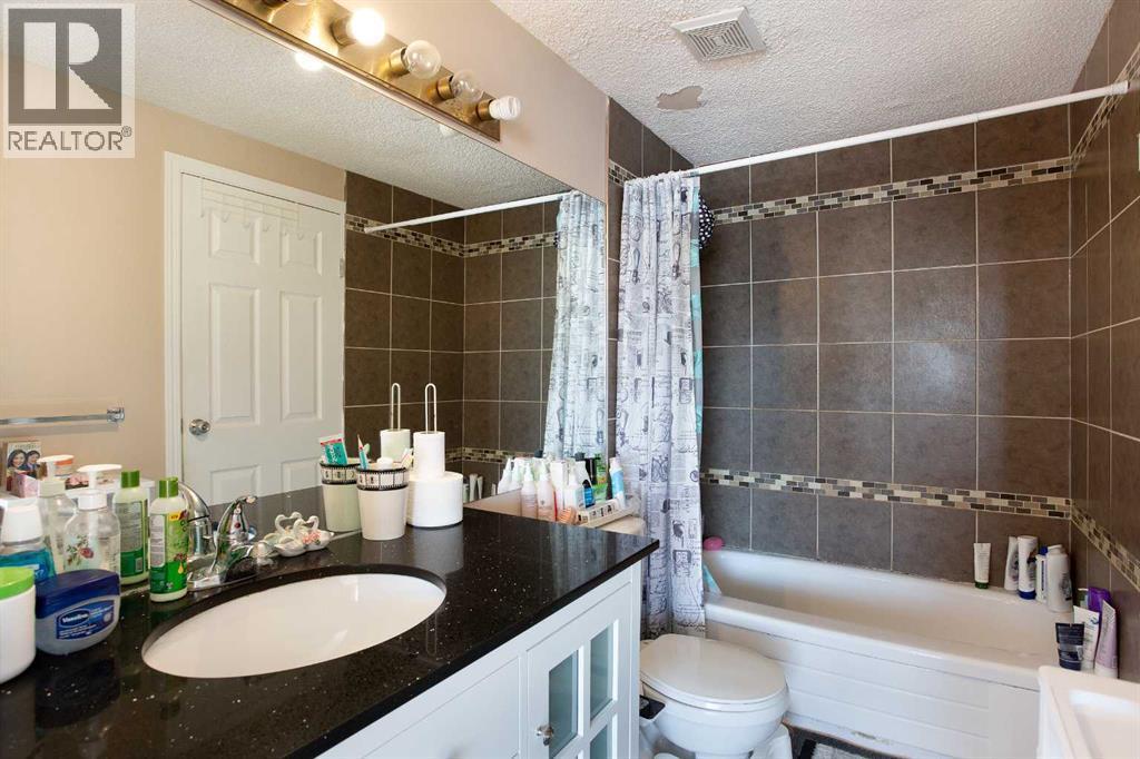 Amazing 3 bed, 2 full bath, 1 half bath END UNIT townhome in Falconridge with a private yard, walking distance to 2 elementary schools! Updates over the years include: updated kitchen with quartz countertops and stainless steel appliances, engineered hardwood, and updated flooring upstairs. Entering in the front door you will find the updated kitchen with large eating area. A half bath is right off the entrance and continuing further toward the backyard you will find the large living room. The backyard is a private oasis with a convenient gate to the street. Moving upstairs you will find 3 good sized bedrooms and the 4 piece bathroom (tastefully updated) which is serves as a cheater ensuite to the primary bedroom. In the developed basement you will find a kitchenette and a convenient 4 piece bathroom as well as a large den (which cannot be listed as a bedroom because it does not have a window). See this home quick! (id:6769)