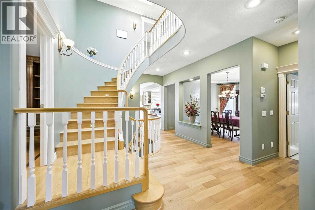 Beautifully upgraded former Chancellor showhome backing onto the prestigious Hamptons golf course with unobstructed views of the greens & fairways. Offering a total of 6 bedrooms, relaxing central air & rubber roof, this fully finished estate home with classic brick facade, boasts extensive hardwood flooring, gourmet kitchen with granite counters & 2 fireplaces. Prime location just steps to bus stops & across from the Hamptons School & sports fields. Complemented by 9ft ceilings & beautiful hardwood/tile floors, you'll embrace the traditional design of the main floor with its formal living & dining rooms, expansive family room with cozy window seat & gas fireplace accented by built-in bookcases, dining nook with floor-to-ceiling windows & stylish gourmet kitchen with granite counters & centre island, walk-in pantry & upgraded black/stainless steel appliances including brand new fridge. The eye-catching spiral staircase winds its way up to the 2nd floor where you'll find 4 great-sized bedrooms - all with hardwood floors - & features the wonderful owners' retreat with sitting area & Valor gas fireplace, panoramic golf course views, walk-in closet & relaxing jetted tub ensuite with double vanities, separate shower & tile floors. Shared by the other 3 bedrooms, the family bath has a skylight & double vanities plus there is another full bath in the finished walkout level along with 2 bedrooms & terrific media/rec room with wet bar & built-in entertainment centre. Oversized 2 car garage,New furnaces(year 2023), hot water tank (year 2023), curtains(year 2023,main floor and basement flooring(year 2023). A truly sensational home perfect for the growing family, only a heartbeat away from shopping & community amenities, golf course & beyond! (id:6769)