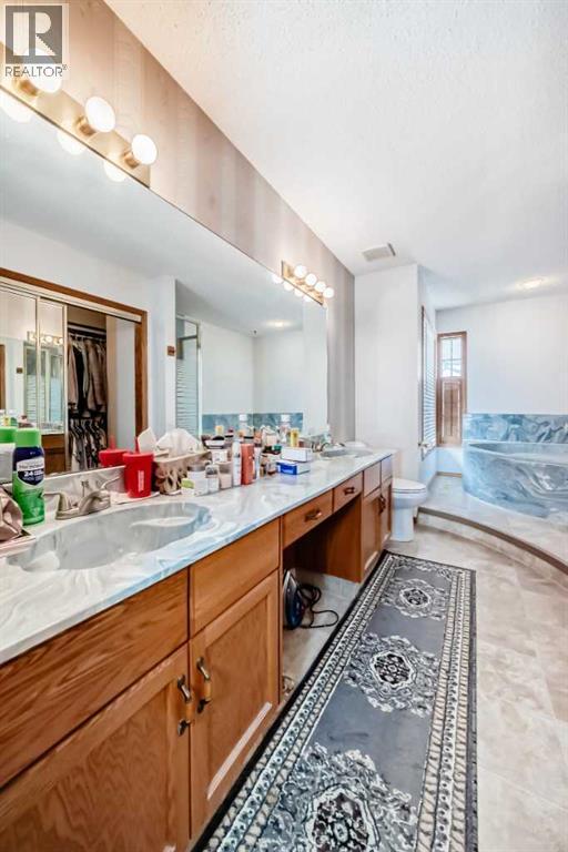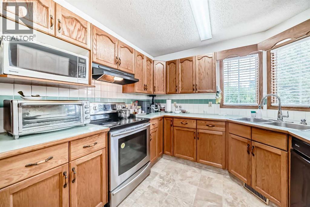 Impressive 2-storey split with timeless clay tile roof, striking stucco/brick exterior, and an oversized double garage! Step into a bright living room with soaring cathedral ceilings, a sunny oak kitchen with plenty of cabinet space, and a dining area overlooking the family room with a stunning stone gas fireplace, wet bar, and access to the south-facing deck. The master retreat offers a walk-in closet and a spa-like 5-pc ensuite with jetted tub and separate shower. Enjoy a huge fenced yard with RV parking & storage shed, all tucked away in a quiet cul-de-sac. A true gem with endless potential—your home sweet home awaits! (id:6769)