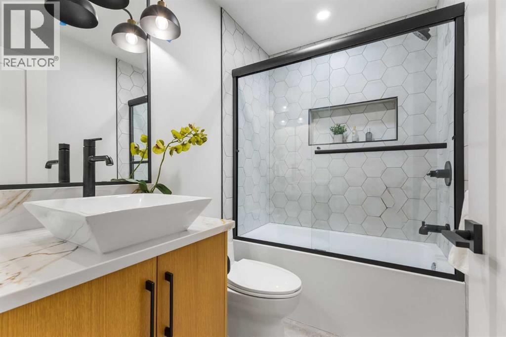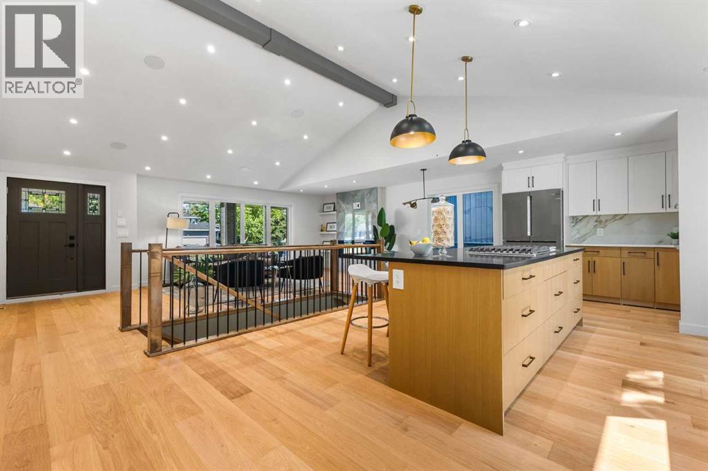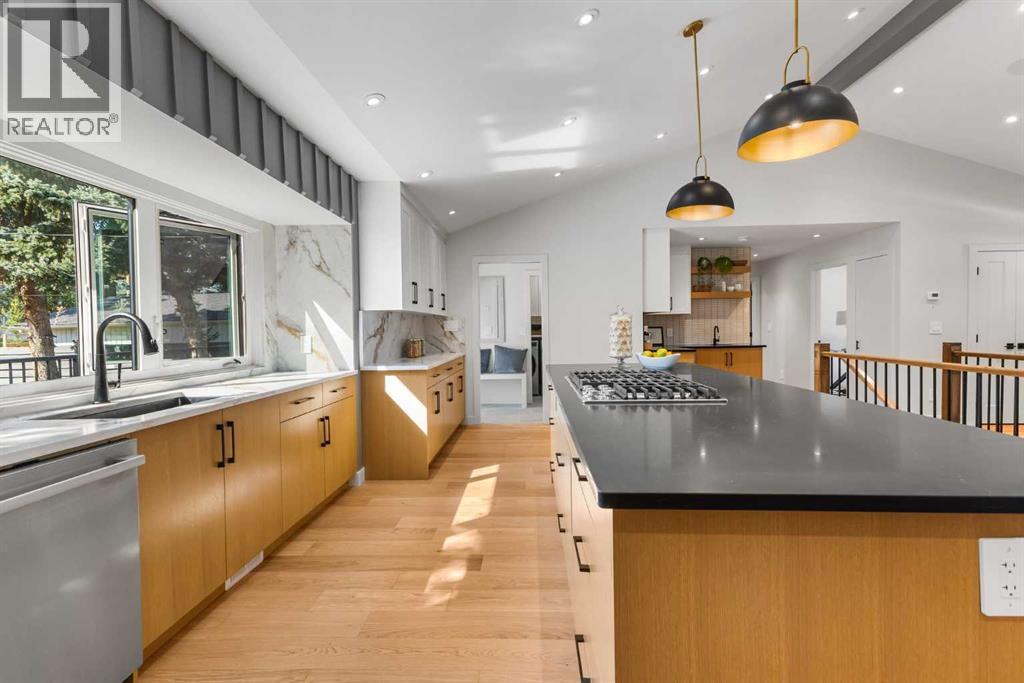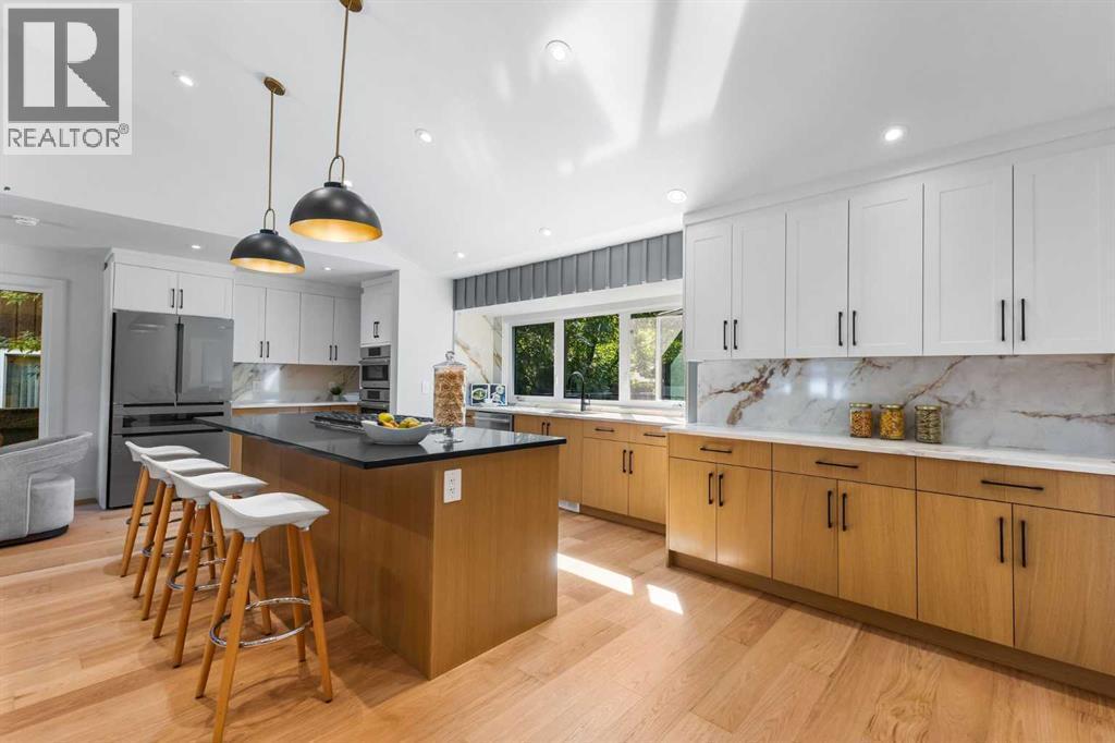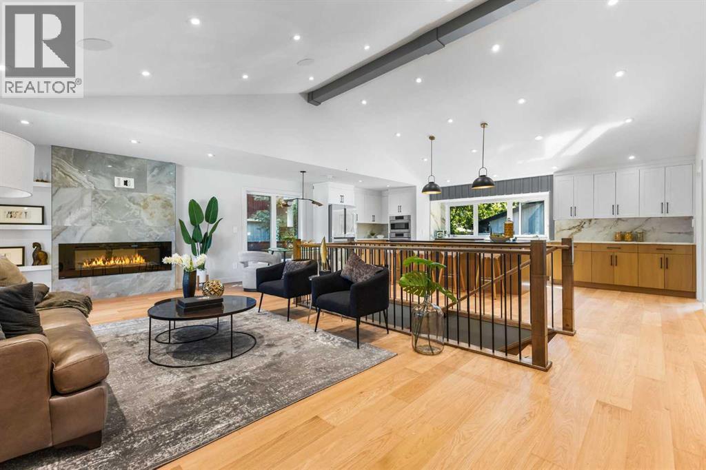 *Open house on Saturday, Oct 4 and Sunday, Oct 5, 2.30-4.30pm* A complete transformation in Calgary’s premier lake community. Taken down to the studs and rebuilt over 10 months, this Lake Bonavista bungalow is effectively brand-new, combining timeless design with modern luxury. Professionally designed, the home reflects an expertly curated palette with high-end finishings, quartz throughout, and no expense spared. Every detail, from structure to style, was meticulously planned with function and quality in mind.Inside, soaring vaulted ceilings with spray foam insulation showcase plenty of pot lights, integrated speakers, and a dramatic open-concept design. The chef’s kitchen blends Bosch appliances with a KitchenAid downdraft gas cooktop, quartz counters with a full quartz backsplash, and a custom wet bar/cappuccino station with wine fridge. The layout is anchored by a floor-to-ceiling fireplace, with flat-painted ceilings and extensive pot lighting throughout.The primary retreat offers a custom walk-in closet and spa-inspired ensuite with dual vanities, rain shower, and body sprays. A second bedroom, stylish 4-piece bath with tub/shower, and a custom mudroom with built-ins, laundry, and dog wash complete the main floor.The lower level is equally impressive, with a sprawling rec room, an incredible wet bar, games area, sauna, another bedroom, gym, and a showpiece 4-piece bathroom.Outside, the home features a fully redone exterior with Smart Board siding, stone accents, and all new windows, complemented by new exposed aggregate poured front steps, landing, and a walkway that extends around to the back. The fully finished oversized double heated garage with a large opening gate completes this property.Thoughtful upgrades include all new plumbing and electrical, on-demand hot water, new backflow preventer, extensive lighting including stair lighting, and a functional layout designed for today’s lifestyle.Enjoy exclusive year-round lake access, swimming, padd leboarding, skating, and community events, in one of Calgary’s most prestigious communities. (id:6769)