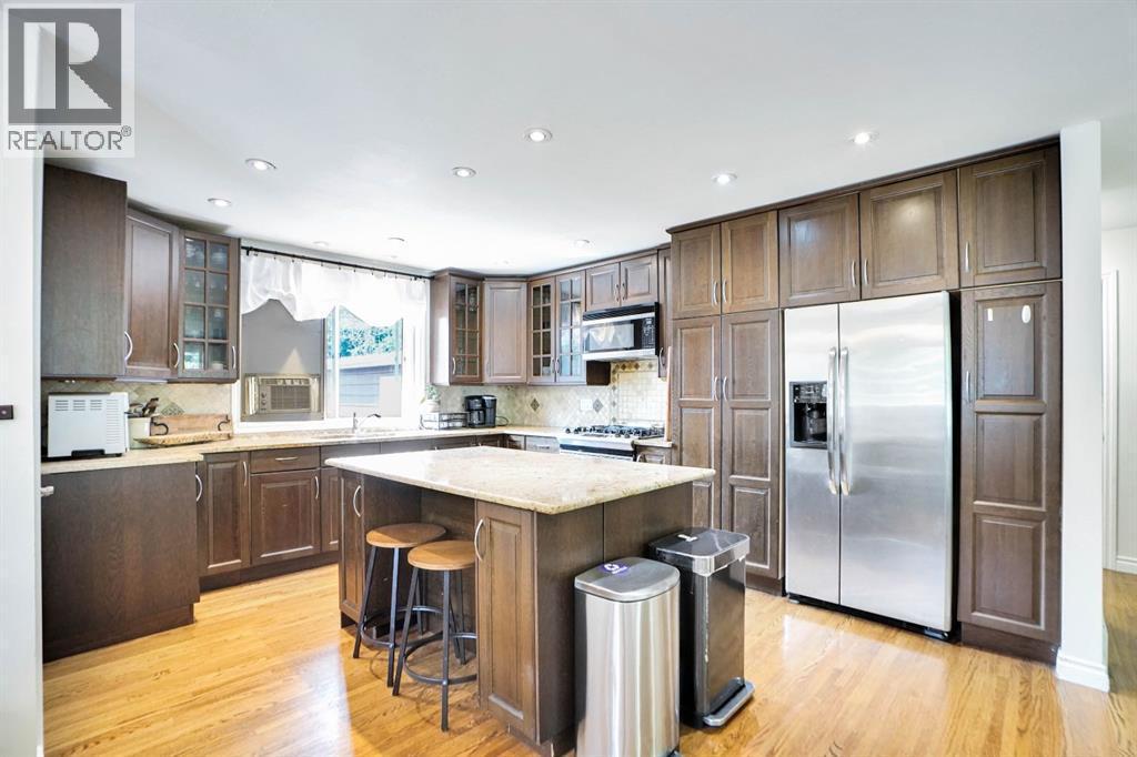 Discover the perfect balance of classic charm and modern potential in the heart of Brentwood. Offering over 2,540 sq. ft. of total living space, this bungalow is designed for both family living and future opportunity.The main floor features three comfortable bedrooms and two full bathrooms, including a main bath with a relaxing Jacuzzi tub. The bright kitchen blends function and warmth with marble counters, a gas range, stainless steel appliances, and upgraded oak cabinetry accented by soft-close glass doors. Hardwood floors flow through the living spaces, while convenient main-floor laundry rough-ins add modern practicality.The lower level extends your options with two additional bedrooms, a full bath, wet bar, and wine cooler, all accessible through a separate entrance. This space is ideal for extended family, entertaining, or future suite development (A secondary suite would be subject to approval and permitting by the city/municipality), which Brentwood is well known for.Outside, you will find an oversized double detached garage, ample street parking, and a generous south-facing backyard that enjoys plenty of sun throughout the day. A private deck connects directly to the garage, creating the perfect flow for BBQs, summer gatherings, and family fun. With ample room for swings, a trampoline, or gardens, this yard is designed for both play and relaxation.Set in Brentwood, one of Calgary’s most desirable neighbourhoods, this home is just minutes from top-rated schools, parks, the University of Calgary, and North Hill Shopping Centre. Families will love the comfort and space, while investors will appreciate the strong rental potential and long-term value that Brentwood consistently delivers.A rare opportunity to own a property that offers space, lifestyle, and location all in one. (id:6769)