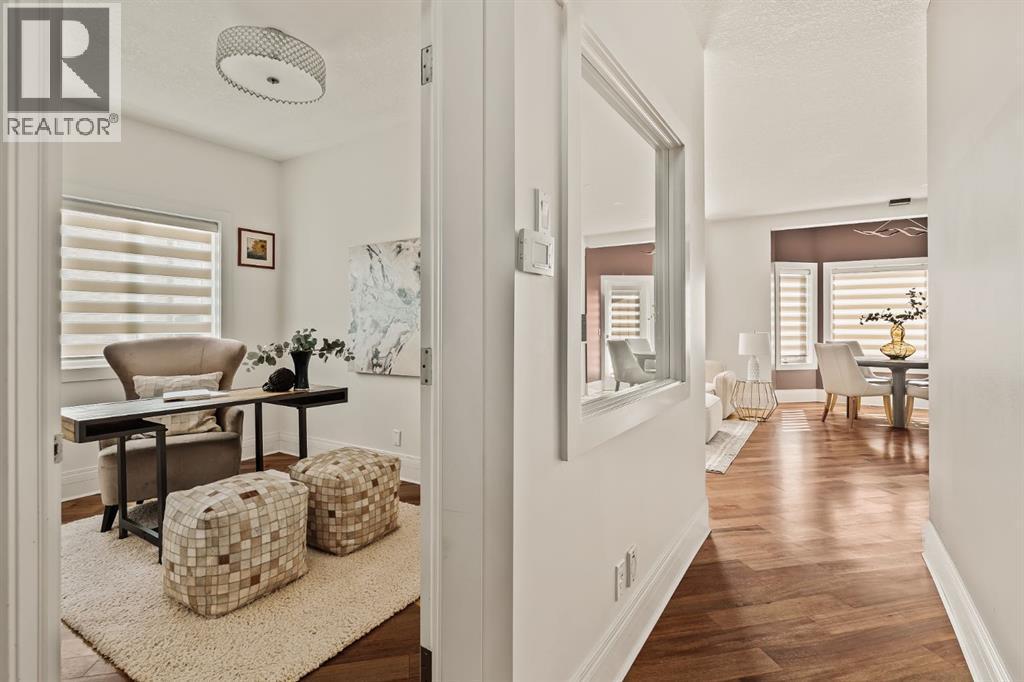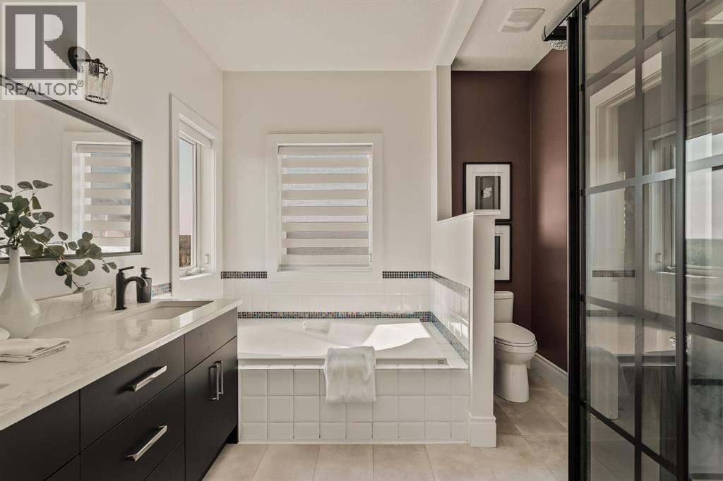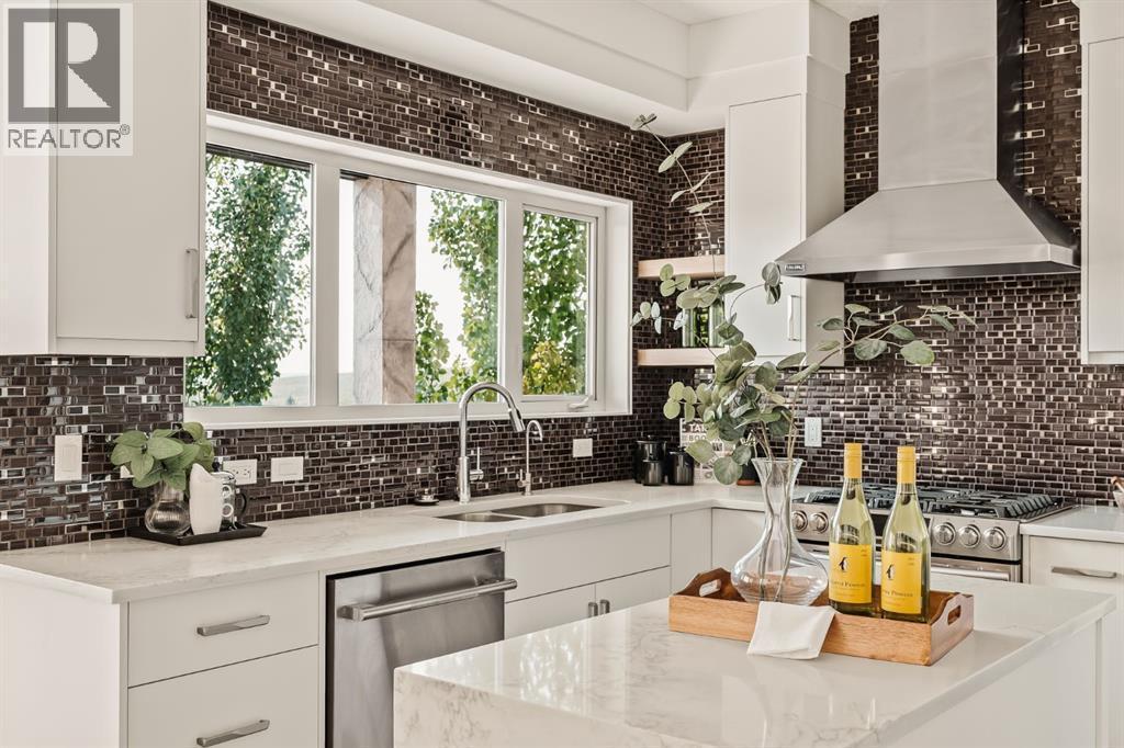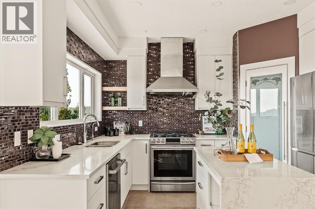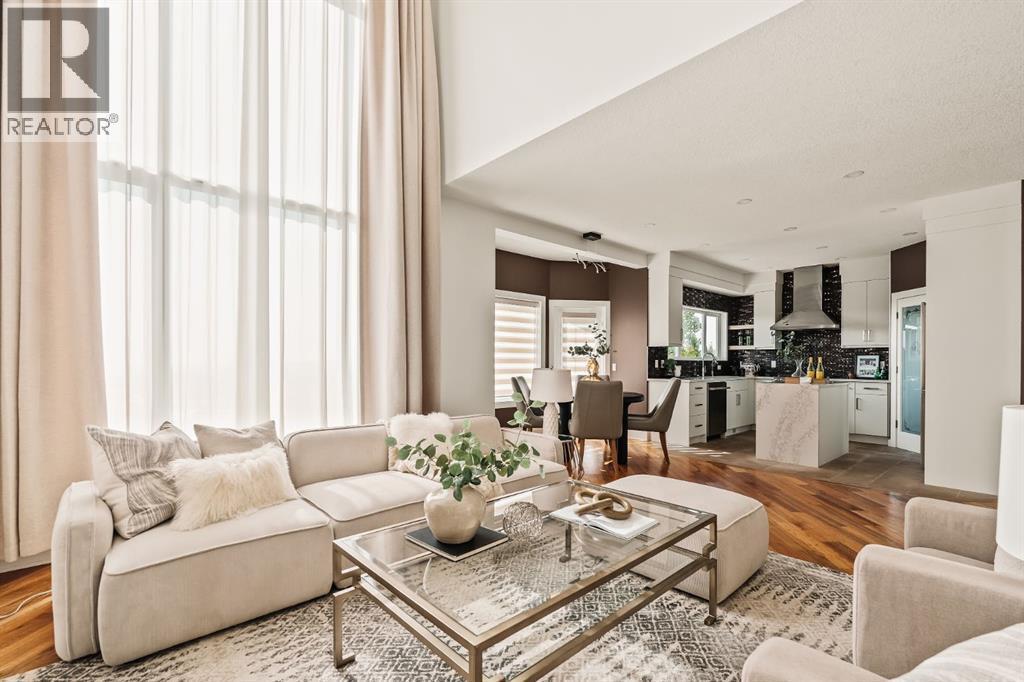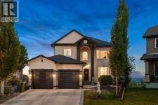 This is a RARE OPPORTUNITY to secure your view lot, backing the pond, with a wonderful SE exposure, on Calgary’s wonderful Westside, an IDEAL LOCATION, just steps to Aspen Landing! This two storey walkout sits on a 7674 sq ft pie shaped lot, beautifully landscaped overlooking an expansive hillside of trembling aspen – PRIVATE & QUIET, a SERENE location, with WONDERFUL VIEWS! (Bring your camera, the fall colours will be spectacular!). This home offers 3145 sq ft of developed living space over three levels. Highlights include maple hardwoods and 9’ ceilings which run throughout the main and upper levels, quartz countertops throughout, designer lighting and window coverings, NEW appliances and toilets, NEW hi-efficiency furnace and hot water tank and a home finished in a soft white palette throughout. This home is move-in ready and available for a quick possession. On the main you will love the Great Room in back, under a 19’ cathedral ceiling, overlooking the gardens and THE VIEW to the SE. The Great Room opens to the refreshed kitchen and breakfast nook. The main level also enjoys a proper Living Room and Dining Room as well as a private Den/Home Office. Upstairs the Primary retreat overlooks the green space & pond with a WARM & BRIGHT SE exposure. Here you will find a sharp 5pc en suite and walk-in closet. The two additional beds up also enjoy hardwood floors and share a 4pc bath, with quartz countertops. The walkout has been fully developed with a large open Rec Room, and third full bath and a flex room which could easily accommodate your house guests. The walkout lead directly to a rear patio and expansive gardens… PRIVATE & QUIET! (id:6769)
