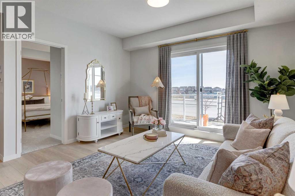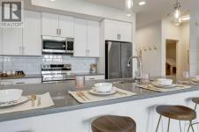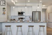 INTRODUCING ALPINE PARK PLACE, IN BEAUTIFUL SOUTHWEST CALGARY. BUILT BY CEDARGLEN LIVING, WINNER OF THE CustomerInsight BUILDER OF CHOICE AWARD, 5 YEARS RUNNING! BRAND NEW "A" unit with high-spec features. You will feel right at home in this well thought-out, 514. RMS sq.ft. (565 sq.ft. builder size). 1 bed, 1 bath home with open plan, 9' ceilings, LVP flooring throughout common areas, carpets in the bedrooms and closets, Low E triple glazed windows, BBQ gas line on the patio, Fresh Air System (ERV), and so much more. The kitchen is spectacular with full height cabinets, quartz counters, undermount sink, rough-in water line to the fridge and S/S appliances. The island is extensive with built in flush breakfast bar, which transitions into the spacious living area, perfect for entertaining. The spacious bedroom has a large bright window (triple pane windows) and sizeable closet. Right beside your bedroom is a 4pc bath with quartz counters, and undermount sink. Nearby is the spacious laundry/storage room, this is a must see (washer & dryer included). Highlights include: Hardie board siding, designer lighting package, sound reducing membrane to reduce sound transmission between floors, clear glass railing to balconies and 1 titled surface parking stall included (storage lockers available for purchase). A once in a lifetime community in Southwest Calgary. PET FRIENDLY COMPLEX, PRE-CONSTRUCTION OPPORTUNITY, PURCHASER CAN STILL MAKE SELECTIONS, and PHOTOS ARE OF A DIFFERENT SHOW SUITE FOR REFERENCE ONLY, FINISHING'S/PLAN WILL DIFFER. ESTIMATED COMPLETION RANGE IS JUNE 2026-JUNE 2027. VISIT THE SHOW SUITE TODAY FOR MORE INFO & FALL PROMOTION! (id:6769)