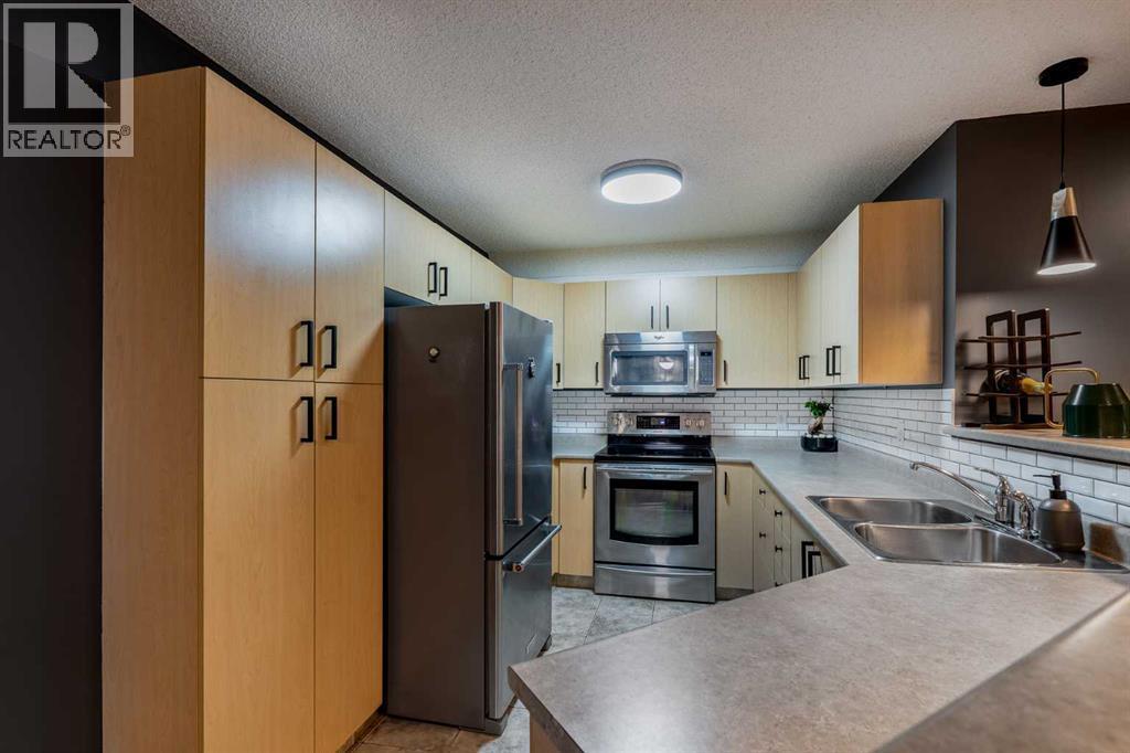 Unique chance! Experience the best of Downtown Airdrie living in this exceptional unit! Boasting 1,055 square feet of meticulously renovated space, this 2nd-floor condo offers an incredible opportunity. From the moment you step inside, you'll be captivated by the abundant natural light streaming through the expansive windows, creating an airy, open feel throughout the day. As one of the largest floor-plans in the entire development, this unit provides generous living and dining areas, seamlessly flowing into a stylish, functional kitchen. Home chefs will appreciate the upgraded wood cabinetry, sleek stainless appliances, and a convenient breakfast bar – perfect for entertaining or casual meals. This thoughtfully designed condo features two spacious bedrooms, including a primary suite with a walk-through closet and a private 3-piece ensuite. A second full 4-piece bathroom and a versatile den (ideal for a home office, gym, or quiet retreat) offer ultimate flexibility.The large living room with a gas fireplace leads to the spacious private balcony with gas barbecue hook ups and a fantastic view of the park! Enjoy the comfort of in-suite laundry and storage! The balcony includes a gas hook up for your BBQ and no building behind you for privacy. Adding to the convenience are two parking stalls: one titled, underground and heated, and another surface stall directly in front of the building. Located in a highly sought-after, well-managed complex with ample visitor parking, you'll enjoy quick access to walking paths, schools, shops, public transit, and major routes. This bright, inviting space is truly a must-see! Schedule your private showing today! (id:6769)