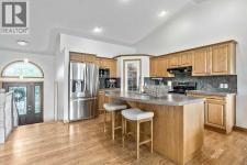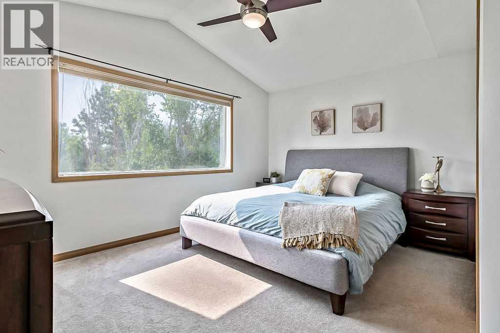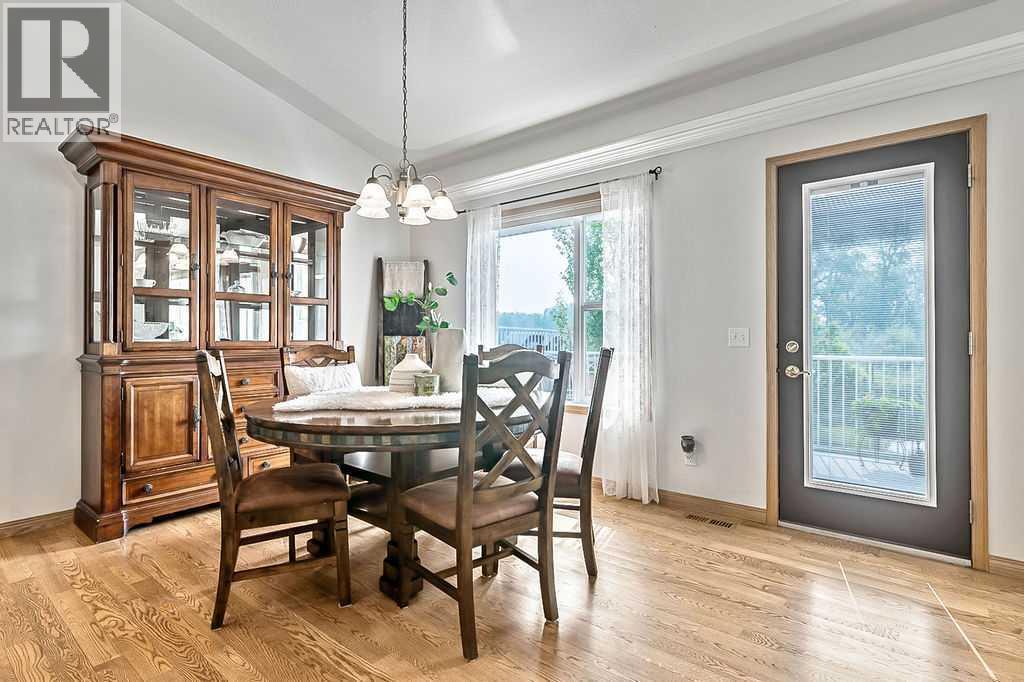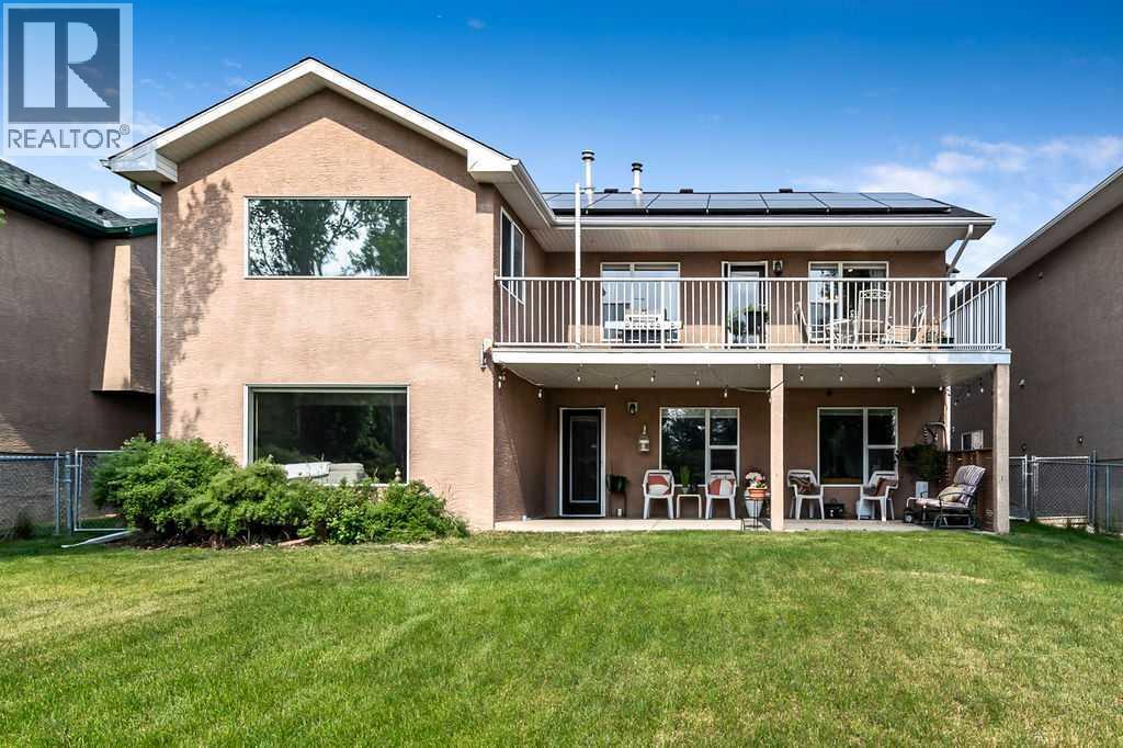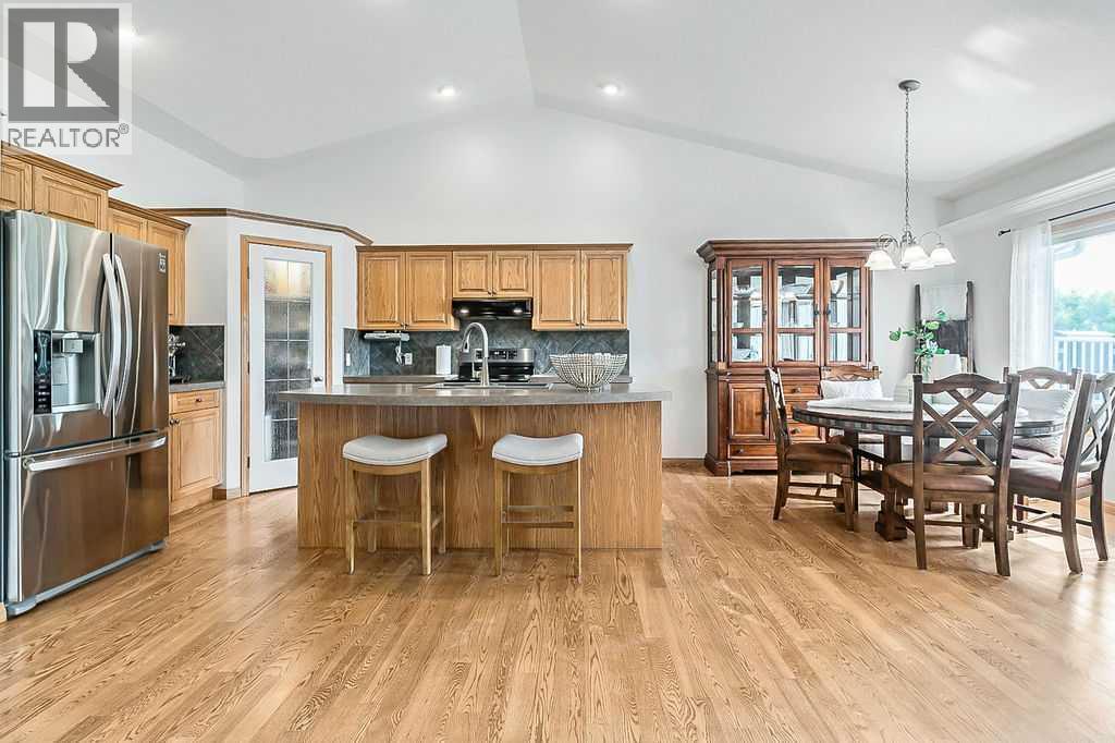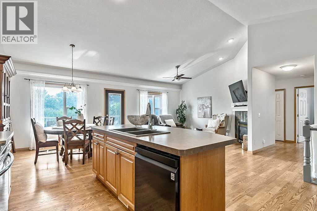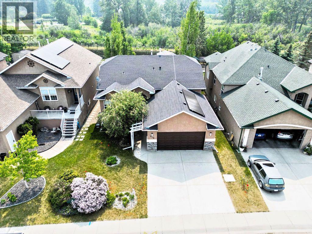 GORGEOUS OVERSIZED LOT BACKING ONTO NATURAL DISTRICT, VAULTED CEILING, open concept plan with 2700SQFT+ of living area, five bedrooms, main floor den, WALK-OUT BASEMENT … truly, this bilevel bungalow checks them all! Step inside (click 3D for virtual walkthrough), and you will fall in love with this home’s warm ambiance and beautiful setting. MAIN LEVEL features stunning open concept kitchen with pantry and island, living room with corner fireplace, dining area overlooking back yard, primary bedroom with ensuite bathroom and walk-in closet, and second bedroom plus full bathroom. ENTRY LEVEL a few steps down features home office to one side. LOWER LEVEL features spacious layout, huge windows that flood this space with natural light, in-floor heating, large recreation room, three more bedrooms and full bathroom. All in, this home offers an impressive 5 bedrooms, 1 den, plus 3 full bathrooms. OVERSIZED (21’3” x 24’0”) DOUBLE GARAGE is insulated, drywalled and heated (gas). THEN THERE IS THIS HOME’S BACK YARD PARADISE … oh my, truly a private oasis within a nature reserve, and nearly double the size of most lots in town. Lot backs onto designated natural area and offers plenty of room and privacy for endless hours of outdoor relaxation and fun in the summer, and room for skating rink in winter. Did we mention AC, solar panels that have essentially eliminated electric bills for sellers, and new hot water tank? If you are looking for a spacious bungalow in perfect serene setting, then this is the one!! RECENT UPDATES: solar panels $26K (2024), new hot water heater $5K (2024), new paint throughout (2025) (id:6769)