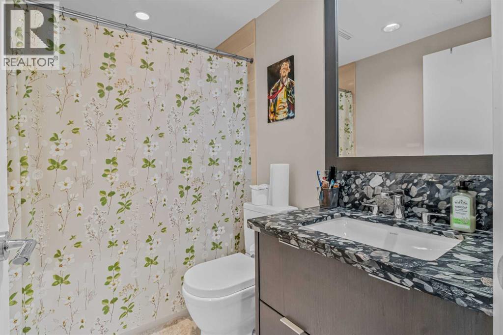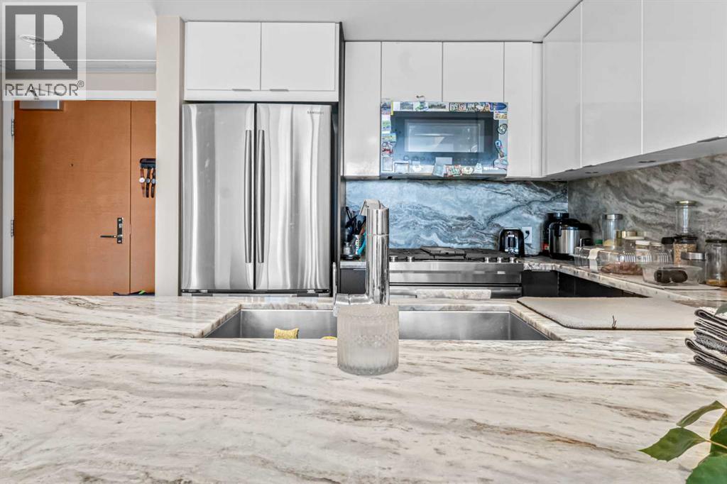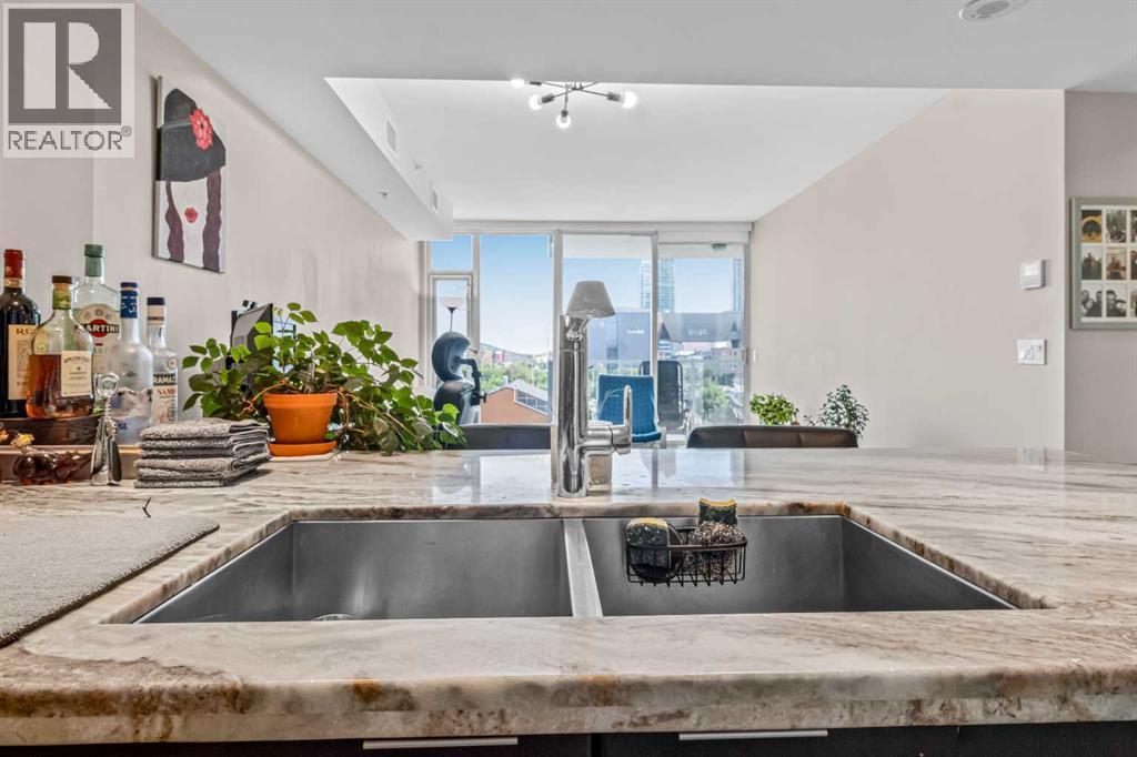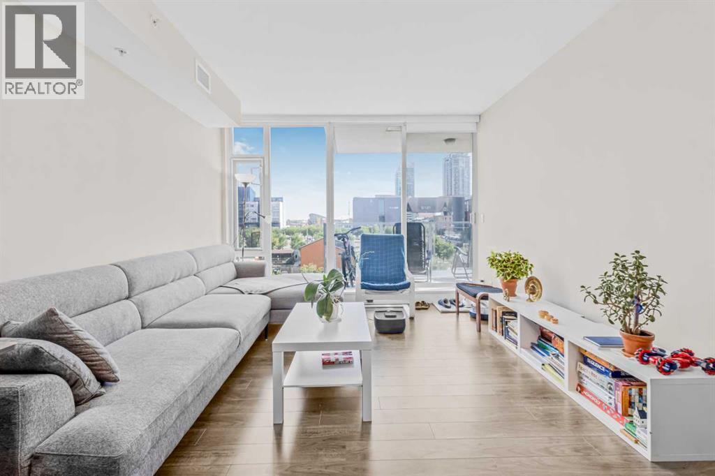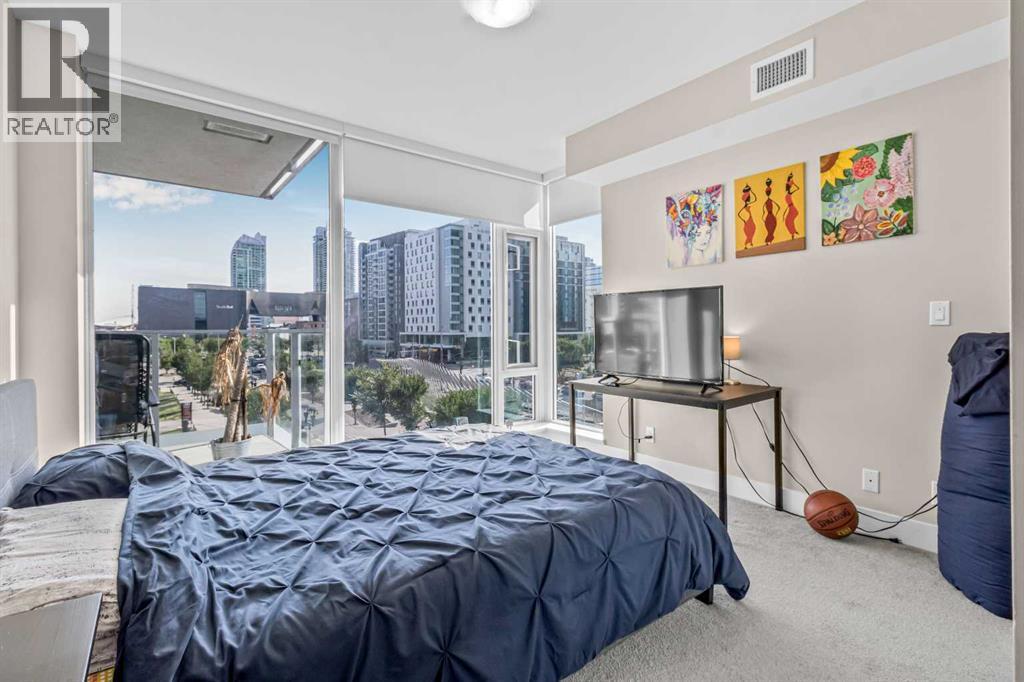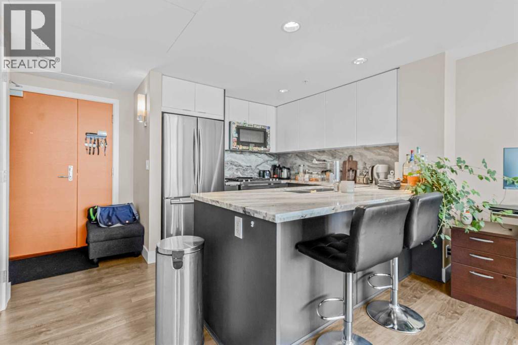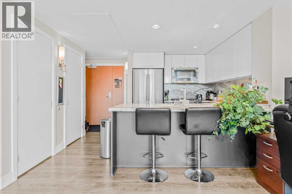 Experience luxury living in this 1 bed, 1 bath condo at the iconic Evolution in East Village. It features floor-to-ceiling windows with views of the Saddledome and Calgary Tower, chef’s kitchen with gas range, granite counters, central air conditioning and ensuite. Enjoy a spacious balcony with amazing Views. This unit comes with storage locker, and premium amenities including 24 hours security/concierge services, fitness centre, sauna, and BBQ area. Steps away from Studio Bell, grocery stores, RiverWalk, LRT, Library, and top restaurants. Don't miss on this "Stunning Living in East Village"— book your private tour today! (id:6769)