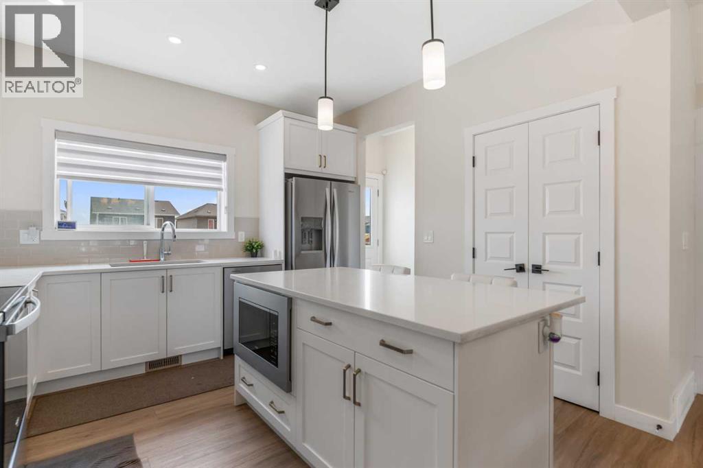 Airbnb Income Property – Fully Furnished Option Available! This 2024-built detached home in Bayview, Airdrie is already producing steady short-term rental income, making it an ideal turnkey investment opportunity or a first time Homebuyer.Offering 1,480 sq. ft. of modern living space with 3 bedrooms and 2.5 baths, this nearly new home combines elegant finishes, a functional layout, and excellent cash flow potential. The seller is willing to include all furnishings, allowing investors to step directly into a fully operational income-producing property from day one. Inside, the open-concept main floor features 9 ft knockdown ceilings, recessed lighting, and luxury vinyl plank flooring. The gourmet kitchen is equipped with quartz countertops, a central island with seating and premium stainless steel appliances including a built-in microwave and range hood. The spacious living and dining areas flow seamlessly to the backyard, perfect for entertaining. Upstairs, the primary suite offers a large window, walk-in closet, and 4-piece ensuite with a double vanity and walk-in shower. Two additional bedrooms, a 3-piece bath with soaking tub, and a convenient upper-floor laundry room complete the level. The sunshine basement offers excellent future potential with rough-in for a bathroom and layout for two additional bedrooms. Added features include a Smart Home Package with thermostat, video doorbell, and smart locks, plus a double car concrete pad ready for a future detached garage. Located in family-friendly Bayview, this home is just 10 minutes from CrossIron Mall and 15 minutes from Calgary International Airport, with schools, parks, and playgrounds nearby. A rare opportunity for both investors and homeowners seeking value, comfort, and long-term potential. (id:6769)