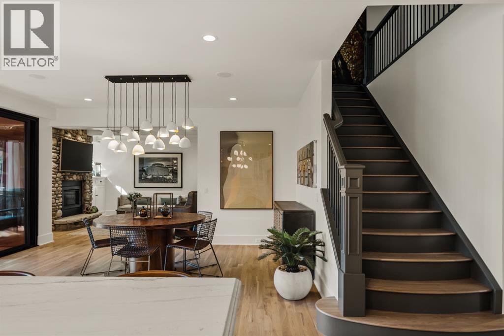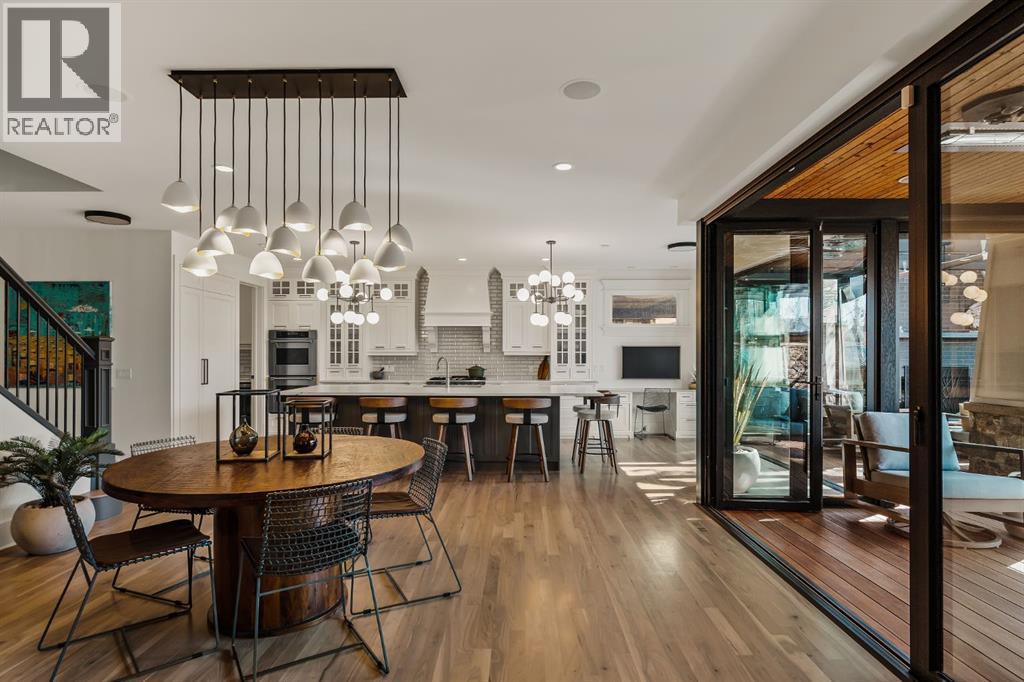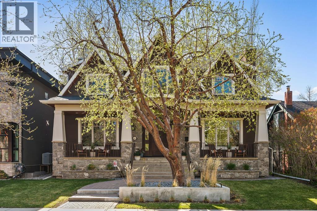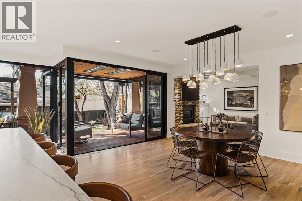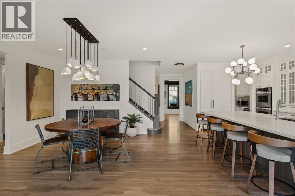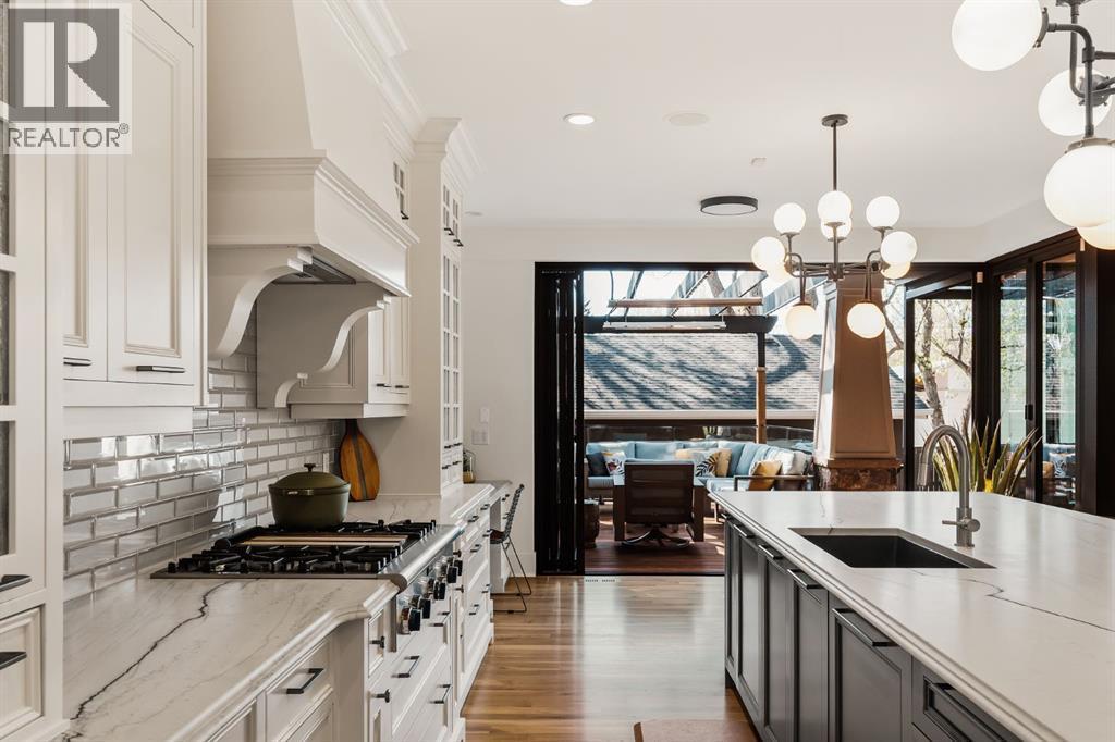 A Roxboro Masterpiece — Luxury Living in One of Calgary’s Most Prestigious Communities. Nestled on the coveted 3rd Street, this architectural masterpiece—originally custom built by McKinley Masters offers over 5,850 sq ft of meticulously developed space, crafted for those who value exceptional quality, timeless design, and seamless indoor-outdoor living. From the moment you step inside, you’ll sense the uncompromising attention to detail. Rich millwork, coffered ceilings, and designer lighting set the tone, while an open-concept layout makes entertaining effortless. The heart of the home is the spectacular main living area where the living room, dining space, and state-of-the-art kitchen flow together in perfect harmony. A custom NanaWall opens fully to reveal a west-facing outdoor sanctuary designed for year-round enjoyment. Featuring IPE Brazilian hardwood decking, overhead infrared heaters, a brand-new hot tub, wood-burning fireplace with nat gas assist, and motorized privacy screens, this outdoor space transforms with the seasons—whether you’re hosting summer soirées or cozy winter evenings by the fire. The chef’s kitchen is a true culinary playground, outfitted with high end appliances, dual ovens, two dishwashers, wine fridge, and a butler’s pantry complete with filtered water, a direct water line for your espresso machine, and hot water on demand. Whether preparing a gourmet meal or casual brunch, this kitchen performs with style and ease. Across from the kitchen, the family room invites you to unwind beside a charming gas fireplace, while the elegant formal living room offers a more refined space for conversation or post-dinner cocktails. The main level also features a distinguished front-facing office bathed in natural light, adorned with intricate millwork is perfect for working from home in comfort and style. Ascend to the second level and discover a luxurious primary retreat designed for total relaxation. A private lounge area, coffee/wine bar with dishw asher and filtered water, heated balcony, and a walk-in closet that rivals a boutique all lead to a truly spa-inspired ensuite with a steam shower, in-floor heating, and dual vanities. Two additional bedrooms, a full bath, and a flexible office/music room that could serve as a 4th bedroom complete the upper floor. The lower level is built for entertainment and wellness. A stunning custom bar with wine fridge and dishwasher takes center stage beside a one-of-a-kind wine cellar and cold room. Shoot pool, play shuffleboard (both included), or host game day gatherings in this stylish and functional space. A full home gym adds convenience, while a spacious guest suite provides comfort for visitors. Additional Features: fully finished, heated garage with epoxy floors includes two electric car chargers and storage. Lutron home automation throughout, Sonos sound throughout, dual A/C units and furnaces, steam humidifiers, Gemstone exterior lights, irrigation, and artificial turf/low maintenance landscaping. (id:6769)