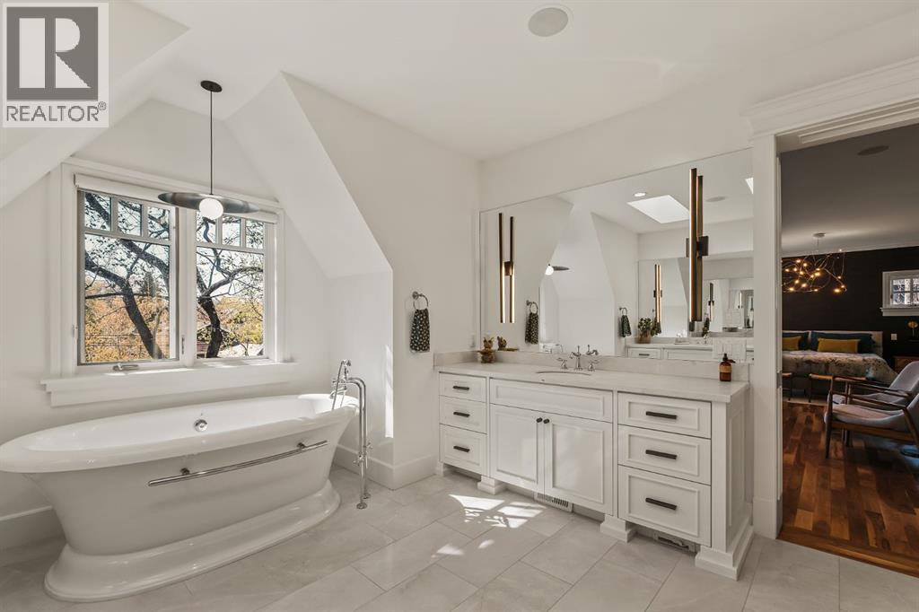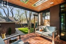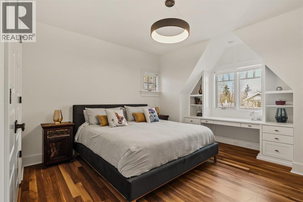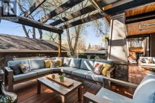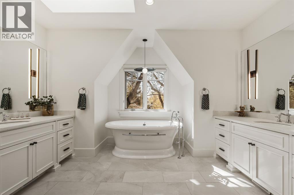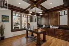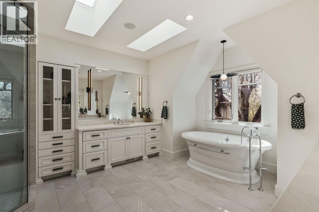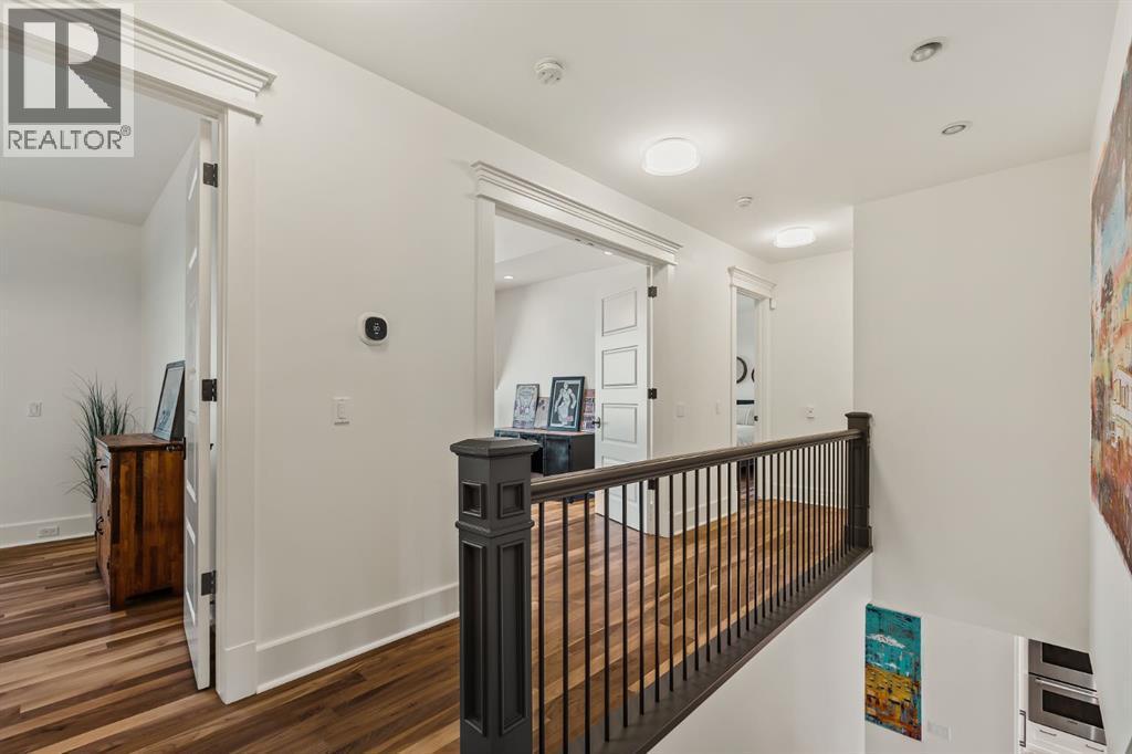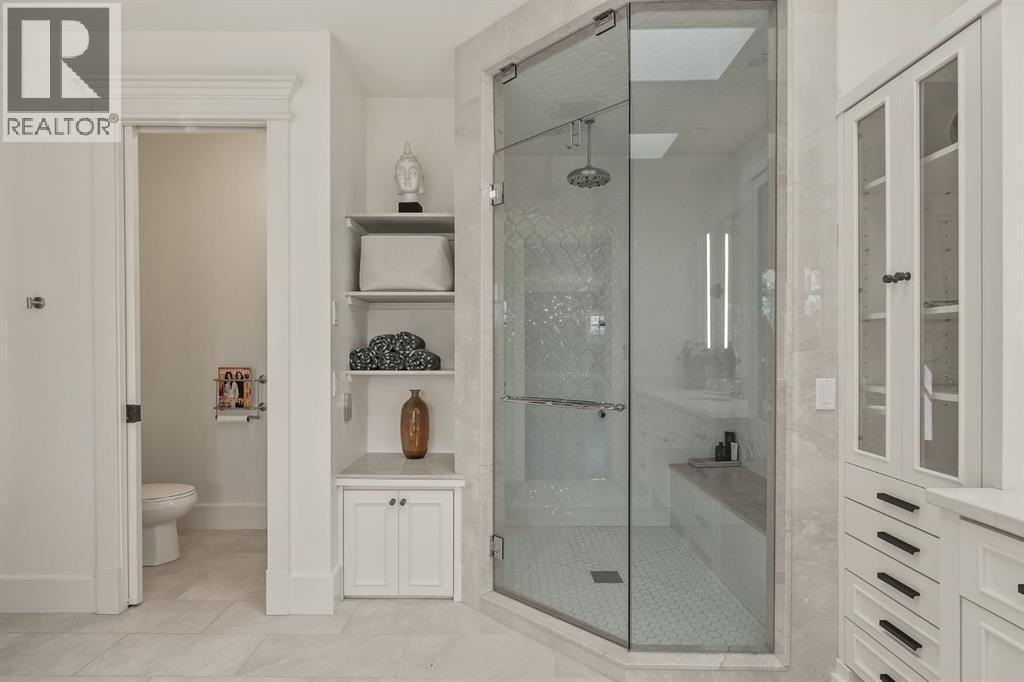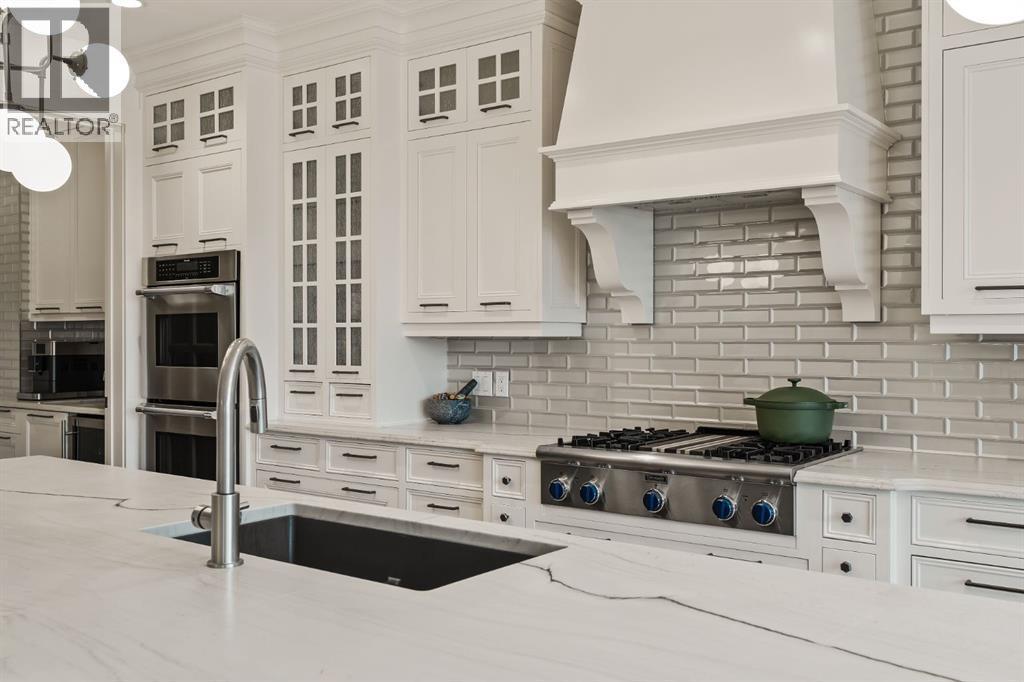 A Roxboro Masterpiece — Luxury Living in One of Calgary’s Most Prestigious Communities. Nestled on the coveted 3rd Street, this architectural masterpiece—originally custom built by McKinley Masters offers over 5,850 sq ft of meticulously developed space, crafted for those who value exceptional quality, timeless design, and seamless indoor-outdoor living. From the moment you step inside, you’ll sense the uncompromising attention to detail. Rich millwork, coffered ceilings, and designer lighting set the tone, while an open-concept layout makes entertaining effortless. The heart of the home is the spectacular main living area where the living room, dining space, and state-of-the-art kitchen flow together in perfect harmony. A custom NanaWall opens fully to reveal a west-facing outdoor sanctuary designed for year-round enjoyment. Featuring IPE Brazilian hardwood decking, overhead infrared heaters, a brand-new hot tub, wood-burning fireplace with nat gas assist, and motorized privacy screens, this outdoor space transforms with the seasons—whether you’re hosting summer soirées or cozy winter evenings by the fire. The chef’s kitchen is a true culinary playground, outfitted with high end appliances, dual ovens, two dishwashers, wine fridge, and a butler’s pantry complete with filtered water, a direct water line for your espresso machine, and hot water on demand. Whether preparing a gourmet meal or casual brunch, this kitchen performs with style and ease. Across from the kitchen, the family room invites you to unwind beside a charming gas fireplace, while the elegant formal living room offers a more refined space for conversation or post-dinner cocktails. The main level also features a distinguished front-facing office bathed in natural light, adorned with intricate millwork is perfect for working from home in comfort and style. Ascend to the second level and discover a luxurious primary retreat designed for total relaxation. A private lounge area, coffee/wine bar with dishw asher and filtered water, heated balcony, and a walk-in closet that rivals a boutique all lead to a truly spa-inspired ensuite with a steam shower, in-floor heating, and dual vanities. Two additional bedrooms, a full bath, and a flexible office/music room that could serve as a 4th bedroom complete the upper floor. The lower level is built for entertainment and wellness. A stunning custom bar with wine fridge and dishwasher takes center stage beside a one-of-a-kind wine cellar and cold room. Shoot pool, play shuffleboard (both included), or host game day gatherings in this stylish and functional space. A full home gym adds convenience, while a spacious guest suite provides comfort for visitors. Additional Features: fully finished, heated garage with epoxy floors includes two electric car chargers and storage. Lutron home automation throughout, Sonos sound throughout, dual A/C units and furnaces, steam humidifiers, Gemstone exterior lights, irrigation, and artificial turf/low maintenance landscaping. (id:6769)