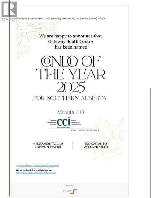 BEST PRICE IN THE BUILDING | TOP FLOOR | WEST FACING | CONCRETE BUILDING | AIR CONDIITIONING | Welcome to Gateway Southcentre which was just awarded 2025 CONDOMINIUM OF THE YEAR BY CCI! This 1 bedroom top floor unit has been thoughtfully prepped for sale with a FULLY REPAINTED walls, bedroom close sliding doors and NEW VINYL PLANK flooring throughout and has just been professionally cleaned. With a sunny west exposure this unit has a ton of natural light and with Air Conditioning, you get all the sunshine without the uncomfortable heat! If you value privacy and peace and quiet you'll love the fact that this is a concrete building which provides a greater reduction in noise transfer between the units. This building also has an incredible fitness facility, yoga room, guest suites and a beautiful courtyard with walking paths. Pet friendly with board approval. Immediate access to Macleod Trail and Canyon Meadows LRT right down the road! 1 Titled parking stall with a lockable storage cage can be found in the heated underground parkade. This is (id:6769)