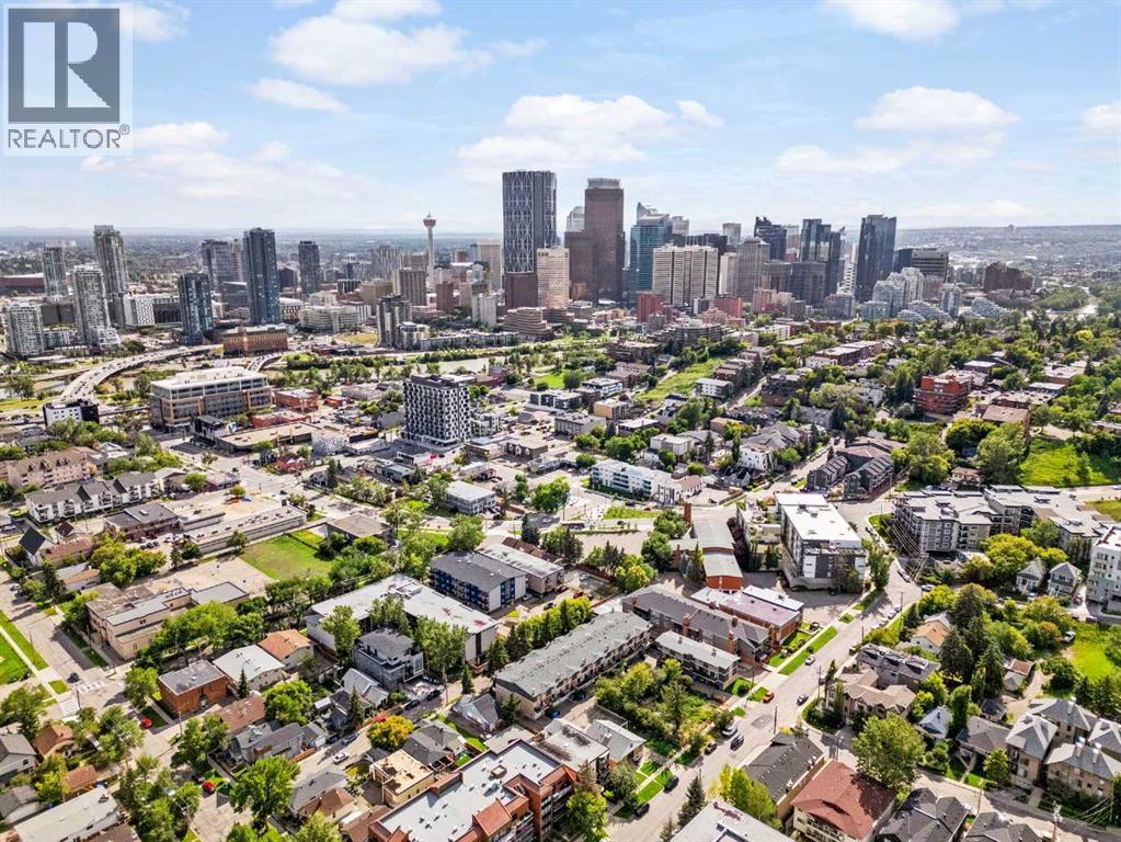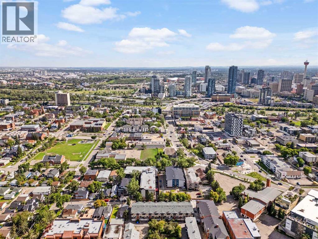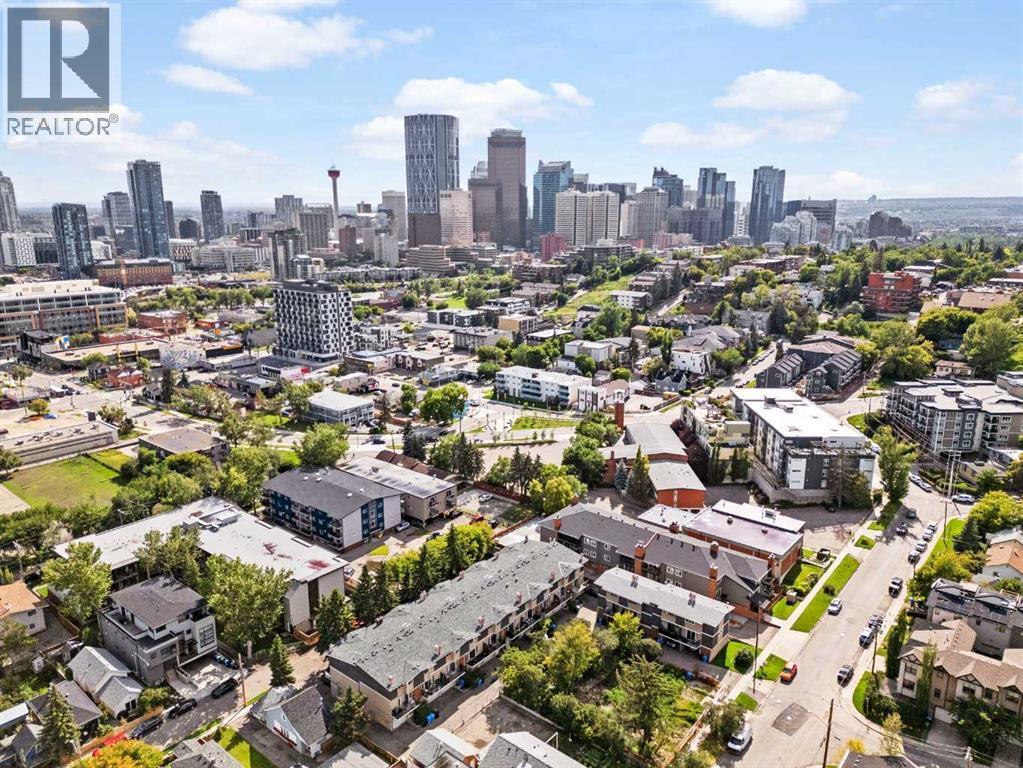 Opportunity knocks! Priced to sell. For the first-time buyer or investor this three-level, 1,103 sq. ft. townhouse with city views in the hip Bridgeland/Riverside community deserves your attention. With parking pad, plus single attached garage, and a driveway for a second parking spot. 2 bedrooms plus den, and 1.5 baths, this is a prime location especially for those working in downtown Calgary. Entering at the main floor level the foyer leads to the utility room, laundry room and storage area. The stairs take you to the superbly lit first floor which encompasses an open-area kitchen and living room, both with warm engineered hardwood flooring. South-facing patio doors in the living room provide access to a railed deck from which to enjoy your morning coffee plus keep tabs on the surrounding city. The living room also boasts a stone surround corner woodburning fireplace. The kitchen has updated modern white cabinets with glass doors, a double corner sink with a center drainboard, stainless appliances and a corner pantry for added storage space. A tiled 2-pc. bath completes this level. The second level presents with a larger primary and two secondary bedrooms which share the tiled 4-pc. bath. Again, the location here is key. Close to Calgary’s business centre and vibrant cultural core; proximity to Edmonton Trail, Centre Street and Memorial Drive; shopping, restaurants and bars on Bridgeland’s energetic 1st Avenue; grocery stores on 16th Avenue (Coop & Safeway); Mount Pleasant Tennis club; numerous churches and transit. Land is owned (not leased). Very reasonable condo fees. Make that call today and arrange for a viewing. Don’t let this one get away! (id:6769)