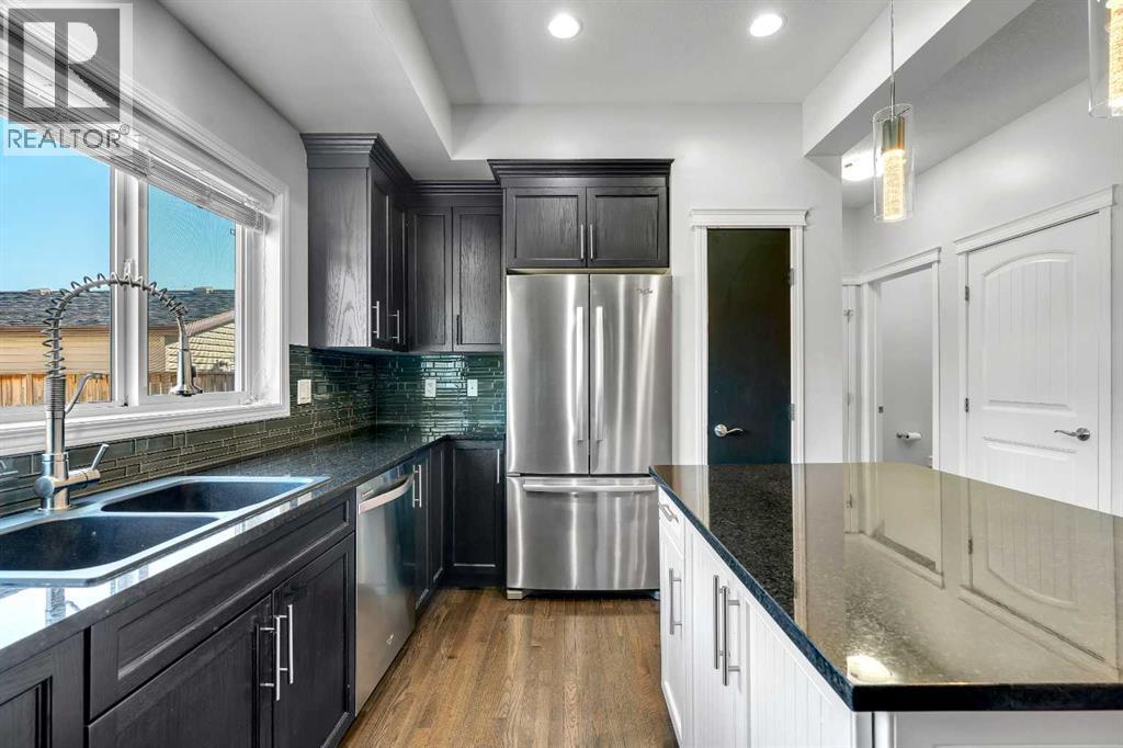 A story book Copperfield setting with beautiful front veranda and mature trees and facing across the street to a green space…Step into this bright, beautifully maintained home and immediately feel welcomed by a functional front foyer with storage that keeps the entry neat and organized. The open-concept living room invites you in with rich hardwood floors and a built-in gas fireplace — a literal warm welcome. Natural light pours through the windows, creating an airy feel that continues throughout the home. The kitchen is designed for both style and practicality, featuring granite countertops, stainless steel appliances, a central island with seating, and full-height cabinetry with elegant crown molding. An expansive dining area easily fits a full table for gatherings and family dinners. Just off the kitchen, a hallway leads to a separate mudroom with built-in hooks and convenient main floor powder room. Uniquely positioned near the stairs is a private office or flex space, ideal for working from home. Upstairs, you’ll find three spacious bedrooms, including a primary suite with soaring vaulted ceilings, a generous walk-in closet, and a luxurious 5-piece ensuite complete with double vanities, granite counters, a walk-in shower, and a deep soaker tub. The upper level also includes a full bathroom, laundry room, and two additional bedrooms with ample closet space. Comfort is key with central air conditioning throughout the home. A newer double detached garage makes this home just about perfect and ready to move in.Located directly across from a large green space with a playground and picnic area, this home is perfect for families. The Copperfield community offers scenic walking paths, access to the tranquil wetlands, multiple schools, and quick access to major roads—making it a vibrant and convenient place to call home. With other SE Calgary ameneties close by with shoppes at 130th or a little south were you find Seton district with theatres, dining, Brookfield YMCA and South Health Campus Hospital. There is a reason why people love living in SE Calgary! (id:6769)