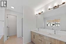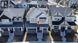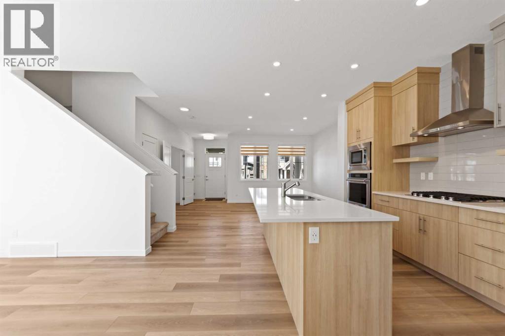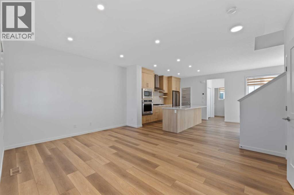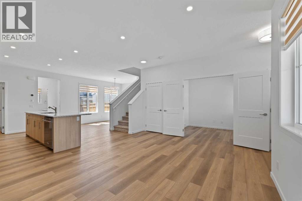 This beautifully designed two-storey home is located in the vibrant and growing community of Alpine Park. Bright windows throughout the home provide an abundance of natural light, enhancing the welcoming atmosphere. The main floor features an open layout with luxury vinyl plank flooring and a stylish kitchen complete with quartz countertops, stainless steel appliances, a gas cooktop, and a built-in wall oven and microwave. The spacious living room and dining area flow seamlessly together, perfect for everyday living or entertaining guests. A separate office or den with closing doors and a large window offers a quiet and private workspace. The main floor also includes a large walk-in pantry, a two-piece powder room, and direct access to the backyard. Upstairs, the primary bedroom offers a peaceful retreat with a spacious layout and a stunning ensuite featuring dual sinks, a standalone shower, and a soaker tub. Two additional bedrooms and a well-appointed four-piece bathroom complete the upper level, along with a central family room ideal for relaxing or watching TV. The convenient upper-floor laundry room adds to the home’s thoughtful design. The basement remains undeveloped, providing an opportunity to create additional living space suited to your needs. The backyard includes a concrete block patio, a fenced yard, and a double detached garage with access from a paved back lane. A charming front porch adds curb appeal and is perfect for enjoying warm summer days. Alpine Park is a dynamic new community offering walking paths, parks, ponds, and future amenities. With easy access to Stoney Trail and close proximity to the south Costco, restaurants, and shopping, this home offers both comfort and convenience in a flourishing neighbourhood. (id:6769)