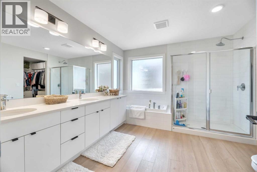 Welcome to your dream home in the heart of Coopers Crossing—Airdrie’s most sought-after, award-winning community with over 44 acres of parks, winding trails, and wide-open green space. With six nearby schools and Coopers Town Promenade just steps away, everything you need is right around the corner.Sitting proudly on a huge pie-shaped lot, this beautifully finished two-storey gem offers over 3,000 sq. ft. of stylish, functional living space. Perfect for big families, blended families, or “we-just-need-more-space” families!Upstairs, you'll find FOUR spacious bedrooms—including a super-flexible bonus room turned bedroom with a removable wall (office, playroom, teen retreat? You choose!).The kitchen is a total showstopper: quartz counters, stainless steel appliances (hello gas stove!), a walk-through pantry big enough to dance in, and a sunny dining area overlooking your fully landscaped backyard. Fire up the BBQ—there’s a gas line waiting on the deck!Need more room to spread out? The fully finished walkout basement is ready for whatever you imagine—home theatre, home gym, games room, or even multi-gen living. Bonus: the insulated ceiling keeps noise down and comfort up.Upstairs, the primary suite is basically a spa retreat: huge walk-in closet, dual sinks, a dreamy soaker tub, and separate shower. And yes—upstairs laundry with a built-in sink makes laundry day way easier.Other features worth bragging about? Cozy upgraded carpet | Main floor flex room (home office, anyone?) | Solar panels (hello energy savings!) | Oversized garage with MyQ smart systemCommuting to Calgary? Easy. Need shops, schools, or trails? All close by. Want it all in one place? You just found it.Don’t wait—homes like this don’t come around often in Coopers. Come see it today! (id:6769)