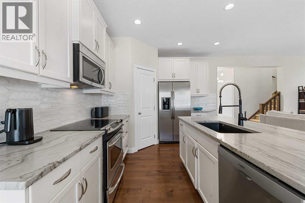 OPEN HOUSE SUNDAY SEPT 14th 2-5PM // Welcome to 105 Elgin Meadows Circle, a Beautiful 3 Bed, 2.5 Bath home with over 2000 sqft of MOVE IN READY space, a manicured lot and a mountain of upgrades! Step inside the front door to the spacious open concept that is flooded with natural light. The large and bright flex room offers the perfect space for a family room or a sunny home office. Hardwood floors throughout the kitchen, dining and living room area showcasing the ideal layout for entertaining or any busy family. The stylish updated kitchen (2023) comes with a custom Italian Quartz counter package, updated white cabinetry and backsplash, Corner pantry, new kitchen faucet and under-mount sink plus a quiet Bosch dishwasher (2023). The main floor ceiling has been upgraded to a knockdown finish and a Cartwright lighting package added throughout the home (2023). The Living room features an oversized picture window and a retiled gas fireplace (2023), plus custom European Drapery ceiling tracks installed in the living and dining area with new blinds on the main and upper floor (2024). The dining space has Large corner windows and connects to the back mudroom with access to the private deck and fenced yard. A dedicated main floor laundry room and a separate 1/2 bathroom for convenience. New Carpet/Underlay and fresh paint throughout the house (2025). New Cedar front porch with a Natural stone wrap (2025). Furnace upgraded with a commercial grade air filter and UV Light (2024), New High efficiency Hot Water Tank and Water Softener (2025) and for the hot summer days a new Lennox 4-ton Central Air Conditioner (2024). Upstairs you'll find three spacious bedrooms, full 4pc bath and an extra bonus room that can be used as a home office or TV flex room with a Juliet balcony. The large primary has an additional 4pc ensuite with a walk-in closet. Downstairs the partially finished basement is insulated and ready for any project. In the back you will find a double detached garage with an additional side trailer parking pad and gate. The back deck is ready for your BBQ hangouts or relaxing evenings in the backyard. Located in the highly sought-after community of Mckenzie Towne, you have easy access to the splash park, winter skating rink, playgrounds, schools, and transit. Mere steps away from the Environmental Reserve with walking/biking paths and ponds. Plus, you’re just minutes from High Street with many shops, grocery stores, restaurants and amenities. With a pile of fantastic features and new upgrades this home is truly MOVE IN READY with an unbeatable location. Contact a realtor now to view an incredible opportunity you won’t want to miss! (id:6769)