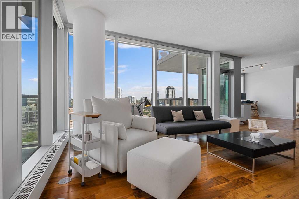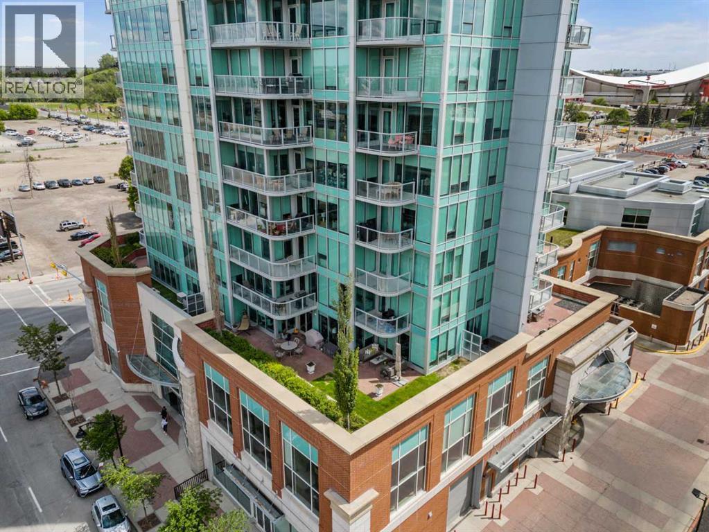 Welcome to Arriva — where refined urban living meets one of Calgary’s most exciting new developments. Located in the heart of the Beltline, this expansive 1193 sq. ft. corner unit offers 2 bedrooms, 2 bathrooms, titled underground parking, and stunning skyline views. Situated directly beside the future Calgary Event Centre, this is a rare opportunity to live next to the city’s most anticipated entertainment district. Step into an open-concept layout with soaring 9’ ceilings, central air conditioning, and approximately 19 feet of floor-to-ceiling windows that frame panoramic views from the Calgary Tower to East Village. Enjoy summer evenings on your private balcony, complete with a gas line for BBQs. The kitchen is a chef’s dream, featuring a premium Miele appliance package, including a 5-burner gas cooktop, stone countertops, a large peninsula island, and a spacious pantry. A generously sized dining area flows seamlessly into the bright and airy living space — perfect for entertaining. The primary bedroom retreat includes its own private balcony, a custom walkthrough closet, and a spa-inspired 4-piece ensuite with separate glass shower and deep soaker tub. The second bedroom also offers a custom walkthrough closet with direct access to a cheater ensuite — ideal for guests or a home office. Additional features include a titled underground parking stall, an assigned storage locker, and access to Arriva’s premium amenities — including full-time concierge/security, an elegant lobby and premium social room with a beautiful outdoor patio. This is downtown living at its finest, with unbeatable access to transit, dining, entertainment, the Stampede Grounds, and the upcoming arena. (id:6769)