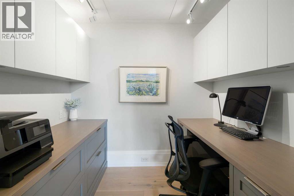 Welcome to Unit 302 at the Residences of King Edward — a rare opportunity to own a top-floor suite in one of Calgary’s most exclusive boutique buildings. Designed and built by Rockwood Custom Homes, this residence offers nearly 2,000 sq ft of refined living space with breathtaking, unobstructed views of downtown Calgary from every room. Set on a quiet street in South Calgary, just steps from cSPACE — the city’s leading arts and cultural hub — and within walking distance of all the amenities in vibrant Marda Loop, this location is as convenient as it is inspiring. With bike paths, off-leash dog parks, and green spaces just outside your door, you’ll enjoy the perfect blend of inner-city energy and community charm.An oak-accented foyer welcomes you into a spacious, open-concept floor plan that blends sophisticated design with everyday comfort. The chef’s kitchen is a true showpiece, featuring integrated Wolf, Sub-Zero, and Miele appliances, a full-height dual-temperature wine fridge, and custom cabinetry for seamless storage and functionality. Whether you're hosting guests or enjoying a quiet evening in, the space flows effortlessly into the dining and living areas and onto the generous east-facing terrace. With folding glass doors and radiant overhead heaters, the terrace extends your living space and allows for year-round enjoyment of Calgary’s stunning skyline. The primary suite is a luxurious retreat, offering private terrace access, a spacious dressing room with custom built-ins, and a spa-inspired ensuite featuring a freestanding tub, multi-head shower, dual vanity, and private water closet. A second bedroom with its own full ensuite and ample built-in storage provides a secluded haven for guests or family. There’s also a well-appointed home office, a powder room, and a flex room with a discreet wall bed — ideal as a third bedroom, fitness area, or creative studio. Additional conveniences include a fully equipped laundry room, central air conditioning, and custo m-built storage solutions throughout. This home comes with two titled underground parking stalls conveniently located near the elevator, as well as an oversized private storage room. Residents also enjoy access to a secure, heated parkade featuring a bike repair station, common bike storage, and a dog/bike wash area. From the architectural craftsmanship to the unbeatable location and captivating views, this is more than just a home — it’s an elevated lifestyle. Discover the perfect balance of luxury, comfort, and convenience in one of Calgary’s most inspired communities. (id:6769)