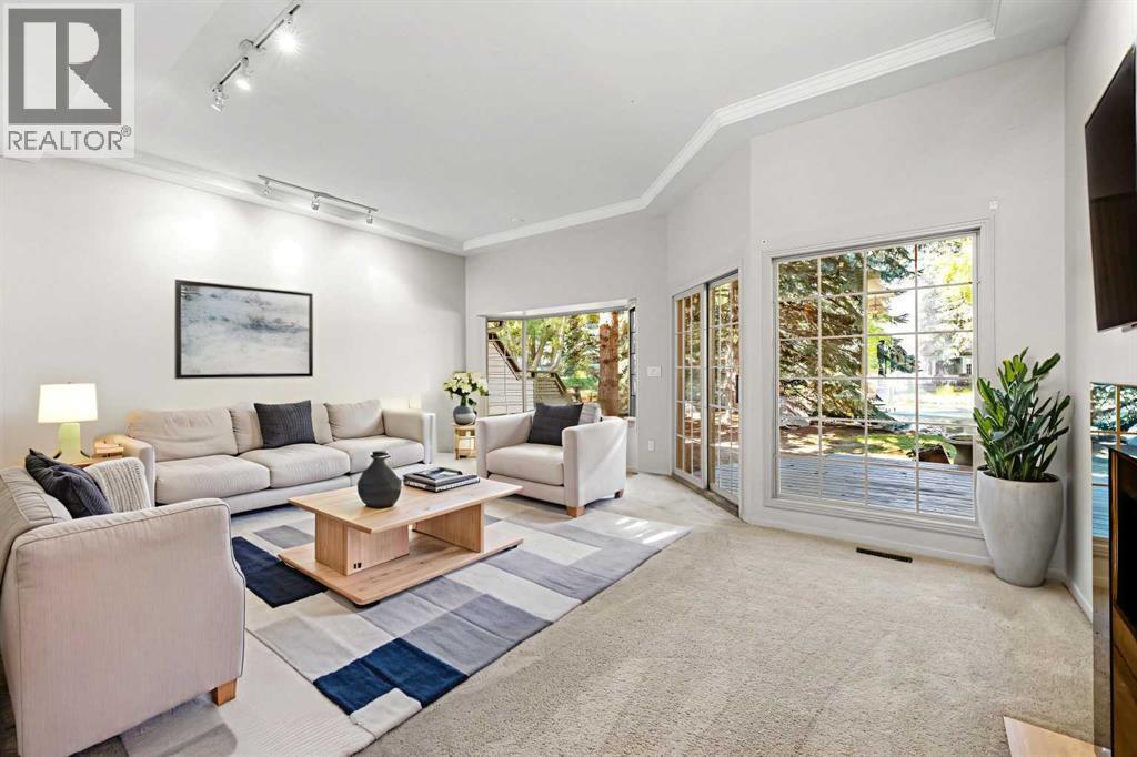 Welcome to this thoughtfully designed home that combines both comfort and tranquility, in one of Calgary’s most sought-after communities. This beautiful residence offers generous living spaces, elegant finishes, and an unbeatable location, backing onto a serene oasis. When you enter the front door, the spacious foyer sets a welcoming tone, featuring a grand staircase up to the main living area. The home is bright and open, with high ceilings and expansive windows that fill the interior with natural light, while offering beautiful views of greenery, trees and a pond. The spacious great room is centered around the feature fireplace, creating a perfect space for both relaxation and gathering. The adjacent dining area is ideal for entertaining and hosting, as it includes a built-in bar. The kitchen has been tastefully updated with classic white cabinetry, new stainless steel fridge and ample counter and cabinet space. There is a cozy breakfast nook with large windows making the kitchen area both stylish and functional. From here, a beautifully crafted wooden staircase leads upstairs to a versatile den—an ideal space for a home office, library, or media room. There is a balcony directly off the den, perfect for enjoying morning coffees and sunrises. The upper floor features two well-sized bedrooms, offering flexibility for family, guests or an additional workspace.There is a full four-piece bathroom with a skylight to bring in additional natural light, enhancing the bright and airy atmosphere. The Primary Bedroom is a comfortable retreat, complete with its own ensuite bathroom that includes a huge soaker tub - perfect for unwinding at the end of the day. From the main level of the home, you can step out onto a private wooden deck that overlooks the stunning pond and surrounding landscape. Mature trees, shrubs, and seasonal flowers make the backyard feel like a private garden sanctuary. The complex itself is beautifully maintained, offering a peaceful and secure environ ment in a prime Varsity location. A heated, oversized, attached single garage includes plenty of storage options, providing both convenience and functionality throughout the seasons. Located in the heart of Varsity, this home offers unparalleled access to a wide range of amenities. The University of Calgary, Alberta Children's Hospital and Market Mall are just minutes away, along with top-rated schools and excellent transit connections. Varsity is known for its mature tree-lined streets, well-kept green spaces, and strong community atmosphere, making it one of the most desirable neighbourhoods in the city. Take advantage of your opportunity to see this incredible property in person—book your showing today! Be sure to check out the floorplans and 3D tour for a closer look at this special property. (id:6769)