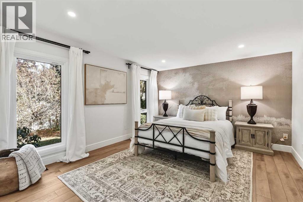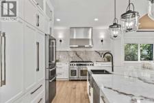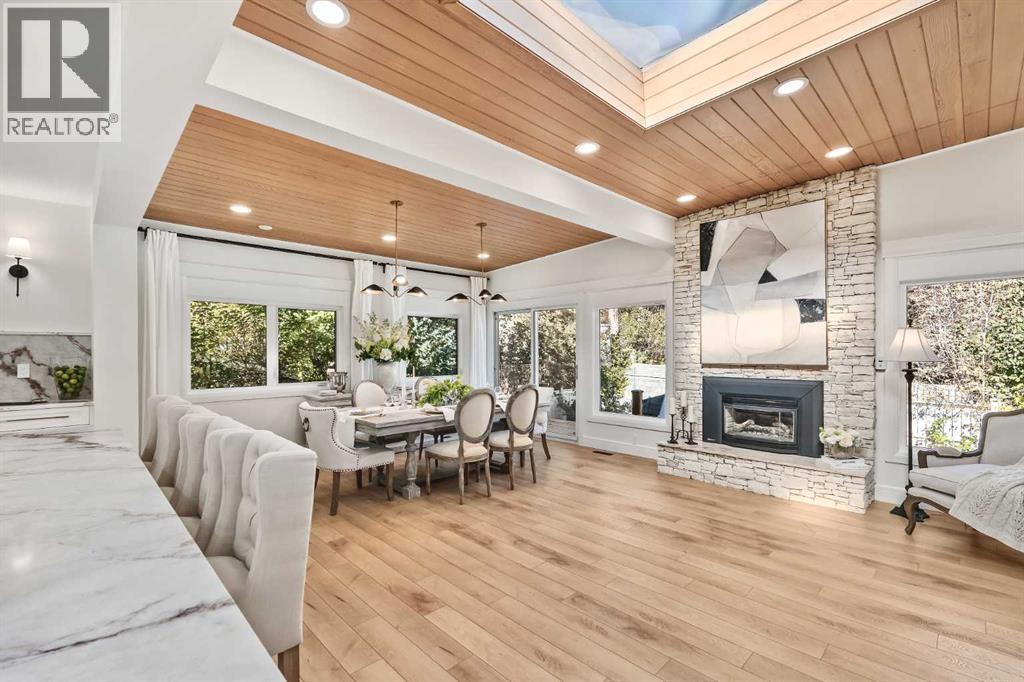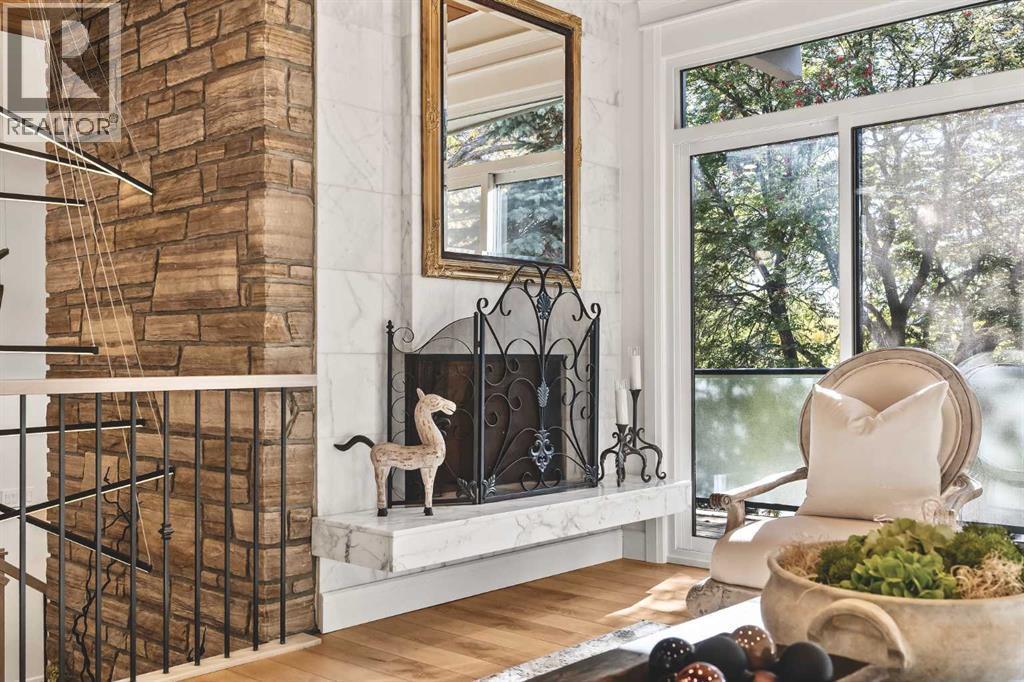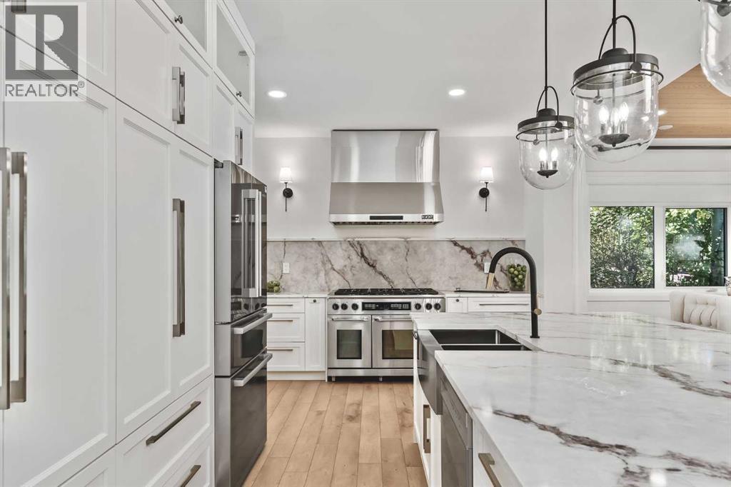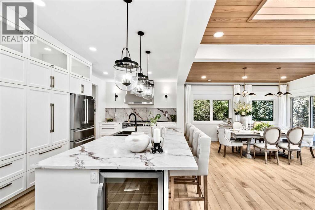 A rare opportunity to live in luxury in this modernized bi-level bungalow in prestigious NW community of University Heights. This home offers nearly 3,300 sq. ft. of living space with abundant natural light, including almost 2,000 sq. ft. on the open-concept main floor featuring an ensuite master bedroom, 2.5 bathrooms, family room, formal dining room, and kitchen all under high ceilings. The gourmet kitchen boasts quartz countertops, a six-burner Dacor gas range, Bosch refrigerator, solid wood cabinetry, and a built-in wine fridge—perfect for entertaining. The primary suite is a private retreat with a walk-in closet and spa-inspired 5-piece ensuite, complete with dual sinks, soaker tub, and a walk-in shower. Cozy up by one of the two main-floor fireplaces (gas + wood-burning).The Lower Level is a light-filled space with all large windows above grade, a fourth bedroom, a full bathroom, a wine cellar, and a third fireplace. The flexible layout is ideal for a home gym, movie theatre, or children’s play area.The landscaped yard is a private oasis with mature trees, apple tree, raspberries, and blueberries. This home has undergone comprehensive renovations with brand new windows, doors, electrical panel, modern lighting, and an added second furnace. The tandem 2-car garage has a rough-in EV charger. Development and building permits for an additional single-car garage off the back lane are included.?Enjoy access to Calgary’s top amenities, just minutes from the University of Calgary, Westmount Charter School, Foothills Hospital, the new Cancer Centre, Alberta Children’s Hospital, and the University District. This move-in ready home is truly a gem in a highly sought-after neighborhood! (id:6769)