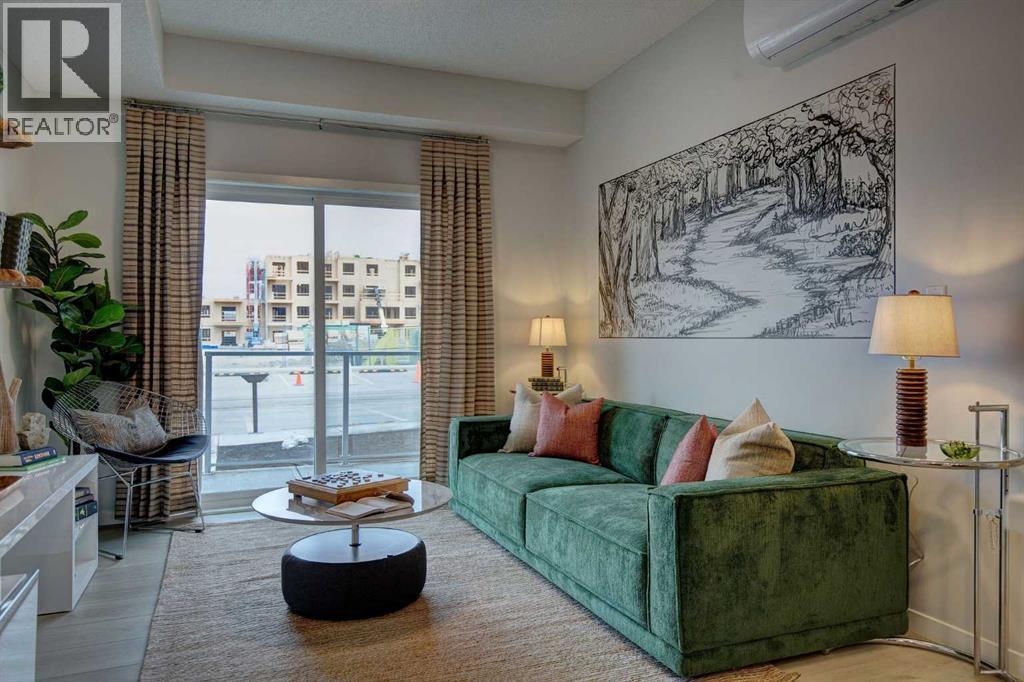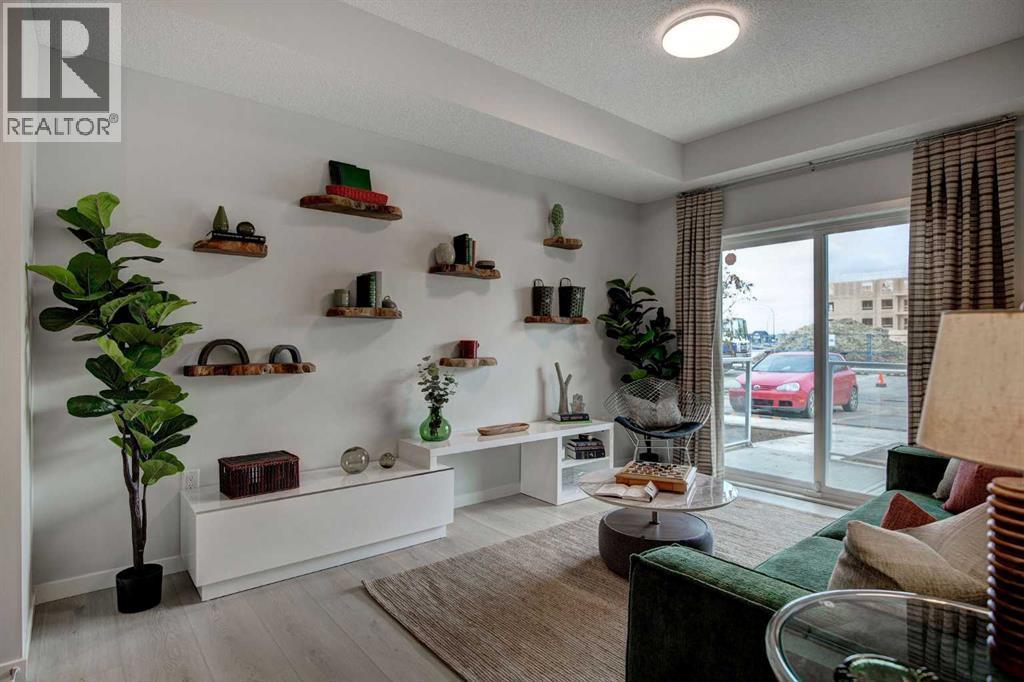 INTRODUCING MINTOFT PLACE ON BLACKFOOT TRAIL, IN BEAUTIFUL CENTRAL SE, CALGARY. BUILT BY CEDARGLEN LIVING, WINNER OF THE CustomerInsight BUILDER OF CHOICE AWARD, 5 YEARS RUNNING! BRAND NEW "B" unit with high-spec features. You will feel right at home in this well thought-out, 575 RMS sq.ft. (629 sq.ft. builder size). 1 bed, 1 bath home with open plan, 9' ceilings, LVP flooring throughout common areas, carpets in the bedrooms and closets, Low E triple glazed windows, BBQ gas line on the patio, Fresh Air System (ERV), and so much more. The kitchen is spectacular with full height cabinets, quartz counters, undermount sink, rough-in water line to the fridge and S/S appliances. The island is extensive with built in flush breakfast bar, and built in dining area, which transitions into the living area, perfect for entertaining. The spacious bedroom has a large bright window (triple pane windows) and sizeable closet walk-in closet. Right beside your bedroom is a 4pc bath with quartz counters, and undermount sink. Nearby, the spacious laundry/storage room is a must see (washer & dryer included). Highlights include: Hardie board siding, designer lighting package, sound reducing membrane to reduce sound transmission between floors, clear glass railing to balconies and 1 titled underground parking stall included (storage lockers available for purchase). A once in a lifetime community off Blackfoot Trail and Southland Drive in Calgary. Nature lovers will appreciate that Sue Higgins park and Carburn Park are a short stroll away. Deerfoot Meadows shopping centre, anchored by Costco, Ikea and Walmart, along with many other amazing shops and restaurants are located in very close proximity. PET FRIENDLY COMPLEX, PRE-CONSTRUCTION OPPORTUNITY, PURCHASER CAN STILL MAKE SELECTIONS, and PHOTOS ARE OF A DIFFERENT SHOW SUITE FOR REFERENCE ONLY, FINISHING'S/PLAN WILL DIFFER. ESTIMATED COMPLETION RANGE IS APRIL 2027-DECEMBER 2028. VISIT THE SHOW SUITE OR CALL TODAY FOR MORE INFO. (id:6769)