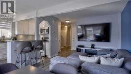 Truly a chef’s delight! Featuring sleek quartz countertops, gleaming white cabinetry, and an eat-up breakfast bar perfect for family gatherings. Open concept is seamless to the living room, with plenty of room for relaxing. As an end unit, you’ll enjoy extra windows that flood the home with natural light. Entry way hosts the convenient half bath plus linen closet, and a jacket closet. Built in desk for your home office, at the top of the stairs. 2 spare bedrooms upstairs, one with extra high ceiling and would make a great bonus room! Primary bedroom is great size, with a double closet. The updated full bathroom boasts double sinks, dual mirrors, and modern finishes. Luxury vinyl plank throughout this home, and NO CARPET, for those with allergies. Versatile Rec room is a great size, or could be converted to another bedroom, if you need. Good sized windows in the lower level allow a ton of natural light in. 3 pce bath with your stand up shower. Plus, there's ample storage to keep everything organized. Custom window shutters on windows in this home. Single attached garage, plus parking pad out front. Visitor parking is conveniently located just steps away. Front and back deck are maintenance free for easy outdoor living. (id:6769)