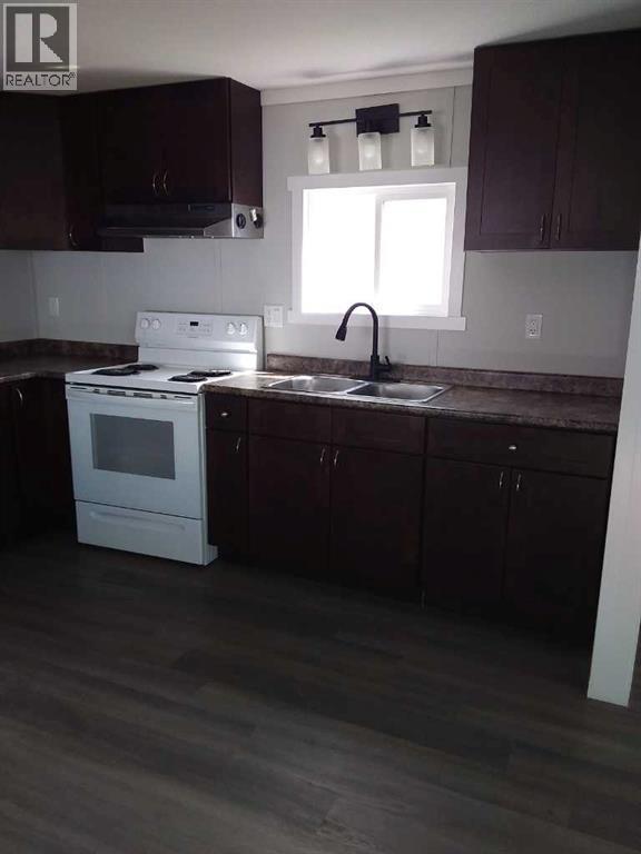 You can own this charming home for less than $20,000 down, with approved financing by Cove Homes. Priced right and available immediately! The exterior is crowned with a covered porch in front, ready for a couple of chairs and a side table. This leads into a entrance / mud room and lovely kitchen with updated, espresso cabinets with brushed nickel hardware. The fridge and stove are included. There is newer vinyl flooring, fresh, modern paint and white trim throughout. The primary bedroom features a large, double closet. The upgraded 4 piece bathroom has a modern cabinet & sink plus ceramic tile tube surround that needs to be seen to be appreciated. Added to the home is a 12 ft. by 6 ft. separate laundry / storage room with an exit to the back yard. This home has vinyl windows, siding and skirt plus a steel roof – all in great shape. The yard is a bit overgrown but waiting for your person touch. This unit is located a short distance to the clubhouse which features a community gathering area with kitchen, a modern exercise room, an 8-ball pool table and games room plus common area playground and bbq area. Calgary Village is a quiet, family friendly community. (id:6769)