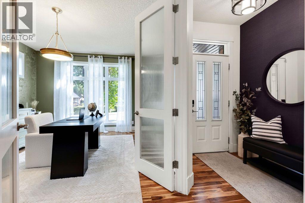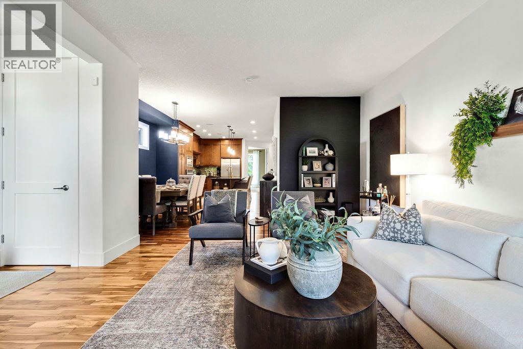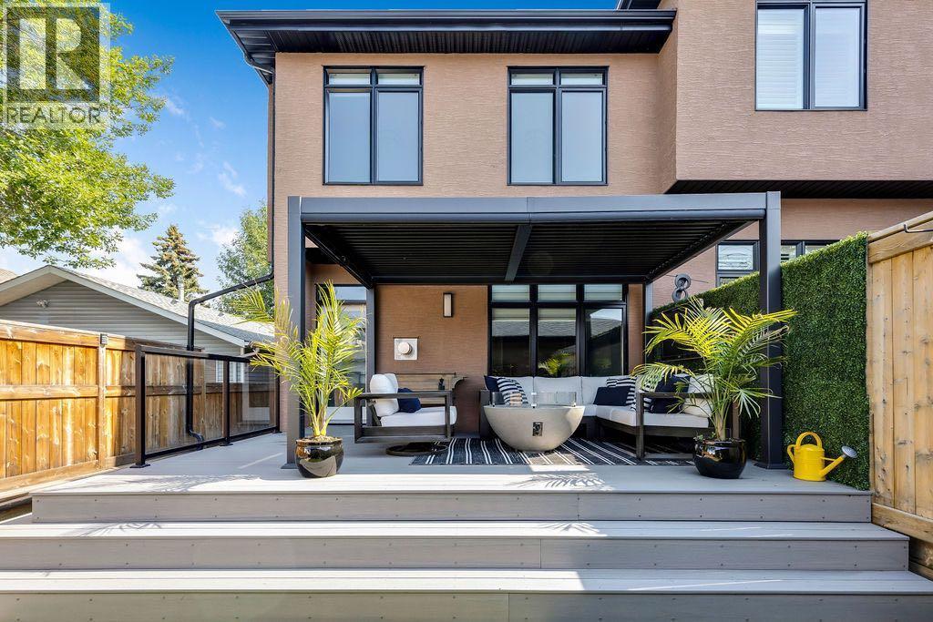 Welcome to this stylish inner city home in the highly desirable community of Killarney! Offering 3,182 sqft of developed living space, this custom build spared no expense. From the lower level to the top floor, enjoy 9 ft ceilings, dual climate controls with in-floor heating, and a smart home system featuring MYQ, SENSI, and in ceiling speakers for SONOS automation on every level.Off the front entry sits a custom built office designed by the Koehn Design Team, complete with French doors for privacy and shaded by the beautiful mature oak tree out front. The modern chef’s kitchen boasts custom cabinetry, quartz countertops, a large island with seating, and stainless steel appliances, opening onto a spacious dining area and a cozy living room with a gas fireplace and updated tile surround.Step outside to one of the finest outdoor living spaces you’ll find. Trex decking, a sun soaked west facing backyard, and lush gardens enhanced by underground sprinklers. Featuring a gravelled dog and double garage with dual EV chargers on a paved back lane.Upstairs, you’ll find 3 spacious bedrooms including a primary retreat with spa-inspired ensuite and walk-in closet, plus upper-level laundry and skylights that flood the home with natural light. The fully finished basement includes a large rec room, wet bar, full bath, and a flex/guest room currently set up as a home gym.Additional highlights include - Open to below staircase, Hot Water on Demand, Acacia Hardwood floors, new paint and carpets (2021), Air conditioning - perfect for Calgary summers, and incredible curb appeal on a quiet tree lined street. All this just minutes from downtown, Marda Loop, schools, parks, and transit.A must-see home in one of Calgary’s most sought after neighbourhoods! (id:6769)