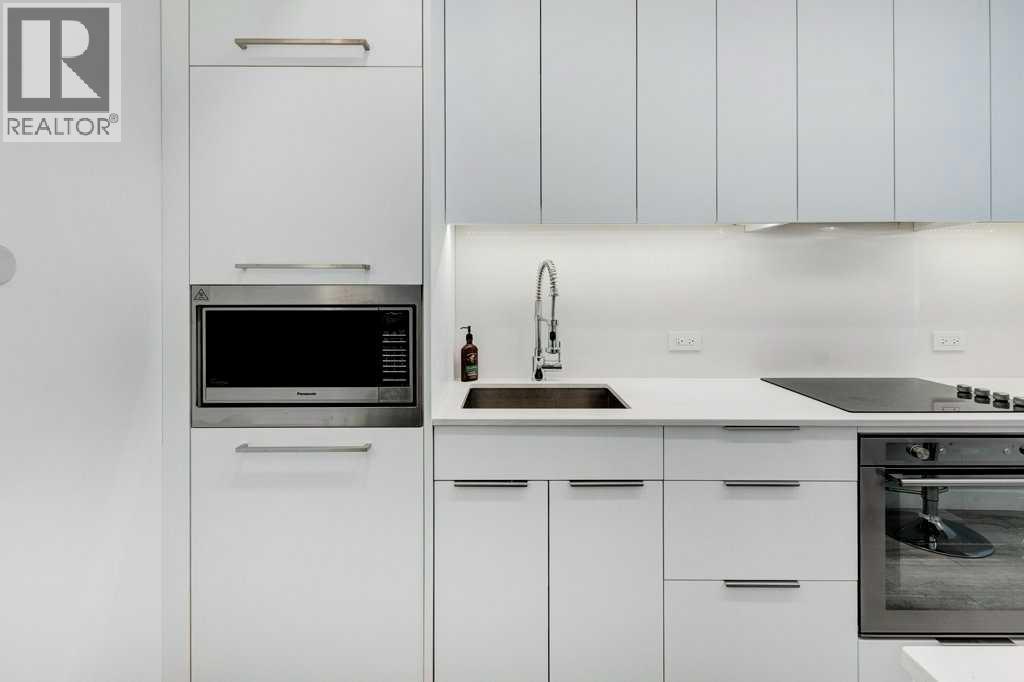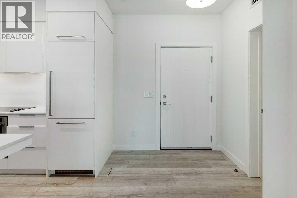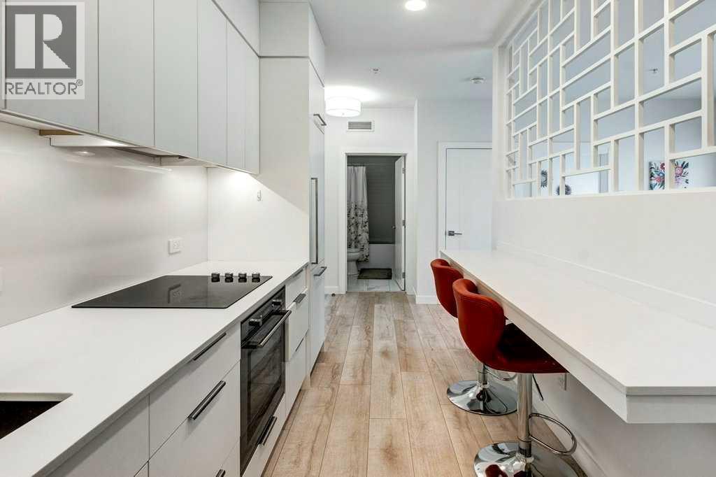 Welcome to a place in University District - award winning and mindfully made urban community that combines residential, retail, office, shopping, dining and entertainment. This is a modern and sophisticated 1 bedroom, 1 bath condo with titled parking space and lovely courtyard views. The family room is spacious enough for hosting togethers with family and friends and is a great place to unwind and watch a movie or see your team play games. There is enough space in this room for a desk and has glass sliding doors to the large outdoor deck with courtyard views. The spacious kitchen showcases quartz counters, sleek ceiling height, an integrated panel covered refrigerator and a premium energy saving stainless steel appliance package. The convenient breakfast bar is located beside the privacy panel separating the kitchen and the family room. Space saving barn doors separate the living room from the generously sized primary bedroom. The 4-piece bathroom is highlighted with matching quartz counters. Additional upgrades include 9’ ceilings, in-suite laundry, high grade wide plank flooring, built in smoke detectors, in-suite sprinklers, a security system and more. There is a titled underground and heated parking stall for convenience. Located only a few steps away from the hub of University District is retail main street with popular retailers like Monogram Coffee, Five Guys Burgers, Village Ice Cream, Canadian Brewhouse, OEB Breakfast, Cineplex Theatre, Save on Foods, YYC Cycle and more! Surrounded by parks, bike trails, easy access to the University of Calgary, Alberta Children's Hospital, Foothills Hospital, Market Mall, City Center, and Bow River Path systems. Study, shop, sip, sweat, get social - this place has something for everyone. Check the virtual tour and visit this amazing place! (id:6769)