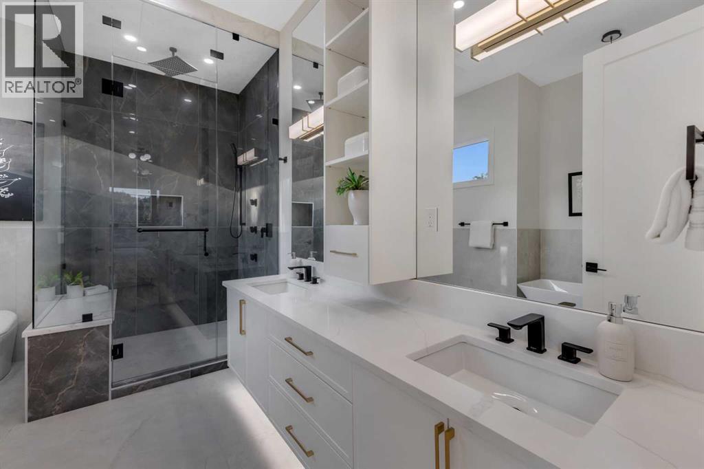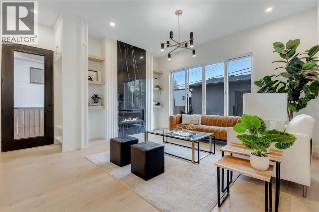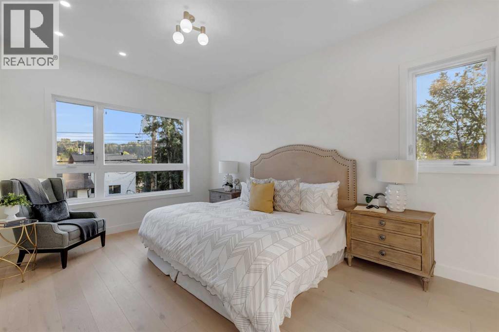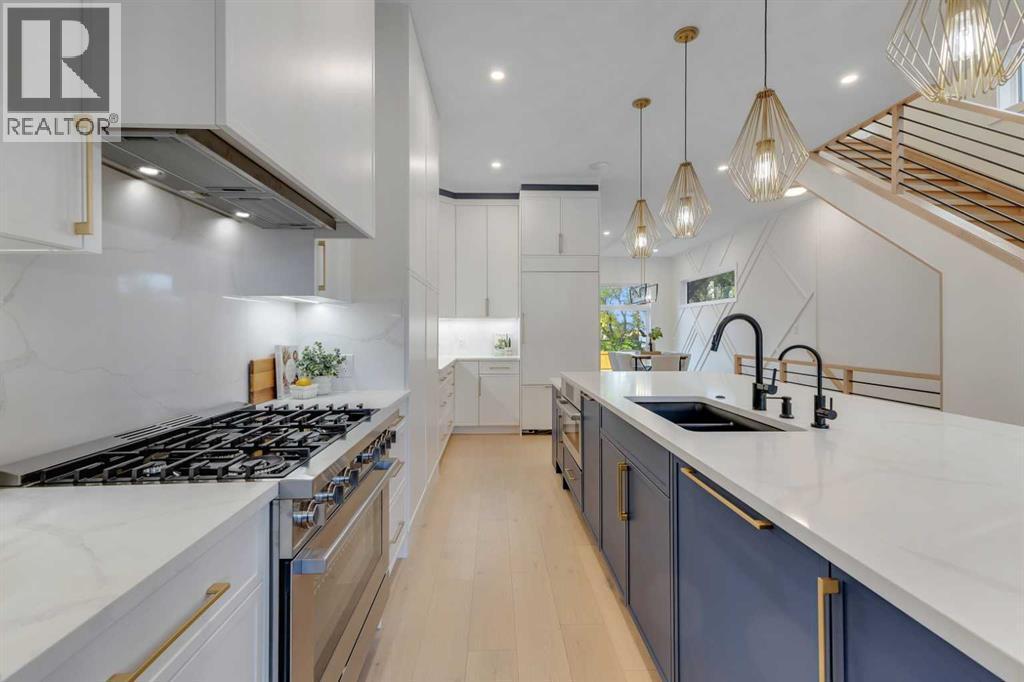 Step into unparalleled modern luxury with this brand-new DETACHED masterpiece in Parkdale! From the moment you approach, the striking 2-storey architecture and elegant brick, stucco, and wood facade command attention. Inside, the home unfolds across upgraded living spaces with a fully finished basement, home gym space, and open concept floorplan! Starting on the main floor, soaring 10-ft ceilings and expansive open spaces flow effortlessly from one end to the other. The front dining area enjoys a feature wall with transom window and designer lighting. The central kitchen is the perfect balance of clean elegance with thoughtful pops of contrast, with a white and navy colour palette you’ll fall in love with. Full-height white cabinetry, quartz countertops, a two-tier waterfall island, high-end appliances (including a built-in Jennair fridge and Bosch gas range), designer hardware and lighting, and thoughtful touches like under-cabinet lighting and a reverse-osmosis water system make this space a step above the rest. The living room glows with warmth, anchored by a custom Napoleon gas fireplace with seamless tilework and a huge sliding glass door that opens onto the SOUTH-FACING BACKYARD, blending indoor luxury with outdoor serenity. An elevated powder room with a stunning vessel sink completes the luxury feel of this level.Upstairs, you’ll find more engineered hardwood, more 10-foot ceilings, generously sized secondary bedrooms (one with a walk-in closet), plus a laundry room with a built-in sink. The primary suite offers a retreat: freestanding tub, rain shower with body jets, tons of thoughtful storage, in-floor heating, and elevated finishes throughout. Downstairs, the fully finished basement doesn’t disappoint: 9-foot ceilings, roughed-in for in-floor heating, a fourth bedroom, a home gym space with sports flooring, and a rec room with a custom wet bar and wine fridge, plus a built-in media centre. Practical luxury is everywhere: double detached garage, modern cooling & electrical rough-ins, EV charging, solar ready, and features like an upgraded front fence expand usable yard space!Set in the heart of Parkdale along 4 Avenue NW, this home offers a front-row seat to some of Calgary’s most cherished amenities. Just one block from the Bow River pathways, it’s ideal for morning runs, sunset bike rides, or weekend strolls by the water. The Foothills Medical Centre and Alberta Children’s Hospital are minutes away, making it a highly desirable location for medical professionals and families alike. You are also a short drive or quick bike ride from the University of Calgary, McMahon Stadium, and the lively Kensington district with its cafés, restaurants, and boutique shops. Downtown is less than ten minutes away, yet at home you’ll feel tucked into a quiet, tree-lined community known for its parks, playgrounds, and sense of connection. Parkdale is the perfect blend of riverside tranquillity and urban convenience, making this address a truly enviable one. (id:6769)