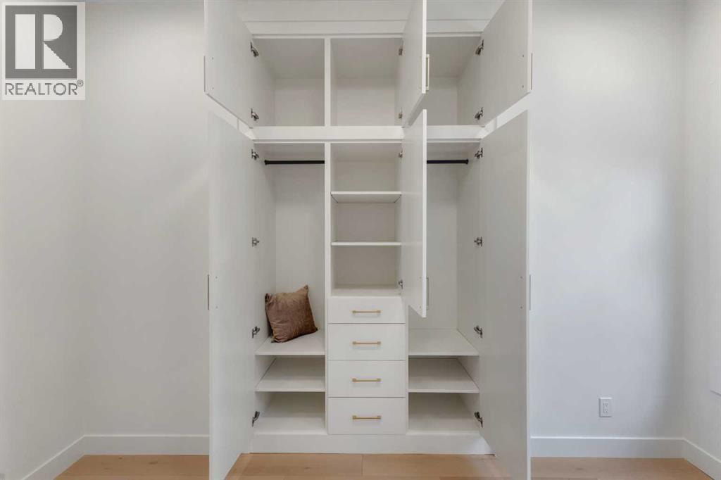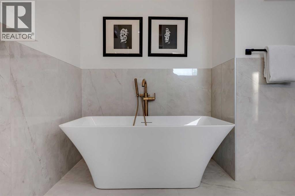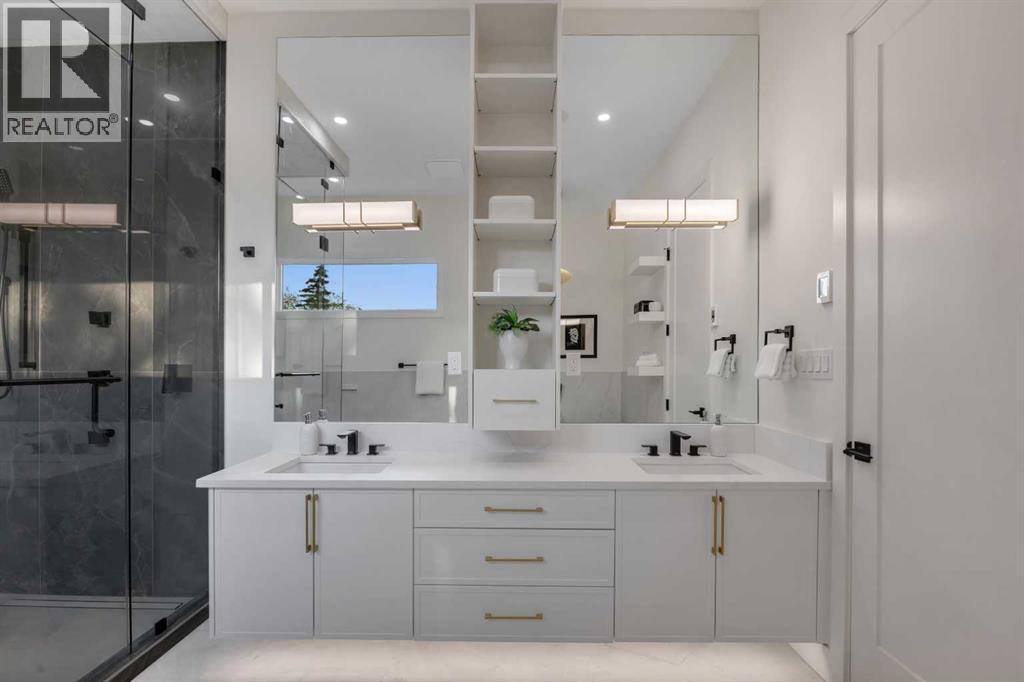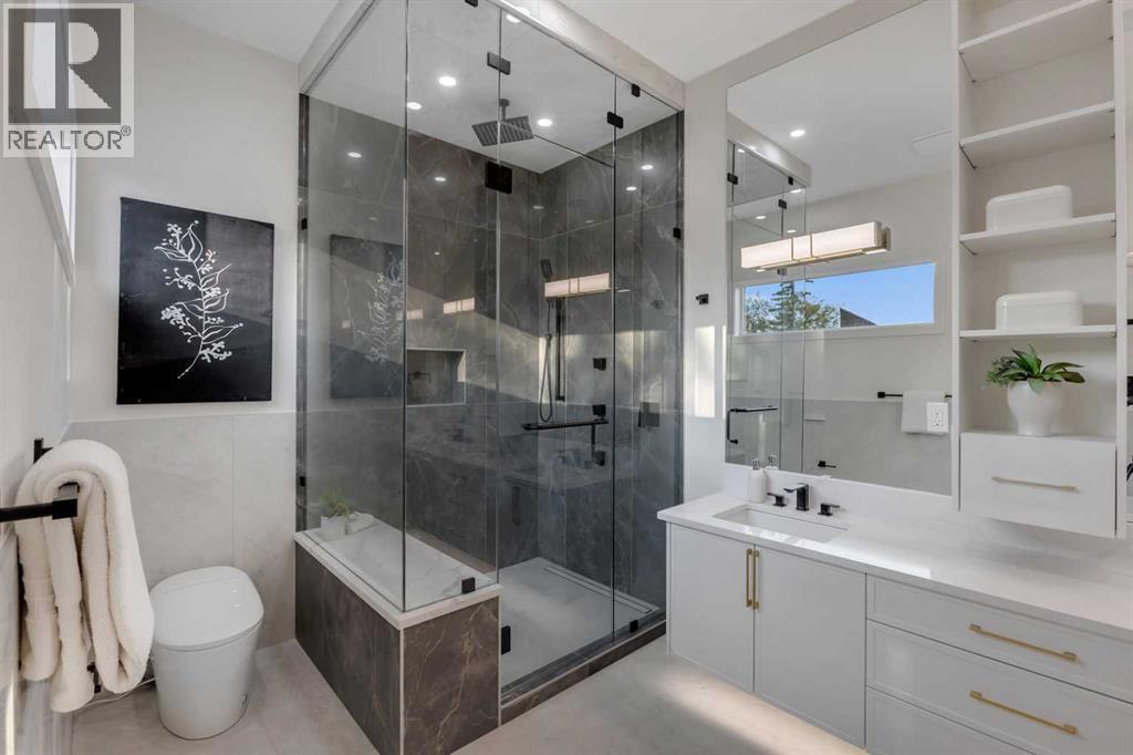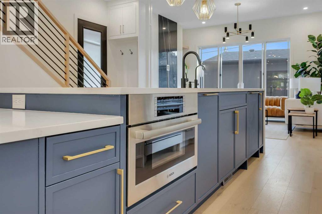 Step into unparalleled modern luxury with this brand-new DETACHED masterpiece in Parkdale! From the moment you approach, the striking 2-storey architecture and elegant brick, stucco, and wood facade command attention. Inside, the home unfolds across upgraded living spaces with a fully finished basement, home gym space, and open concept floorplan! Starting on the main floor, soaring 10-ft ceilings and expansive open spaces flow effortlessly from one end to the other. The front dining area enjoys a feature wall with transom window and designer lighting. The central kitchen is the perfect balance of clean elegance with thoughtful pops of contrast, with a white and navy colour palette you’ll fall in love with. Full-height white cabinetry, quartz countertops, a two-tier waterfall island, high-end appliances (including a built-in Jennair fridge and Bosch gas range), designer hardware and lighting, and thoughtful touches like under-cabinet lighting and a reverse-osmosis water system make this space a step above the rest. The living room glows with warmth, anchored by a custom Napoleon gas fireplace with seamless tilework and a huge sliding glass door that opens onto the SOUTH-FACING BACKYARD, blending indoor luxury with outdoor serenity. An elevated powder room with a stunning vessel sink completes the luxury feel of this level.Upstairs, you’ll find more engineered hardwood, more 10-foot ceilings, generously sized secondary bedrooms (one with a walk-in closet), plus a laundry room with a built-in sink. The primary suite offers a retreat: freestanding tub, rain shower with body jets, tons of thoughtful storage, in-floor heating, and elevated finishes throughout. Downstairs, the fully finished basement doesn’t disappoint: 9-foot ceilings, roughed-in for in-floor heating, a fourth bedroom, a home gym space with sports flooring, and a rec room with a custom wet bar and wine fridge, plus a built-in media centre. Practical luxury is everywhere: double detached garage, modern cooling & electrical rough-ins, EV charging, solar ready, and features like an upgraded front fence expand usable yard space!Set in the heart of Parkdale along 4 Avenue NW, this home offers a front-row seat to some of Calgary’s most cherished amenities. Just one block from the Bow River pathways, it’s ideal for morning runs, sunset bike rides, or weekend strolls by the water. The Foothills Medical Centre and Alberta Children’s Hospital are minutes away, making it a highly desirable location for medical professionals and families alike. You are also a short drive or quick bike ride from the University of Calgary, McMahon Stadium, and the lively Kensington district with its cafés, restaurants, and boutique shops. Downtown is less than ten minutes away, yet at home you’ll feel tucked into a quiet, tree-lined community known for its parks, playgrounds, and sense of connection. Parkdale is the perfect blend of riverside tranquillity and urban convenience, making this address a truly enviable one. (id:6769)