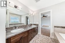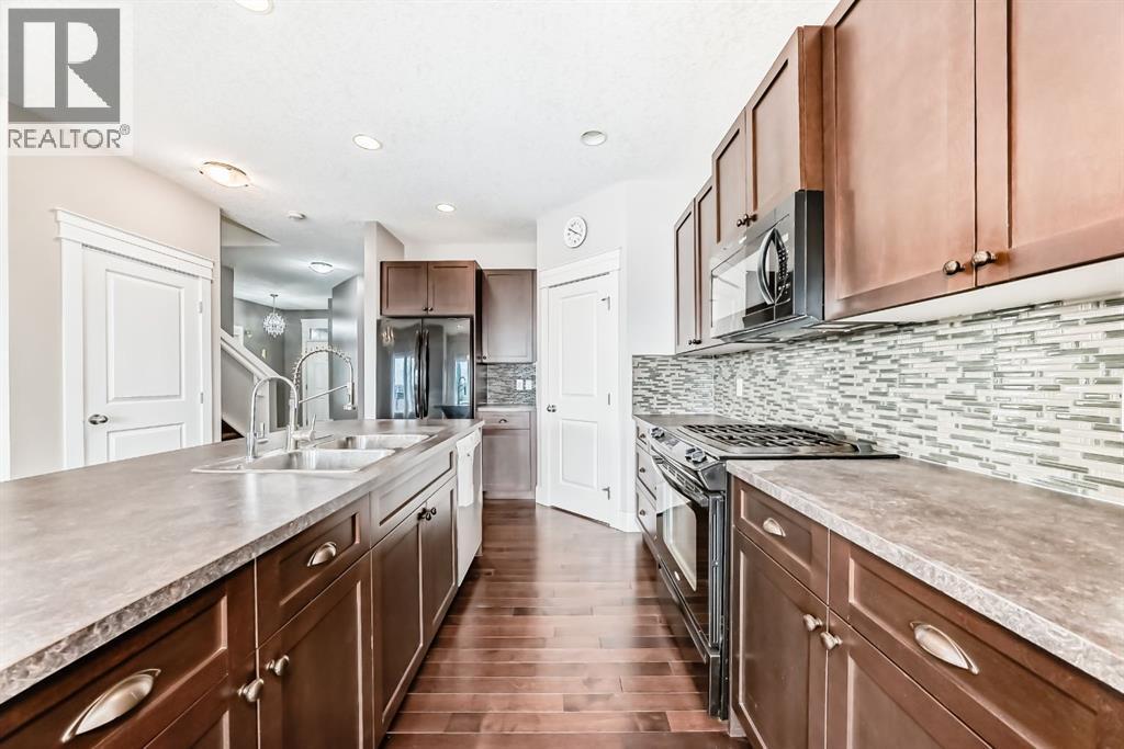 FULLY FINISHED | WALKOUT | VIEWS | QUIET STREET | CENTRAL A/C | OVERSIZED DBL GARAGE | QUICK POSSESSION - Check out this Heritage Hills Beauty – a feature rich 2 storey walkout with Mountain Views in excellent, move-in condition!Here’s your opportunity to own a lovingly maintained home in the desirable community of Heritage Hills — offering a walkout basement, mountain views, and a long list of upgraded features that truly set it apart.Step inside and you’ll appreciate the neutral color palette, knockdown ceilings, and a thoughtful layout that balances everyday comfort with style. The main floor features hardwood and tile flooring, a spacious tile entry, and a bright open-concept design with 9’ ceilings throughout.The kitchen is a chef’s dream — complete with a gas stove, island with eat-up bar, corner pantry, and OTR microwave — all overlooking the great room and escarpment to the west. Just off the kitchen is a spacious dining nook, which leads onto the sunny southwest-facing deck with gas BBQ outlet – perfect for evening relaxation or entertaining.You’ll also find a tile mudroom with main floor laundry, plus a convenient 2-piece powder room to round out the main level.Upstairs, the primary retreat is a highlight – featuring a ceiling fan, walk-in closet, and a luxurious 5-piece ensuite with double sinks, a jetted soaker tub, and a separate shower with subway tile surround. 2 additional good sized bedrooms and a full 4 pce bath complete this level.The fully finished walkout basement offers a dedicated home theatre space, rough-in for a future bathroom, and loads of extra storage. There is great potential here to convert the space to an income generating suite as well, subject to approval and permitting by the TOWN/municipality. A convenient commercial plaza is just steps away, offering a pharmacy, daycare, wine store, restaurant, medical offices, gym and more.Outside, the landscaped and fenced backyard is ideal for families, pets, or gardening — with lots o f sun thanks to the southwest exposure. Bonus features include central A/C, an oversized double garage, and space to park three vehicles on the extended driveway.With over 2,200 sq. ft. of developed living space on all levels, this home checks all the boxes — inside and out — and truly shows pride of ownership. Don’t miss your chance to call this one yours. Book your viewing today! (id:6769)