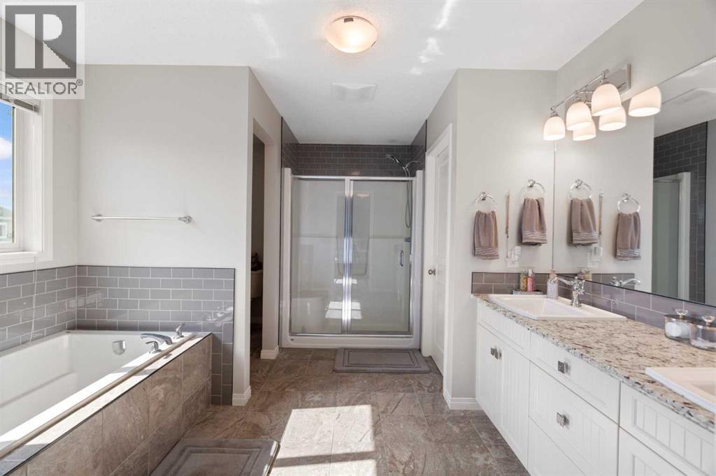 Welcome to this stunning five-bedroom home complete with a fully developed basement featuring a kitchenette—ideal for growing families, investors, or multi-generational living. The open-concept main floor is bright and inviting, showcasing a designer colour palette, neutral flooring, and crisp, modern accents. The chef-inspired kitchen is a true delight, offering abundant counter space, a large centre island, and a breakfast bar with seating for five. High-end stainless steel appliances, granite countertops, and both built-in and walk-through pantries ensure style and function are perfectly combined. The spacious dining room easily accommodates large family gatherings or elegant dinner parties. Step outside to the sunny southwest-facing backyard—fully fenced and featuring an expansive patio and hot tub—perfect for entertaining or simply relaxing while enjoying the sunset. A private office/den with double doors sits just off the main living area and could be converted into a formal dining room if desired. The main floor is completed by a stylish powder room, double coat closets, and a roomy back entry from the garage with a built-in bench. Upstairs, a generous bonus room with a private balcony and built-in desk offers an ideal space for work or play. The primary suite is a luxurious retreat, featuring a striking accent wall, spa-inspired ensuite with dual vanities, soaker tub, separate shower, and private water closet. The walk-in closet connects directly to the spacious laundry room, which includes ample cabinetry and a linen closet. Three additional bedrooms and a full bath complete the upper level.The fully finished lower level boasts 9-foot ceilings, large sunshine windows, and a massive open living area—perfect for both lounging and recreation. The builder-installed kitchenette features a dual-drawer dishwasher, full-sized fridge, microwave, washer, and dryer. This level also includes a spacious bedroom with a full closet, storage shelving with bins, and a full bath. Additional storage is found in the kitchenette pantry and under the stairs. The utility room houses two furnaces (each with its own A/C unit) and two oversized hot water tanks—ensuring comfort and efficiency year-round. An oversized double attached garage, fully landscaped yard, and prime location complete the package. Situated on a quiet street with a sunny backyard, this home is just a short walk to Thanos Playground and Copper Pond, close to both public and private schools, and minutes from shops and restaurants at McKenzie Towne Centre and along 130th Avenue. A remarkable home with incredible flexibility—book your private showing today! (id:6769)