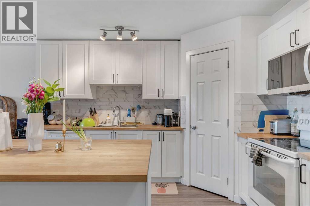 Welcome to 302, 1724 26 Avenue SW. Just a few blocks from downtown and steps to Marda Loop, this executive-style, south-facing 2-bed, 2-bath condo offers incredible space, natural light, and thoughtful upgrades throughout. Inside, you’ll find a bright, open-concept layout with every room feeling spacious and inviting. The kitchen has been beautifully updated with new cabinets, counters, backsplash, and a functional island with seating, flowing seamlessly into the dining and living areas—perfect for both entertaining and everyday living. The large living space extends onto a sun-soaked south-facing balcony, a rare feature that truly sets this home apart. The primary suite is generous in size and includes a walk-in closet and a private 4-piece ensuite—a luxury not often found in comparable units. The second bedroom is equally well-sized, with a second full bath just steps away. Recent updates include new luxury vinyl plank flooring and a new washer/dryer, adding style and convenience. Additional features include: radiant in-floor heating, in-suite storage, secure building entry, elevator access, heated underground parking, and plenty of visitor parking. This location can’t be beat—you’re minutes to shops, restaurants, coffee spots, parks, pathways, tennis courts, and public transit. If you’re looking for a bright, spacious, and upgraded condo in the heart of the city, this home is a must-see. (id:6769)