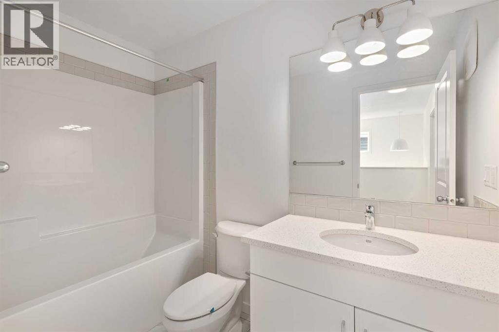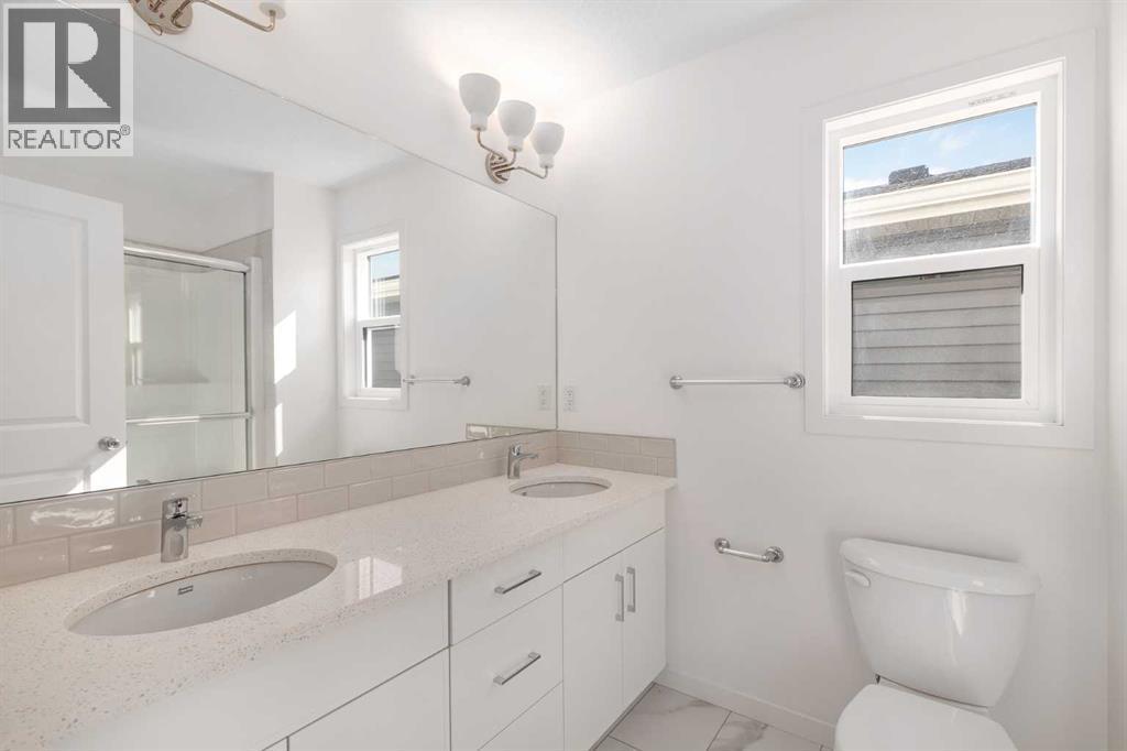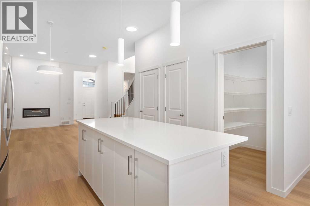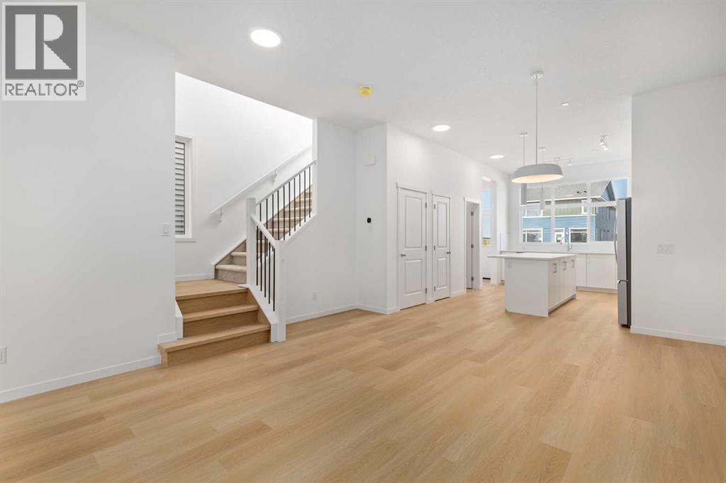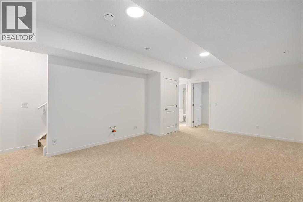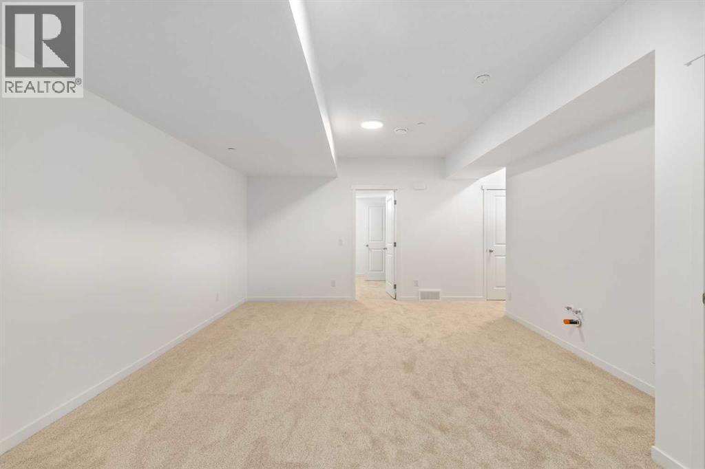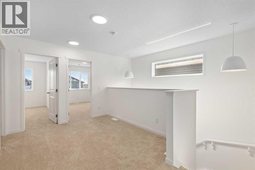Welcome to this brand-new “Lyall” floor plan, a beautifully crafted home that blends modern style with functional design. From the moment you step inside, you’re greeted by soaring 10’ ceilings and warm luxury vinyl plank flooring that flows throughout the main level. At the front, a versatile flex room offers the perfect space for a home office, reading nook, or play area. Moving toward the back, the open-concept living space unfolds with a bright and inviting living room, complete with an elegant electric fireplace, an oversized dining area ideal for family gatherings, and a stunning kitchen that serves as the heart of the home. The kitchen is a true showpiece, featuring timeless white cabinetry extended to the ceiling, quartz countertops, a hammered white subway tile backsplash that wraps around the sleek range hoodfan, stainless steel appliances, and a spacious island—perfect for both everyday meals and entertaining. Upstairs, a central loft provides a flexible second living space and creates separation between the primary suite and the additional bedrooms. The staircase is highlighted with modern black spindle railing, adding a contemporary touch to the home’s design. The spacious primary retreat includes a walk-in closet and a spa-inspired 4-piece ensuite with dual sinks. Two more bedrooms, a full 4-piece bathroom, and a convenient upper laundry room complete this level. The fully finished basement adds incredible value with two additional bedrooms, a large rec room, and a 4-piece bathroom. With a separate entrance, it’s roughed in for a wet bar and extra laundry. **This home also comes complete with full front and backyard landscaping, including sod, mulch on the side yards, and trees/shrubs in the front as per community guidelines. Located in the growing southeast community of Hotchkiss, this home offers more than just a beautiful interior. Residents here enjoy a family-friendly setting with scenic pathways, green spaces, and quick access to major routes lik e Stoney Trail and Deerfoot. You’re also just minutes away from the amenities of Seton, including restaurants, shopping, the South Health Campus, and recreation options. This is your opportunity to own a brand-new, move-in ready home in one of Calgary’s up-and-coming communities—complete with a finished basement and high-end upgrades that make it truly stand out. (id:6769)