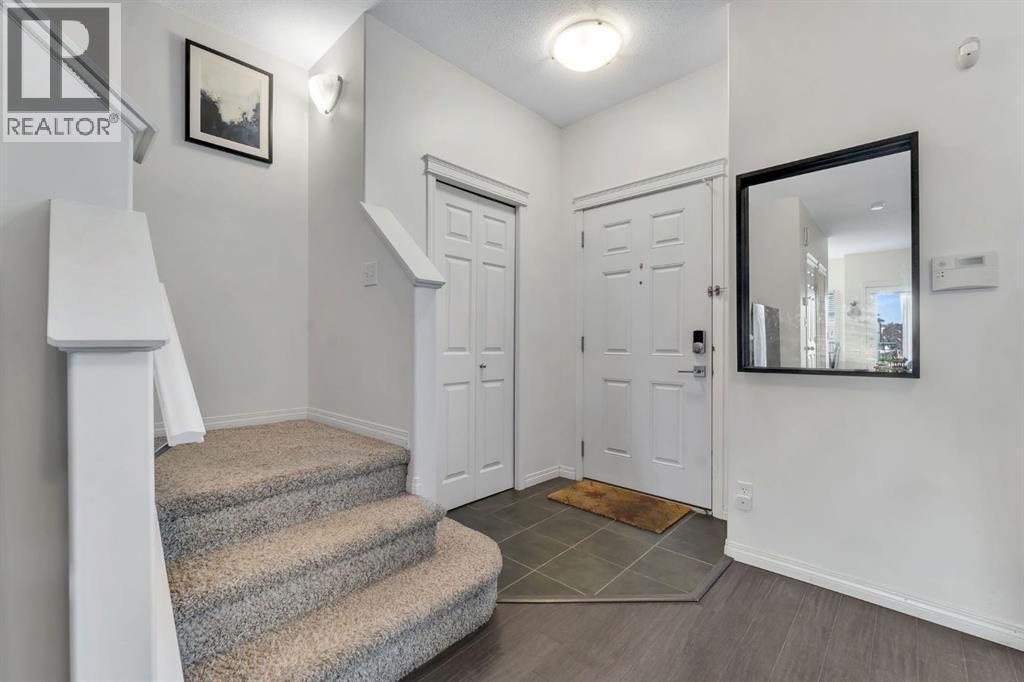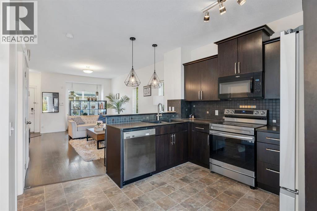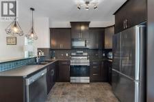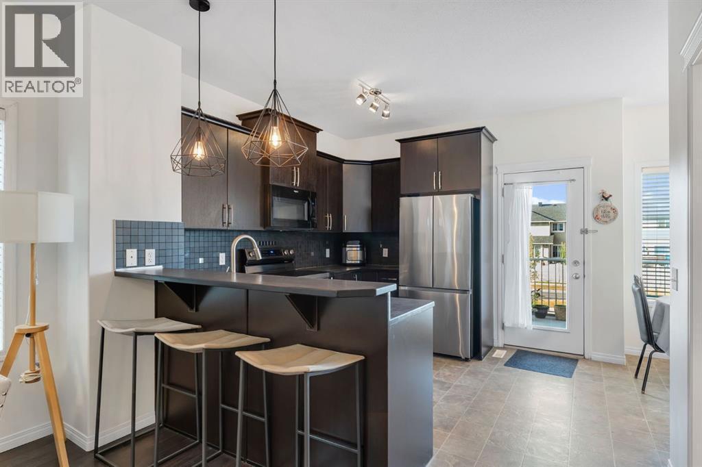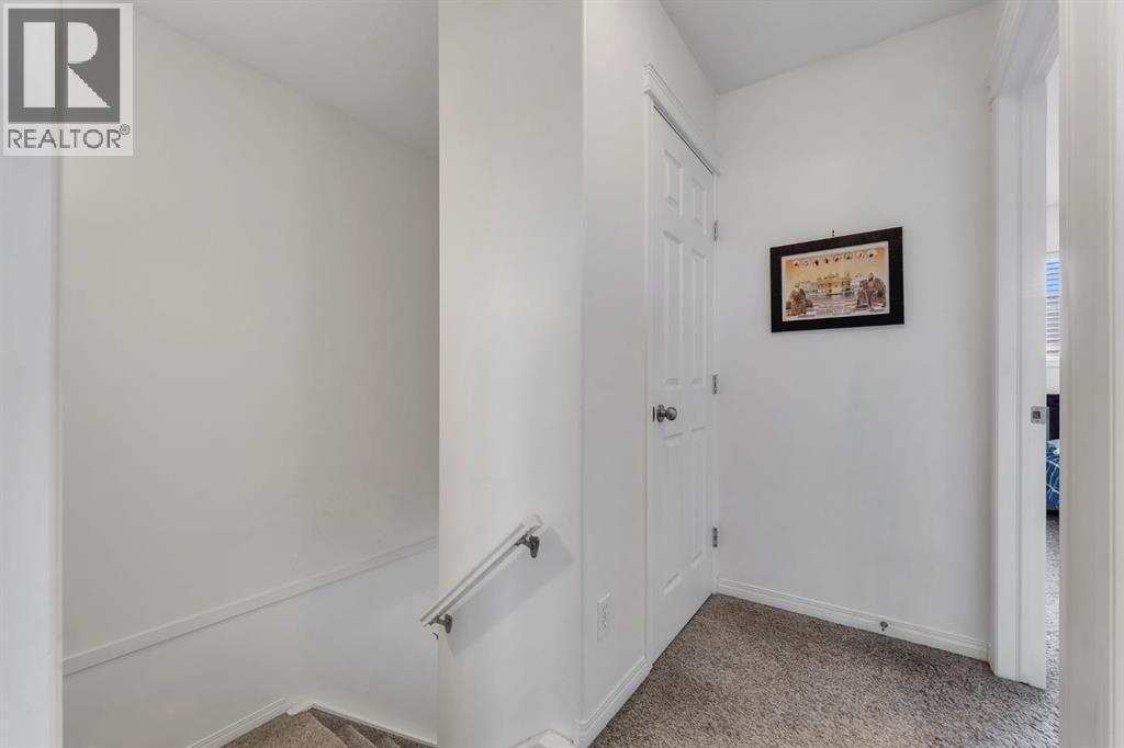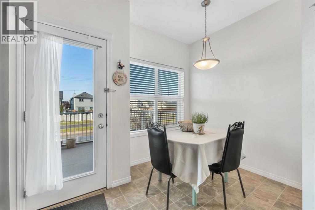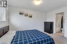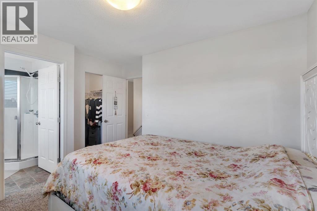 This bright and well-kept end-unit townhome offers extra side windows for natural light and a spacious raised deck. The main floor features laminate flooring, soaring 9' ceilings, a large front living room, a modern kitchen with a raised breakfast bar, a dining area by the window, and a convenient half bath. Upstairs, you’ll find two large bedrooms, each with its own ensuite bathroom ideal for or a guest suite. Updated with new stainless steel appliances and additional upgrades throughout, this home is move-in ready.The partially developed basement includes large windows, a washer & dryer, plenty of storage space, and room for a home gym. Mechanical updates include a furnace with humidifier and a newer hot water tank. The seller is even willing to leave some furniture behind!With a parking pad right at your front door, this home makes an excellent and affordable starter option. Don’t wait—call your realtor today before it’s gone! (id:6769)