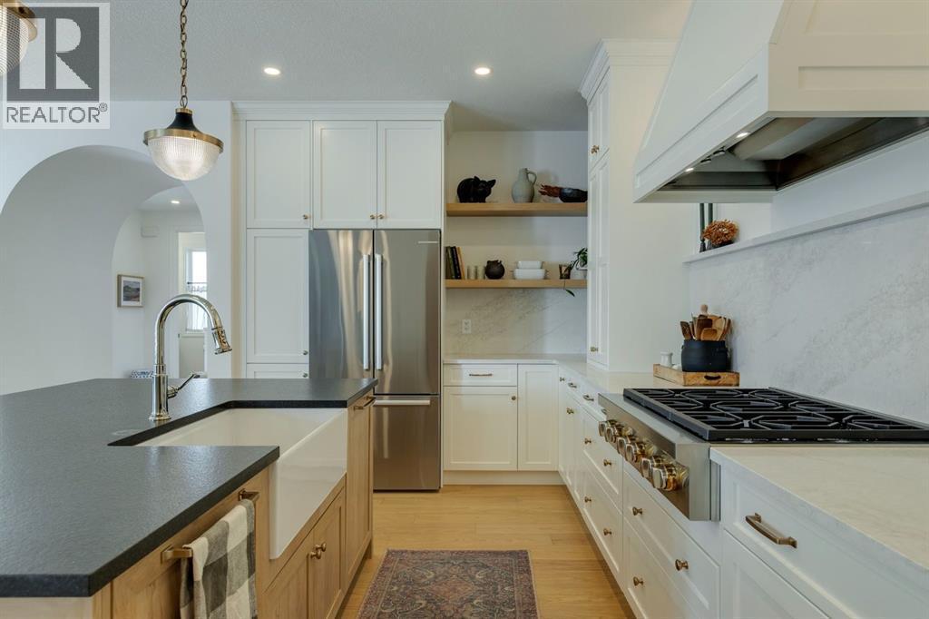 Experience timeless elegance in this custom-built family home, ideally located in the heart of West Hillhurst. Crafted with exceptional attention to detail and interiors designed by renowned Bay and Co., this residence blends high end finishes, thoughtful design, and a truly functional layout that feels as welcoming as it is refined. Step into a spacious, light filled foyer and immediately appreciate the quality craftsmanship. A custom glass walled home office sits just off the entry, both a striking design element and a practical workspace. A wide, arched hallway leads into the heart of the home, where sophistication and comfort effortlessly converge. A dreamy kitchen is the centrepiece anchored by an oversized island that invites gathering and connection. Outfitted with premium stainless steel appliances including a Wolf gas cooktop, extensive cabinetry, and sleek counters, it’s a space designed to inspire. An expansive butler’s pantry with built-in wall oven, microwave, and bar fridge offers ample storage and seamless access to the attached double garage (pre-wired for EV hookup); a rare and coveted inner city feature. The main living area features a cozy yet elegant living room with a gas fireplace flanked by custom built-ins, and a spacious dining area perfect for hosting. Sliding glass doors extend the living space outdoors to a covered patio, complete with an automatic privacy screen, creating a year-round outdoor retreat. Upstairs, the open riser staircase adorned with plush carpeting, leads to a large bonus room, laundry room with sink, 4pc bathroom, and three generous bedrooms. The primary is a true sanctuary, featuring a custom walk-in closet and an indulgent 6pc ensuite with in-floor heat, glass enclosed shower, and deep soaker tub for the ultimate relaxation experience. The fully developed lower level continues the theme of comfort and versatility with heated tiled floor workspace, a spacious rec room, games/exercise area, and a fourth bedroom ideal for guests or teens. Outside, enjoy a peaceful, fenced backyard with lush green space that's perfect for children and pets. Located steps from Helicopter Park, Karl Baker off-leash dog park, the Bow River Pathway, Foothills Hospital, and just minutes to Kensington and the downtown core, this exceptional property offers the ultimate in inner city living. A home where impeccable design meets everyday comfort, come experience the elevated lifestyle this gem has to offer. (id:6769)