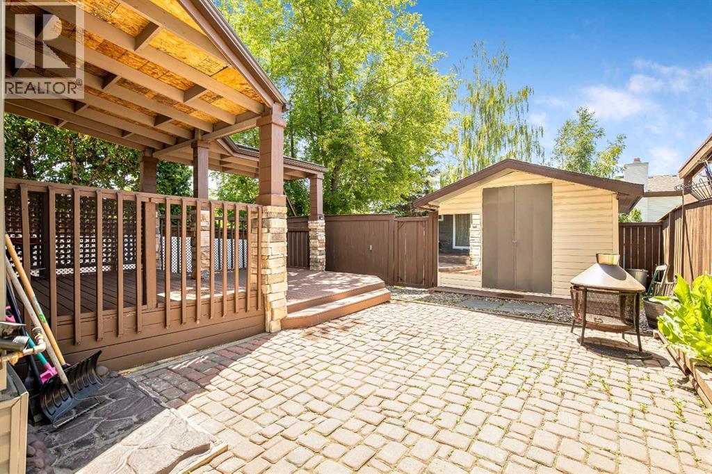 Welcome to this spacious and well-maintained family home in the heart of Woodbine! As you step inside, you're greeted by a grand front living room with cathedral ceilings and large picture windows that flood the space with natural light. The open-concept kitchen connects seamlessly to the dining area and cozy family room, complete with a fireplace and sliding patio doors that lead out to a large tiered deck—perfect for entertaining.Upstairs, you'll find a private primary retreat featuring a full ensuite bathroom and a generous walk-in closet. Two additional spacious bedrooms and a 4-piece bathroom complete the upper level.The finished basement includes a flexible layout with a hobby room, flex space, laundry area, and ample storage.Recent updates include renovated upstairs bathrooms, new flooring, newer windows, and a brand-new roof.Enjoy the sunny south-facing backyard, thoughtfully landscaped for low maintenance. There's a 10x14 insulated shed offering abundant outdoor storage, plus double off-street parking.All of this on a quiet, family-friendly street within walking distance to schools, shopping, transit, and Fish Creek Park.With approximately +1,500 sq ft of above-grade living space, this home offers the perfect balance of size, function, and location. Don’t miss this one! (id:6769)