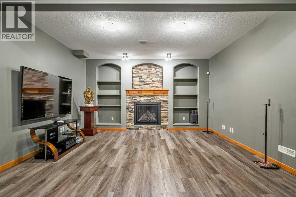Welcome to this expanded Beatie Homes Alpine 4 modified — a larger, wider-plan home built in 2004 and finished to a very high standard. With just under 3,500 square feet of developed space including the fully developed basement, the layout delivers generous living and entertaining spaces and backs onto green space, a playground and a pathway. The exposed front drive and north-facing backyard provide privacy and easy outdoor access.The main floor showcases Corian counters, above-cabinet lighting, tiled entry and 9' knockdown ceilings. The open kitchen features extended-height cabinetry, a corner pantry, banks of drawers, a center island with storage, tiled backsplash and brand-new appliances including a Samsung refrigerator, KitchenAid slide-in induction cooktop range, Samsung dishwasher, and a new range hood. , r/o water system. The living room includes vaulted ceiling with wood beams, a floor-to-ceiling stone gas fireplace with log mantle, built-in bookshelves, LVP flooring and integrated speakers. Additional main-floor spaces include a front den with LVP (2020), a mudroom with laundry, broom/book storage closets, a 2-piece bath and a double attached garage with a new garage door. Exterior and entry updates include a new front door, new rear door and new shingles (2023); eaves with guards were replaced in 2024.The upper level features extra-wide staircases (renovated 2020) and LVP throughout (2020). The primary suite offers a vaulted ceiling, window bench seating, built-ins, walk-in closet and a tiled 5-piece en-suite with his-and-her sinks, an air tub and jetted and a steam shower. All toilets and shut-off valves were replaced last year. Two additional large bedrooms connect via a Jack-and-Jill bath with separate private sinks and a shared central bath and water closet. Built-ins within the walk-in closets and upstairs linen storage complete the level.The fully finished lower level (builder developed) provides LVP flooring, 9' knockdown ceilings and a large recreation room anchored by a second stone gas fireplace (renovated 2020) with built-in cabinetry, speakers and shelving. The lower level includes a 4th bedroom/office, a tiled 3-piece bath, an enclosed exercise area and a service/storage room that houses two brand-new hot water tanks, Kolher Konnect water monitoring system installed in October 2024 and a recirculating pump as an added feature. Mechanical upgrades include two forced-air furnaces, two A/C units, a water softener and a newly installed built-in vacuum system.Exterior living spaces include an exposed patio, a lower concrete pad with pergola, irrigation, mesh fencing, an exposed sidewalk (2018) and a BBQ gas line with direct access to the adjoining park and playground. Located in the family-friendly community of Cranston, the home is within walking distance to Cranston School and near Dr. George Stanley and Christ the King schools. (id:6769)