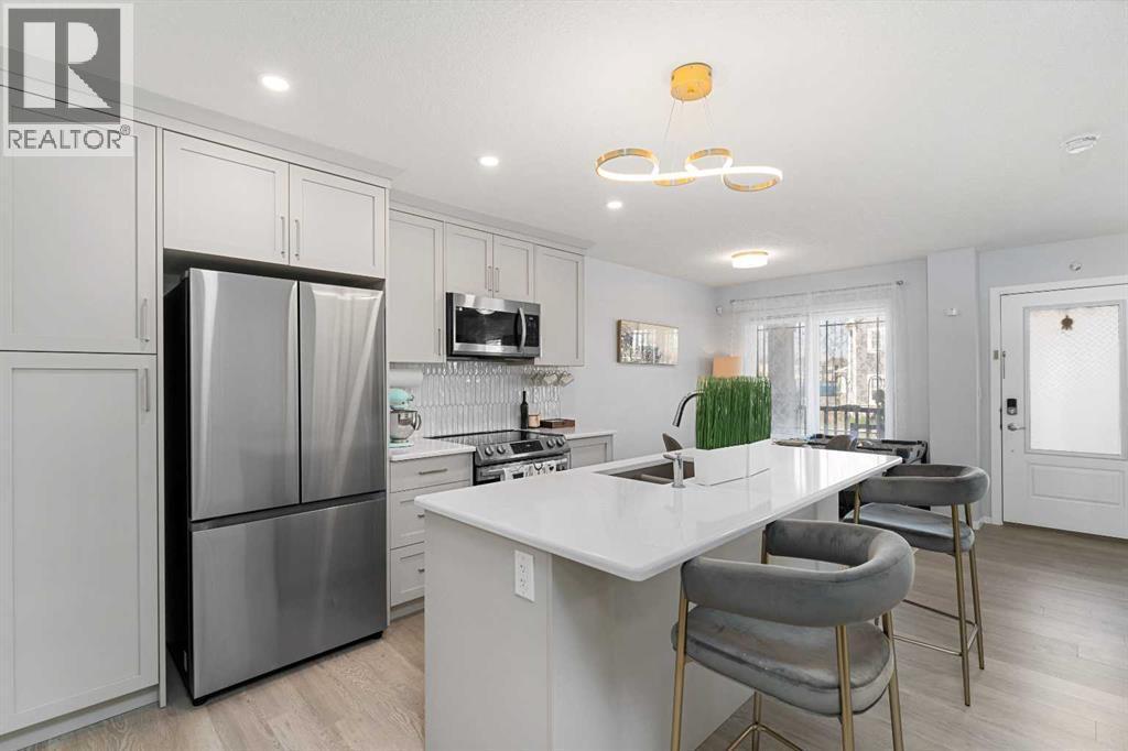 NO CONDO FEES - PLENTY OF UPGRADES FROM BUILDER STAGE - FULL HEIGHT CABINETS IN KITCHEN - 10MM GLASS SURROUND SHOWER IN PRIMARY SUITE - AIR CONDITIONING - STEPS FROM BRAND NEW SCHOOL AND TOT LOT. Welcome to the home you've been dreaming of! This stunning, custom-designed 2-story townhome is perfectly situated kitty corner from a brand-new school currently being constructed and taking applications soon, just a stone’s throw from Osborne Park and surrounded by everything you need in one of Airdrie’s most coveted family-friendly neighborhoods. Picture yourself sipping coffee on your covered front veranda, watching your kids stroll to school. Step inside to an open-concept layout flooded with natural light, sleek premium vinyl plank floors, and a stunning upgraded lighting package throughout. The kitchen is a chef’s dream with stainless steel appliances, pot lighting, full-height cabinetry, a large pantry with an embossed glass door, and a massive island—perfect for meal prep or gathering with friends. The living room invites you to relax and unwind while you enjoy your air conditioning on those hot days, with a cozy vibe that’s perfect for family nights. Off the living room, you’ll find a convenient 2-piece powder room and access to your oversized double garage, which is ideal for winter parking or your dream workshop. Upstairs, retreat to the spacious primary bedroom with peaceful neighborhood views, a walk-in closet, and a private en-suite featuring a gorgeous floor-to-ceiling tiled glass shower and quartz countertops. Two more generously sized bedrooms and another upgraded 4-piece bathroom give you endless options for family or home office space. Plus, the laundry room is conveniently located upstairs, and your rear-facing deck is the perfect spot to catch some fresh air. The basement is a blank slate with a bathroom rough-in and large window—ready for you to add your personal touch, whether that’s a gym, home office, or more living space. With all these incredible upgrades and an unbeatable location, this home won’t last long. Book your private viewing today! (id:6769)